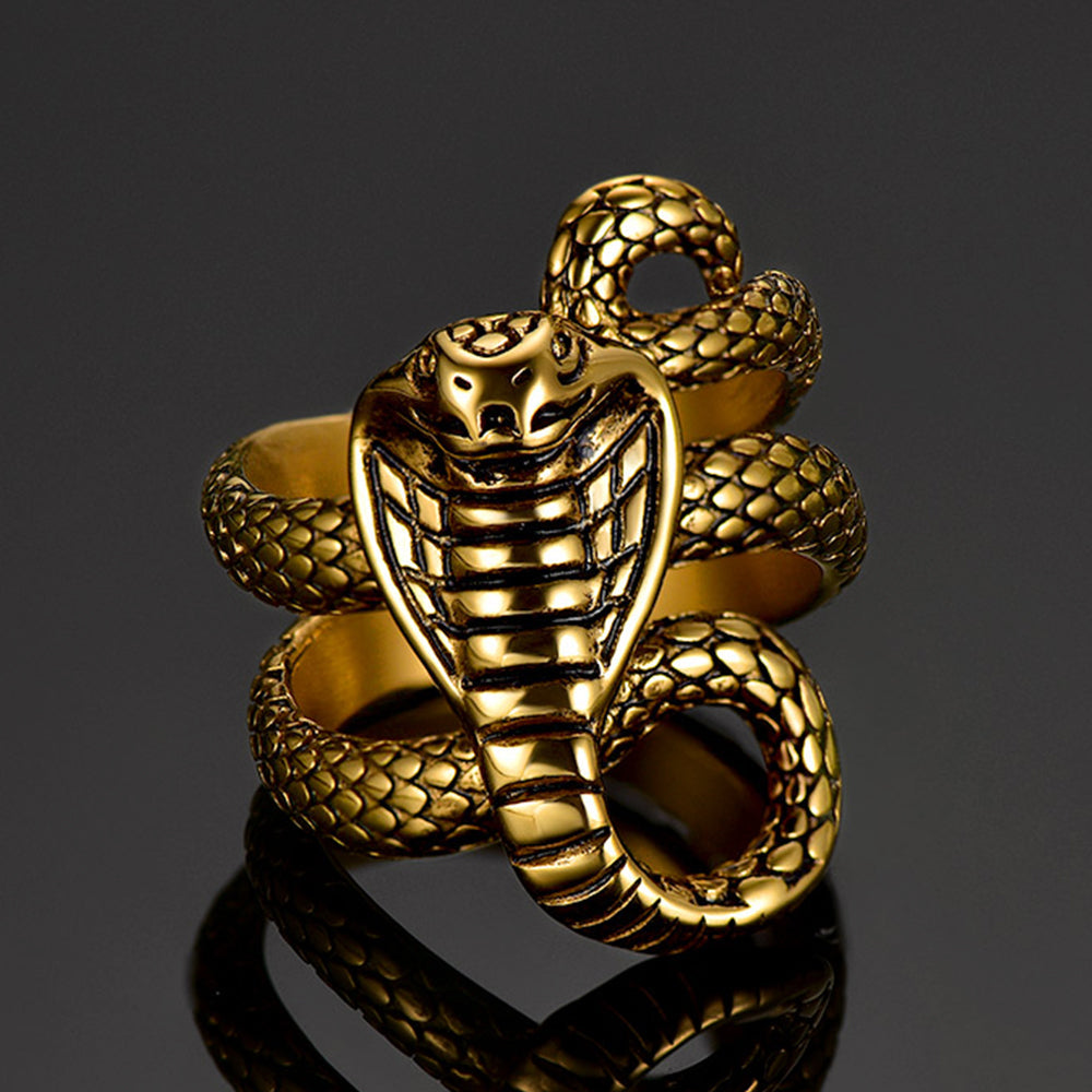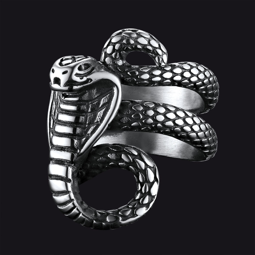 Gothic-Punk-Edelstahl-Kobra-Schlangenring für Herren, klassisch und geheimnisvoll, voller Persönlichkeit und Charakter, der Schlangenliebhabern immer zur Verfügung steht. In vielen Kulturen gilt die Schlange als mächtiges Totem, das die Quelle des Lebens repräsentiert. Wenn Schlangenelfentiere in Ihrem Leben auftauchen, kann dies bedeuten, dass sich Möglichkeiten zur Heilung, Veränderung und gesteigerter Energie ergeben.