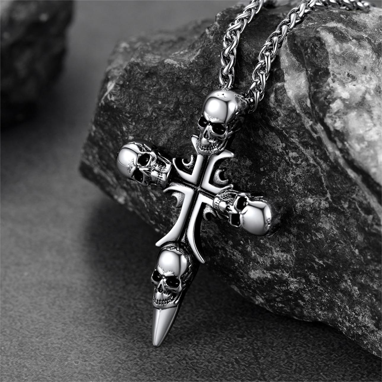Gothic-Punk-Totenkopfkreuz-Halskette aus Edelstahl für Männer, aus 316L-Edelstahl gefertigt, hält lange. Verpackt in einer edlen Schachtel, perfektes Geschenk für Vater, Freund, Ehemann, Sohn, andere Männer und Jungen zu Halloween, Geburtstag, Weihnachten, Jahrestag, Party usw.