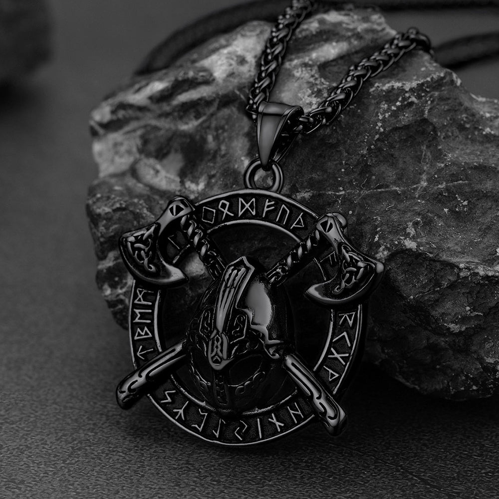 Wikinger-Runen-Kriegerhelm-Doppelaxt-Halskette für Männer, Schutzamulett-Talisman-Halsketten, bringen dem Träger Glück und Tapferkeit. Hergestellt aus 316L Edelstahl, hypoallergen. Das perfekte Geschenk für Bruder, Vater, Opa und Sohn zum Valentinstag, Jahrestag, Geburtstag, Weihnachten und Vatertag.