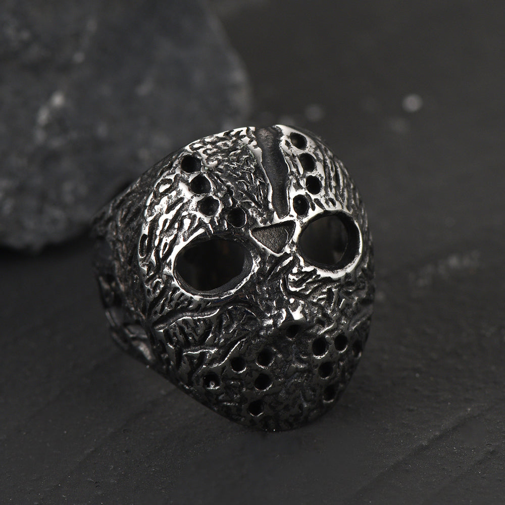 A bold accessory inspired by the iconic slasher mask. Crafted from durable stainless steel, this ring combines gothic flair with edgy design, symbolizing mystery and rebellion. Perfect for Halloween, themed parties, or adding a striking statement to everyday outfits, it is a must-have for fans of gothic and horror-inspired jewelry.