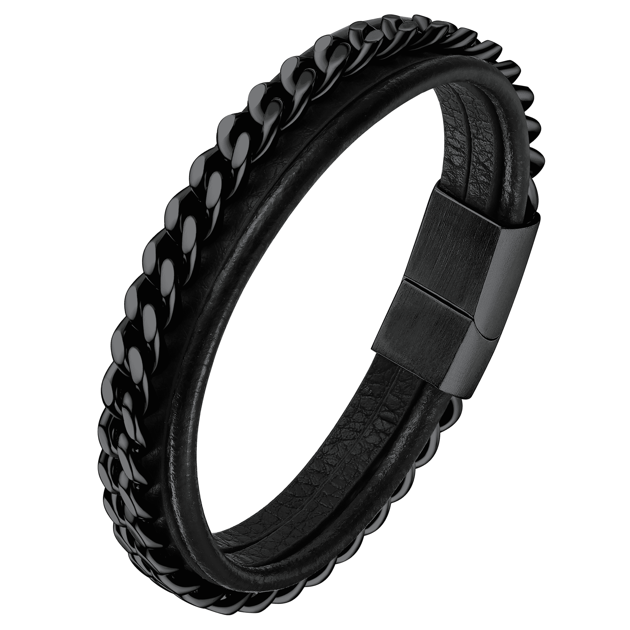 This black braided bracelet uses high-quality genuine leather, and high-quality stainless steel, strong and durable. Customized cuff wristband is made of multi-layer genuine leather mixed the braided rope. The clasp is easy to put on without falling off. This bracelet is perfect for any gift-giving occasion.