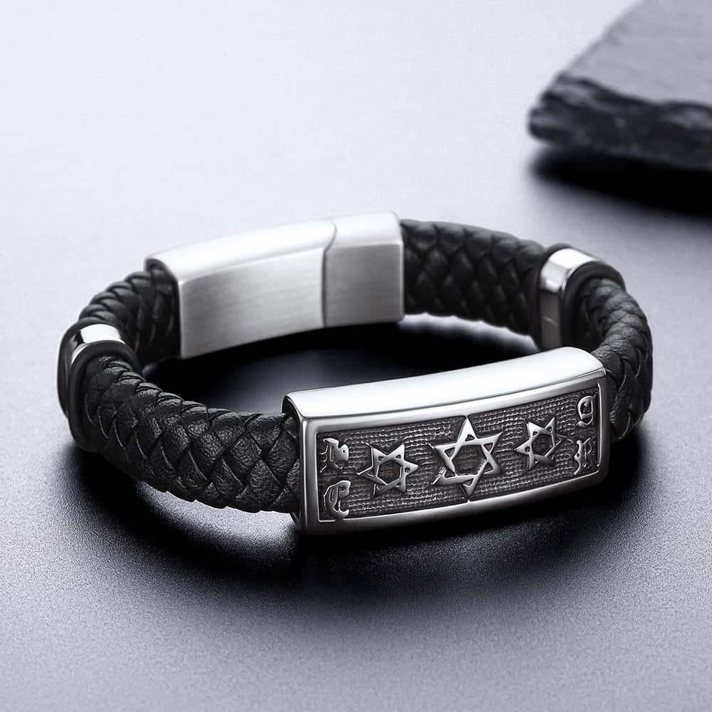 Braid leather bracelet crafted in PU Leather, it is Soft but Durable and Comfortable to Wear. Magnetic clasp crafted in High-Quality Stainless Steel, Hypoallergenic, Lead & Nickel-Free, Safe, and Comfortable for Your Sensitive skin.