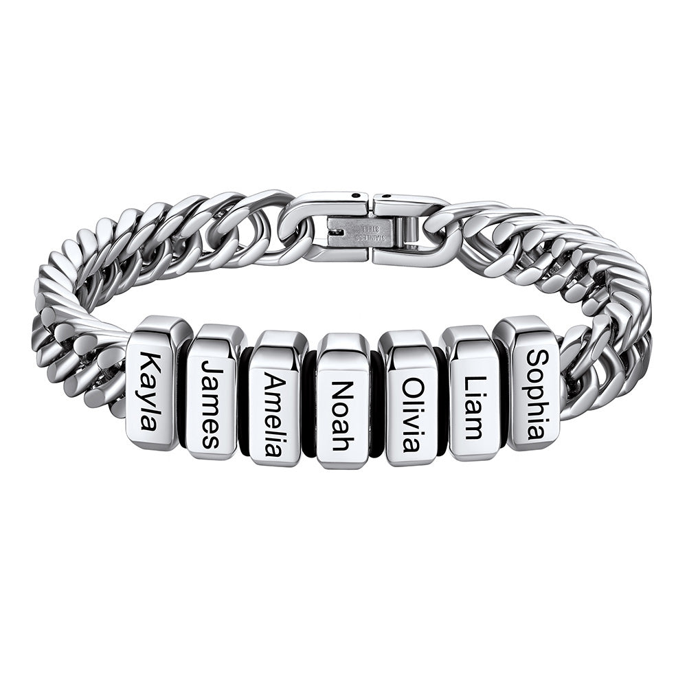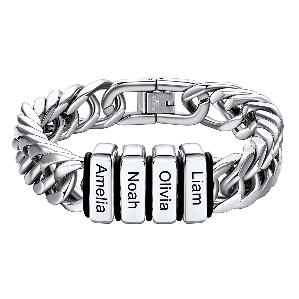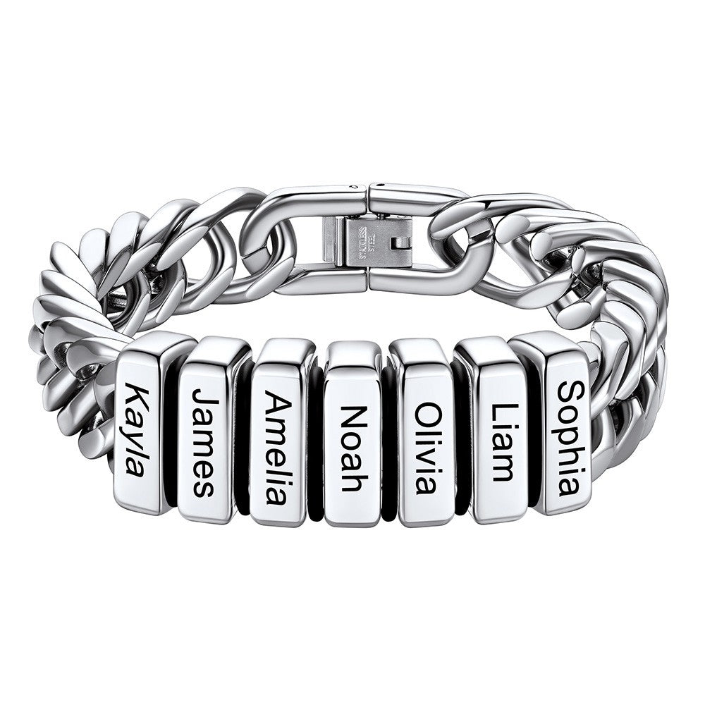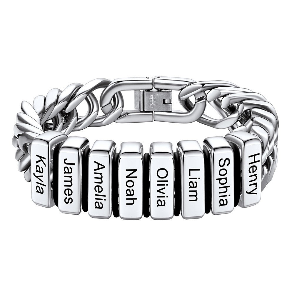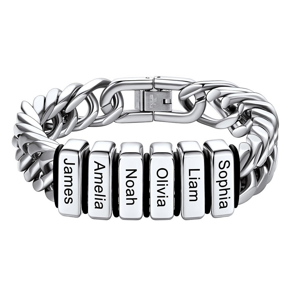 Celebrate the special bond between a father and his children with our Engraved Father's Cuban Link Bracelet - Multiple Names. This stylish and meaningful accessory is designed to honor the names that matter most.