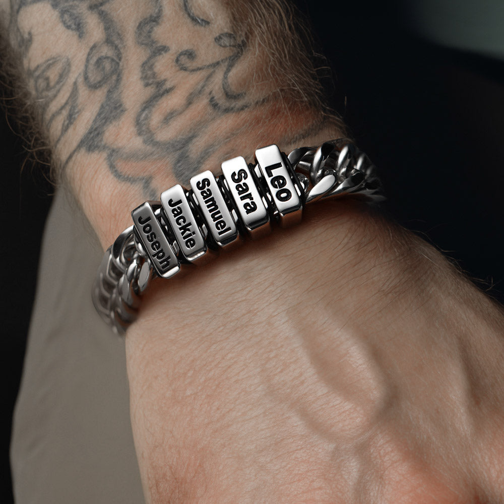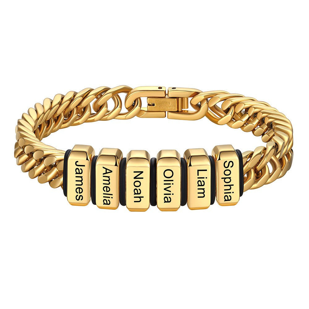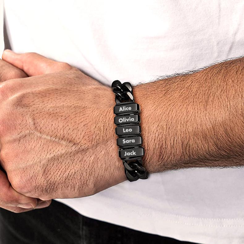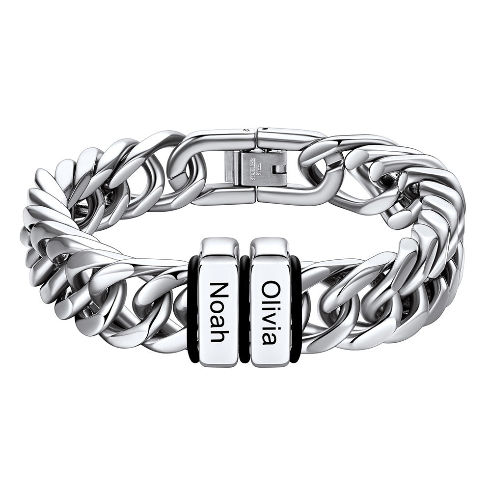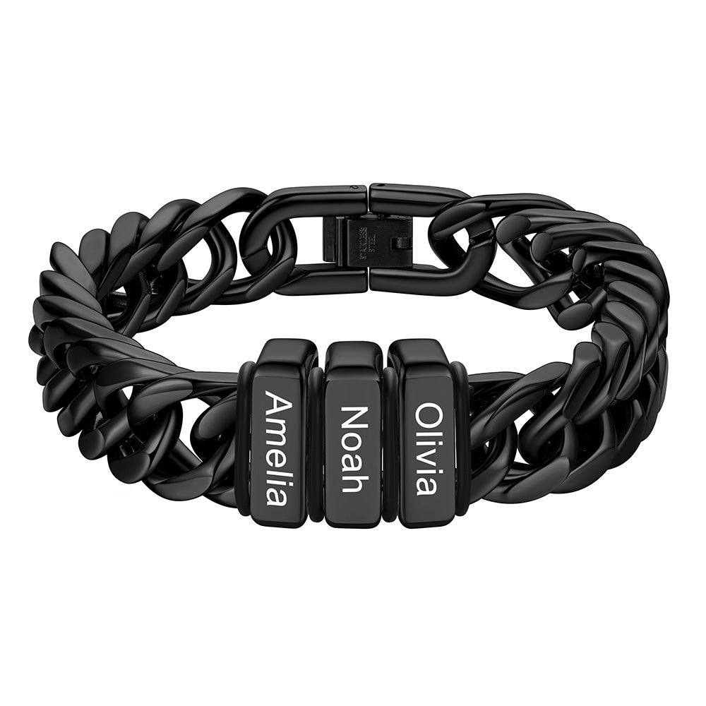 Celebrate the special bond between a father and his children with our Engraved Father's Cuban Link Bracelet - Multiple Names. This stylish and meaningful accessory is designed to honor the names that matter most.