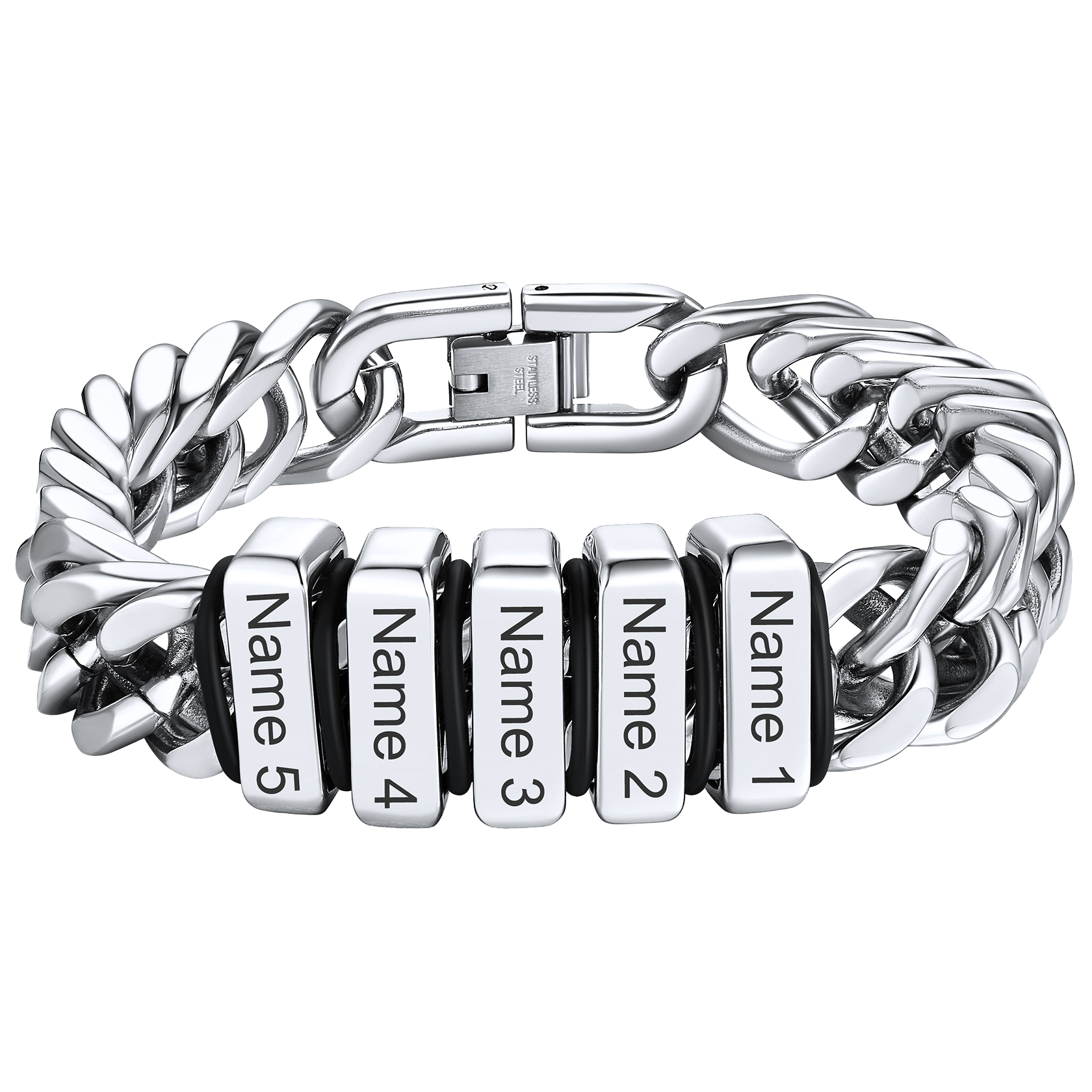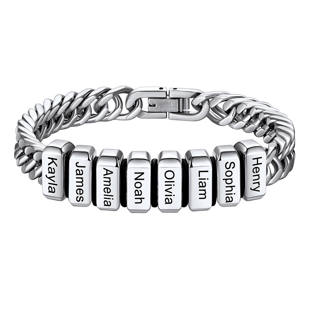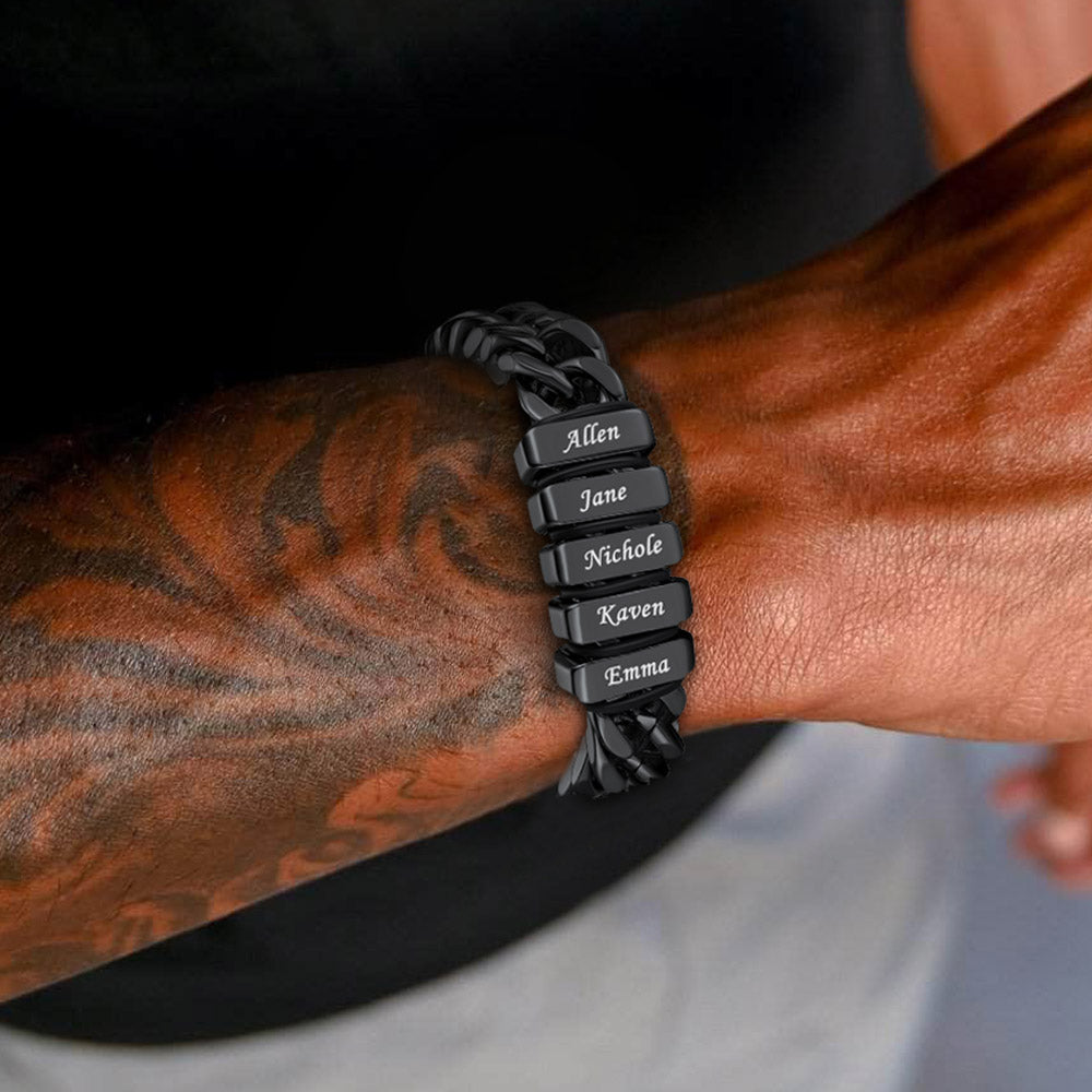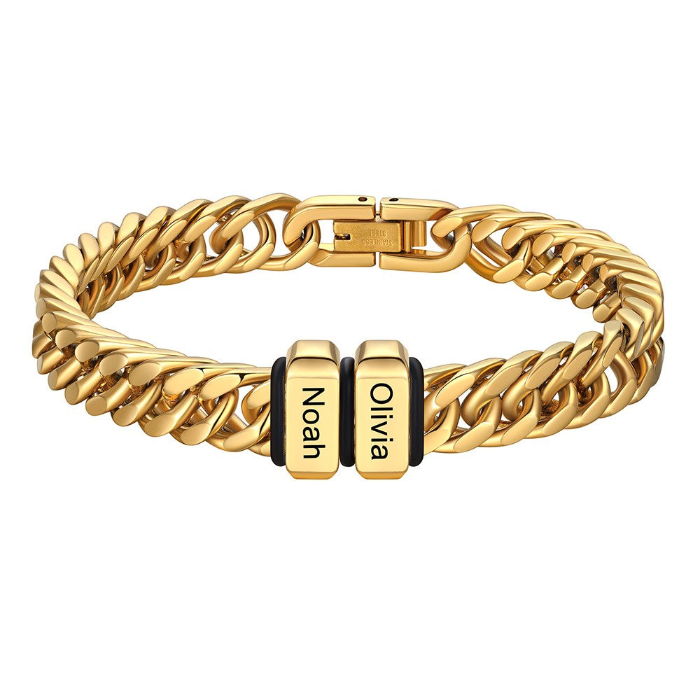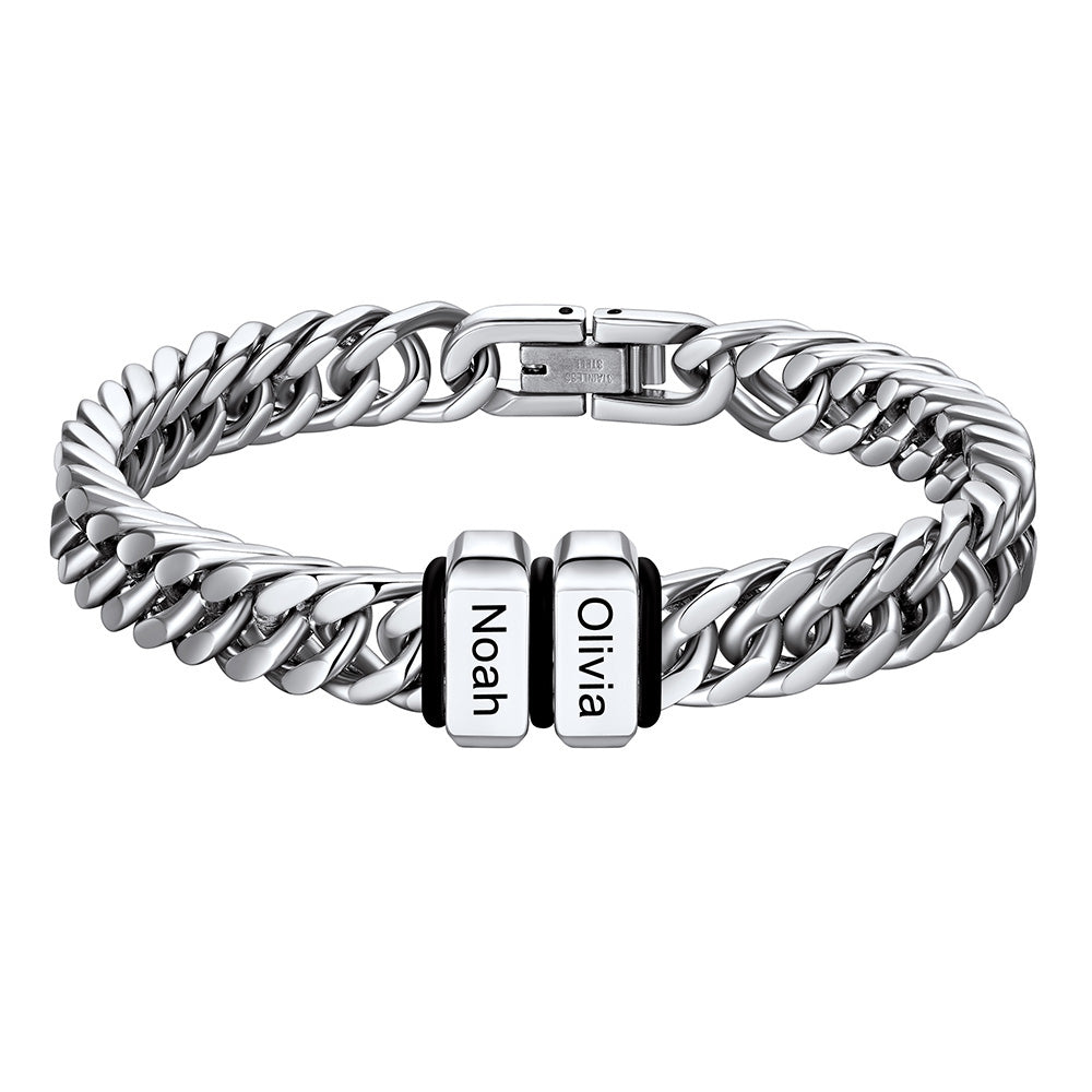 Celebrate the special bond between a father and his children with our Engraved Father's Cuban Link Bracelet - Multiple Names. This stylish and meaningful accessory is designed to honor the names that matter most.