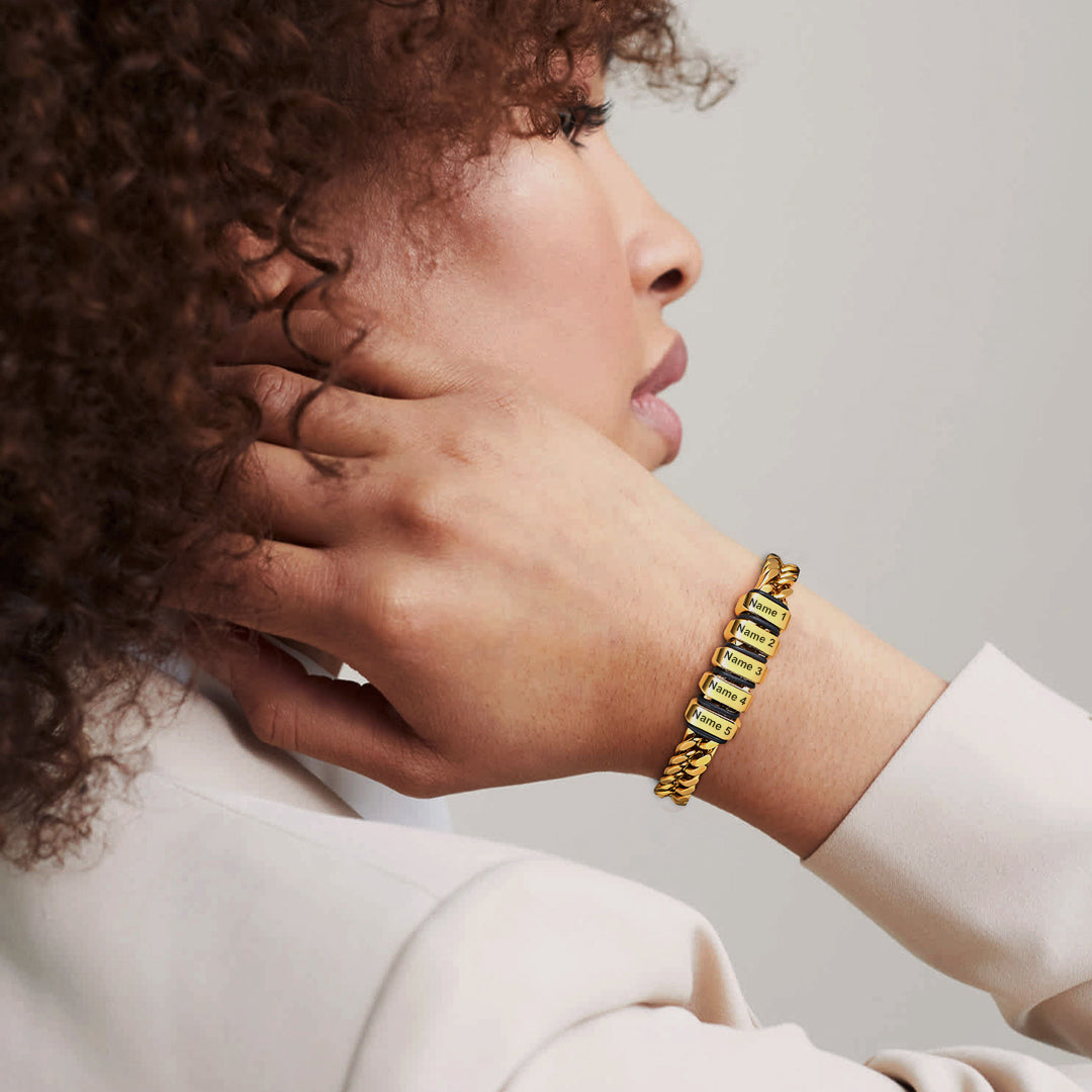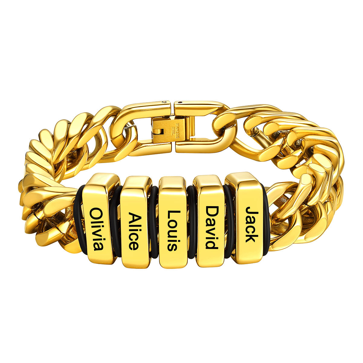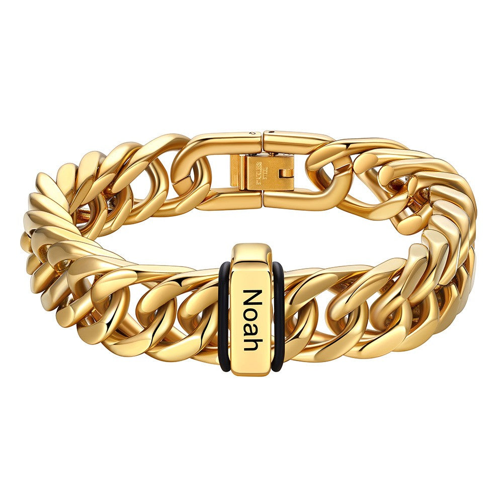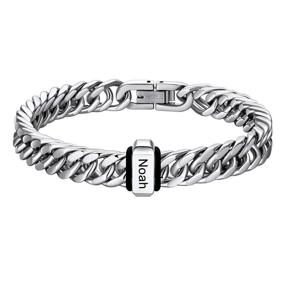 Celebrate the special bond between a father and his children with our Engraved Father's Cuban Link Bracelet - Multiple Names. This stylish and meaningful accessory is designed to honor the names that matter most.
