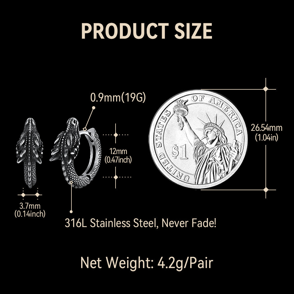 The dragon, a powerful mythical creature, symbolizes strength, freedom, and rebellion¡ªcore elements of punk culture. These dragon hoop earrings are ideal for concerts, parties, festivals, or any occasion where you want to stand out. Pair them with leather jackets, ripped jeans, or rocker-inspired ensembles to complete your rebellious aesthetic.