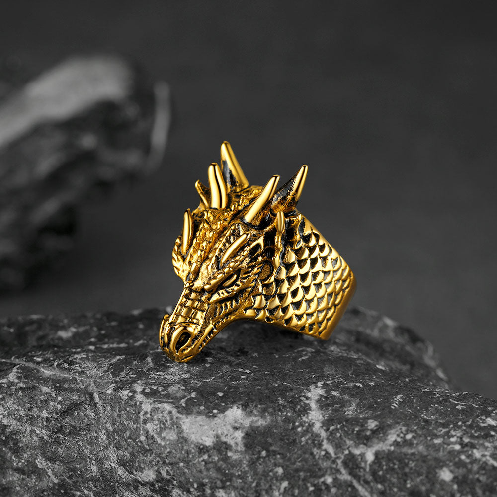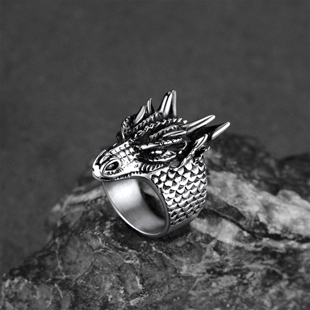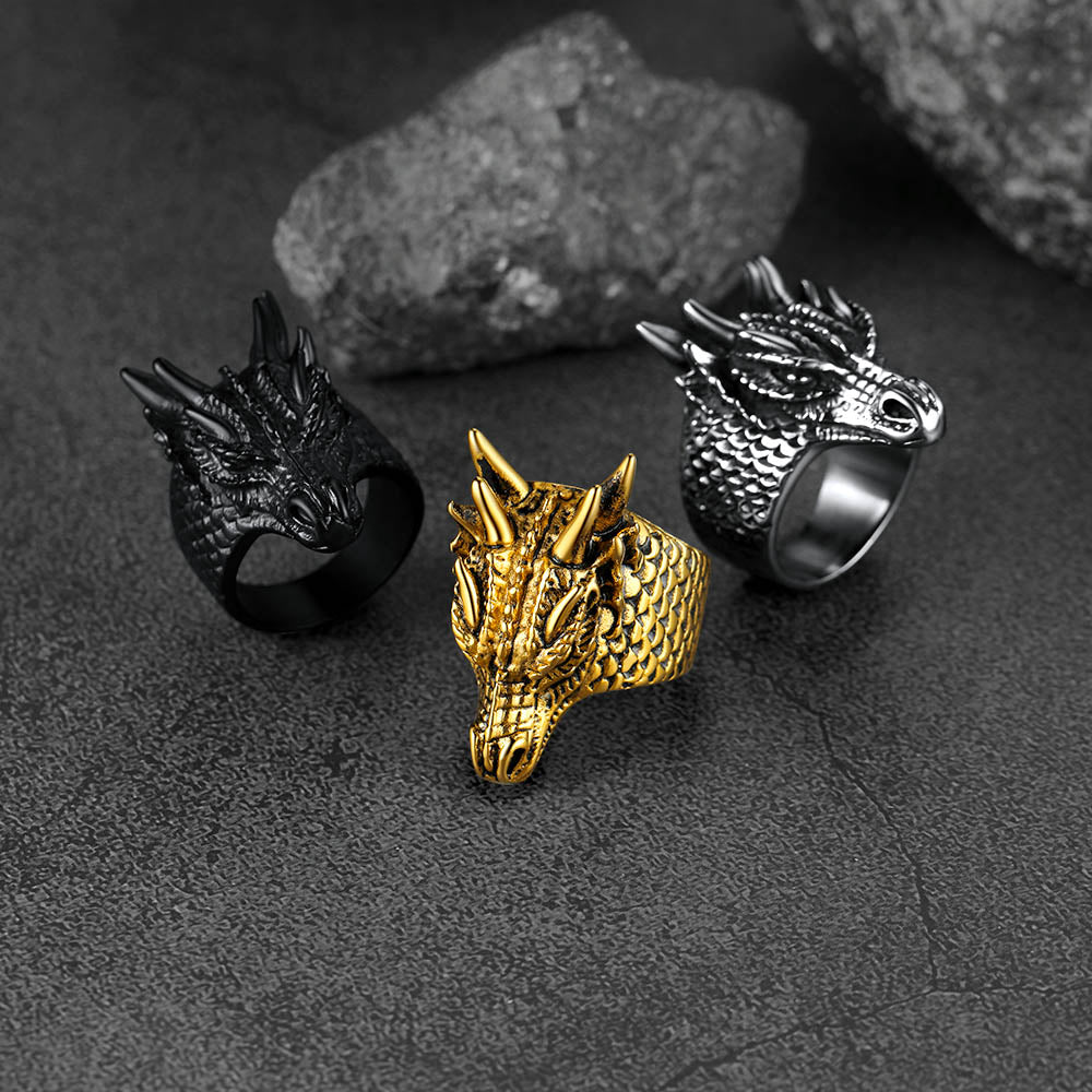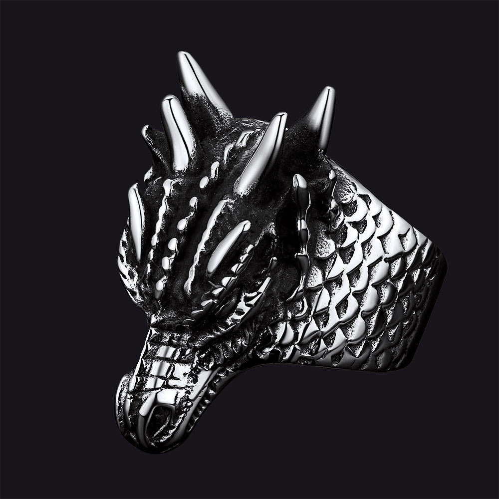 Punk dragon ring for men, enamel plated achieves a vintage look. The dragon symbolizes courage, power, protection, and success.
