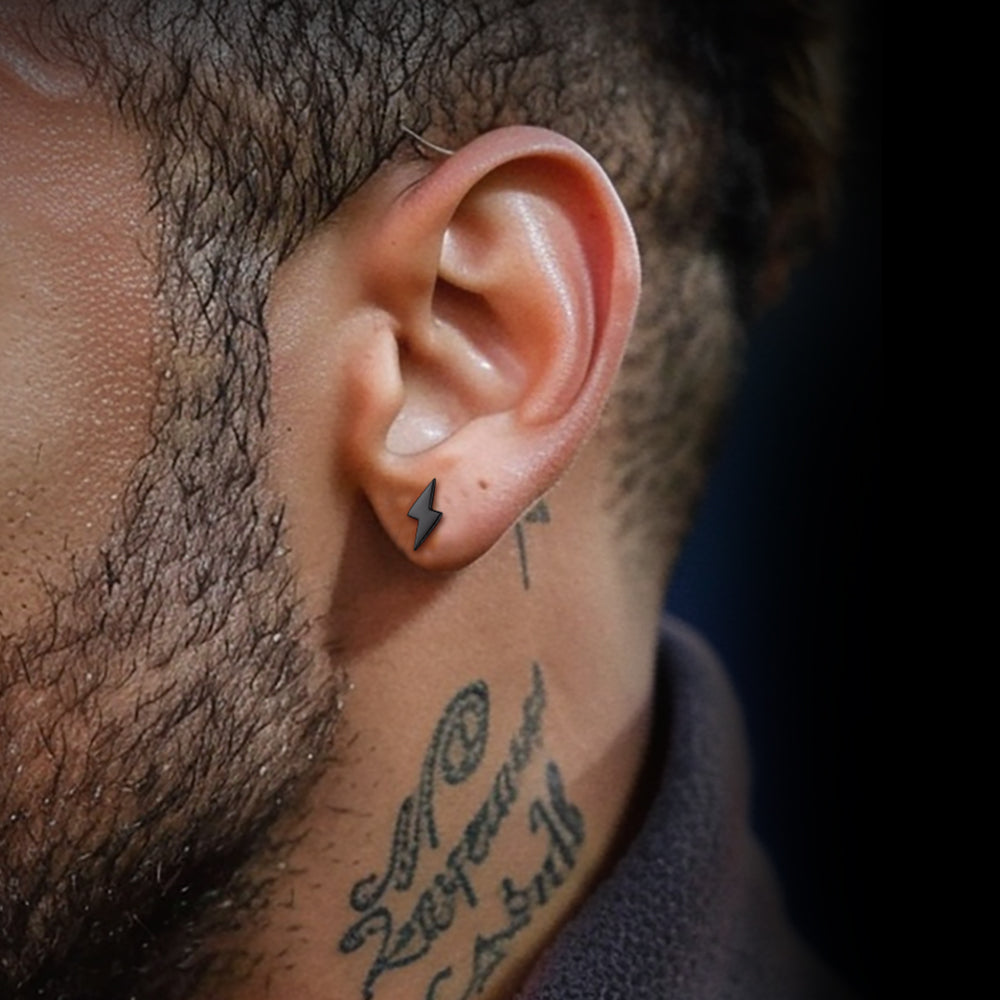 Punk rock sterling silver lightning bolt stud earrings for mens, trendy design, full of personality, a piece of essential jewelry for punk rock men. Comfortable and hypoallergenic, friendly to all kinds of skin. Lightning bolt earrings fit your daily looks perfectly but also work great to rock perfect occasions. These earrings are great for going with other earrings, small but definitely stand out.