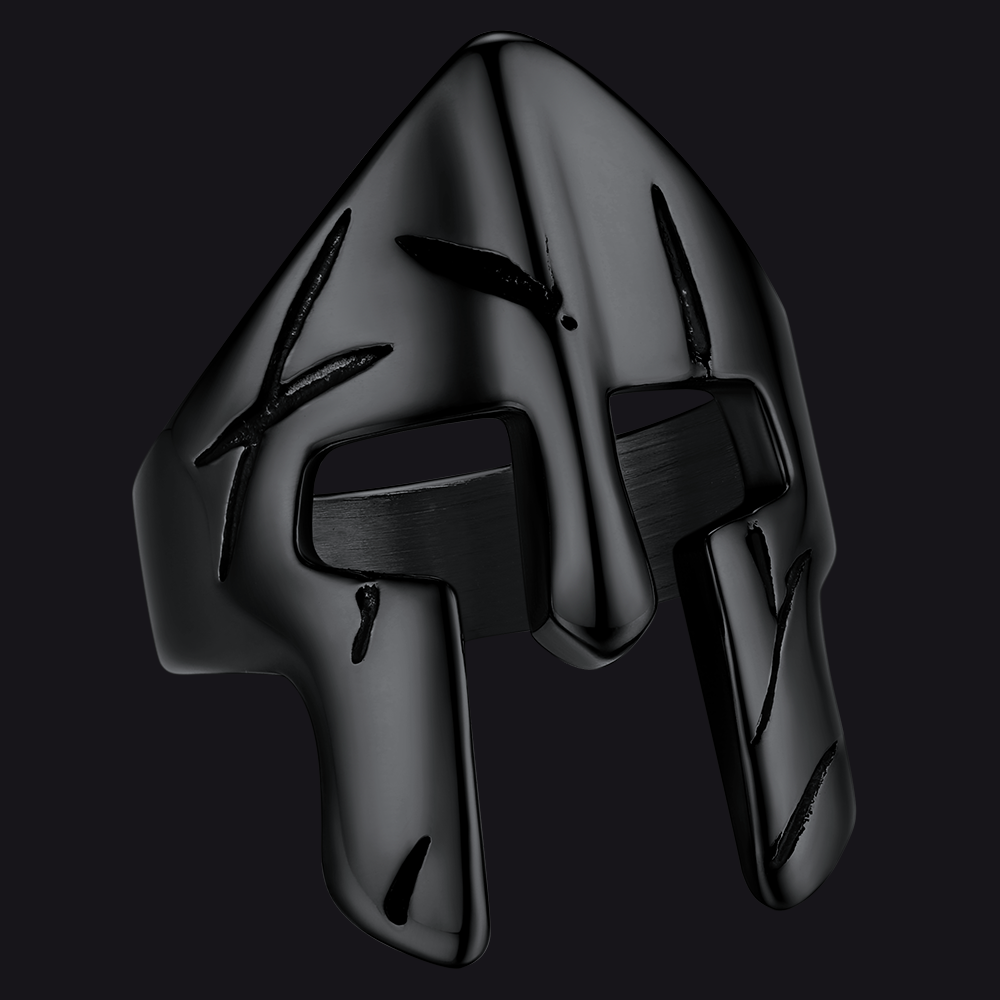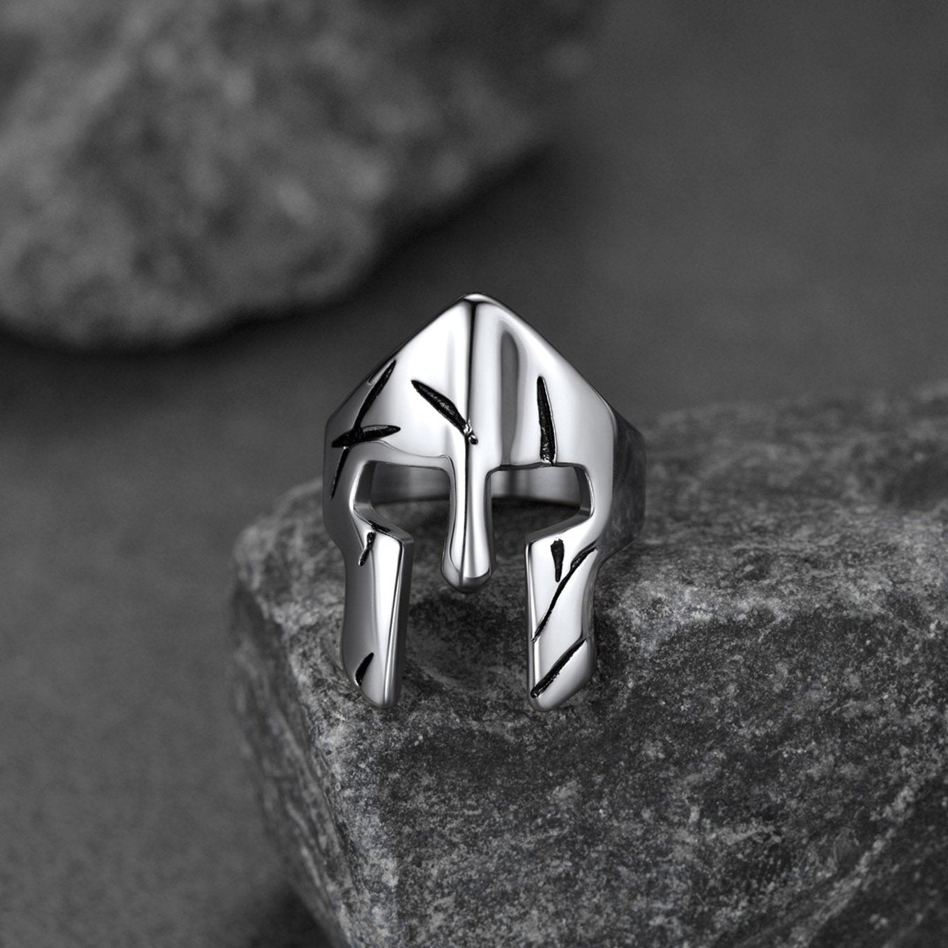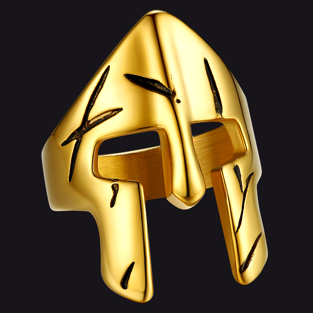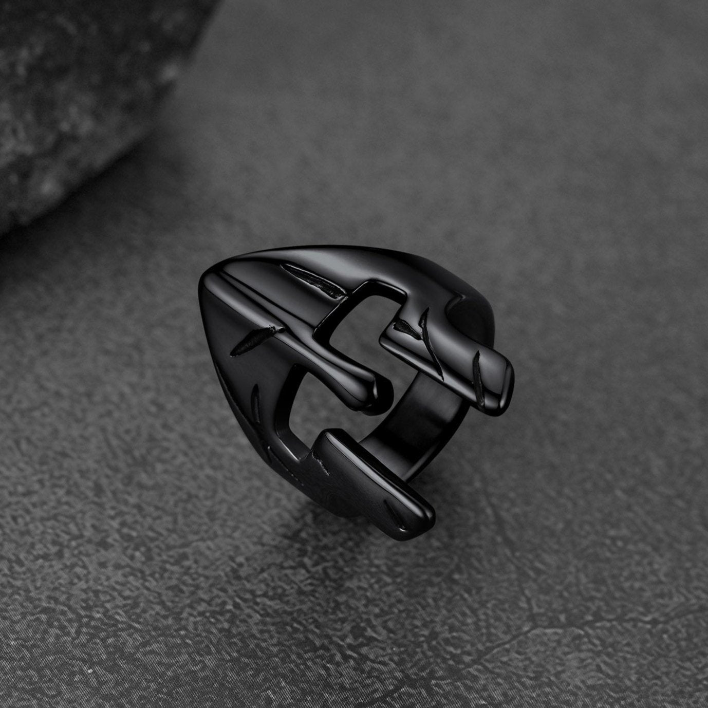 This wide band ring features an Ancient Greek Spartan mask helmet design. This unique combination of Norse Viking spiritual jewelry and ancient Greek warrior symbolism adds a touch of history and culture to your style, making you look wonderful and empowered.