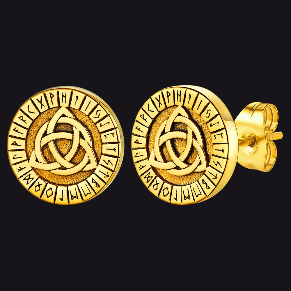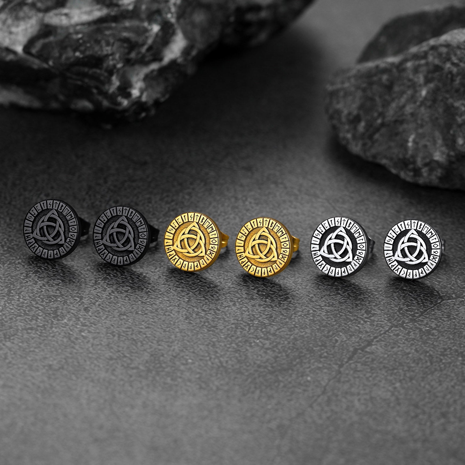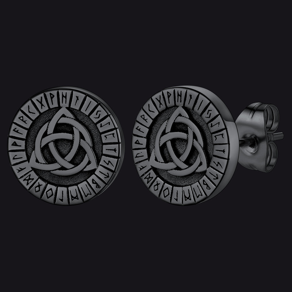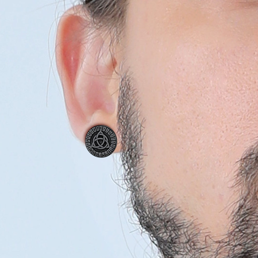 This Viking Celtic knot earrings offer you a sign of Lucky, Faith, Power, Courage and Infinity Love. Made of 316L stainless steel and hypoallergenic. These Viking stud earrings with runes for men is suitable for the pursuit of norse mythology enthusiast.