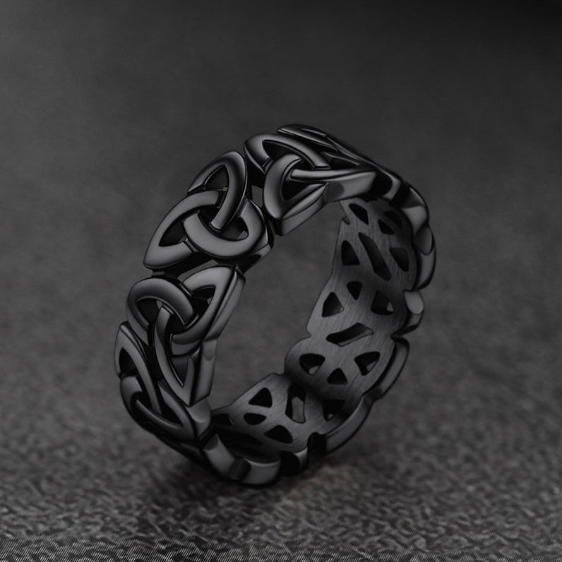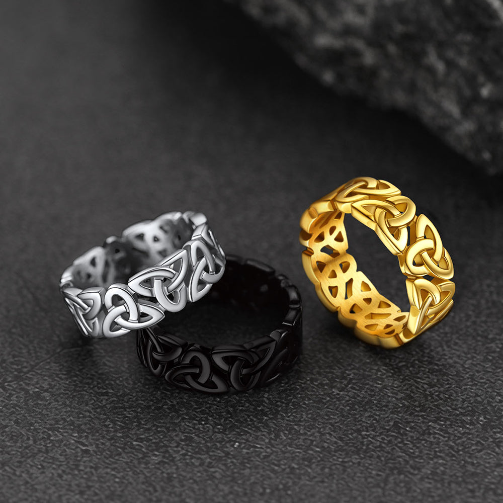 Irish Celtic knot band rings for men or women, designed with intricate weave braided Celtic style. For millennia, the Celtic knot has been known as a symbol of love and eternity. Traditional and meaningful, they are made of 316L stainless steel with 18k gold/black plated, lead-free, and nickel-free. Perfect for sensitive skin, they can endure a lot of wear and tear.