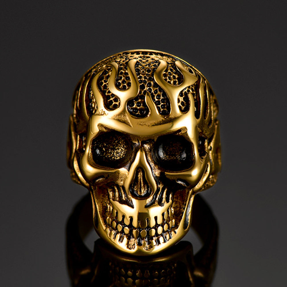 Nice Looking Gothic Skull Ring, Fire Ring of Skull Design, stylish and cool. This means the skull ring is made of high-quality 316L stainless steel that is hypoallergenic. Ideal gift for skull, punk, gothic, or rock fans on Christmas, Valentine's Day, All Saints' Day, Father's Day, Birthday, Graduation, and other occasions.