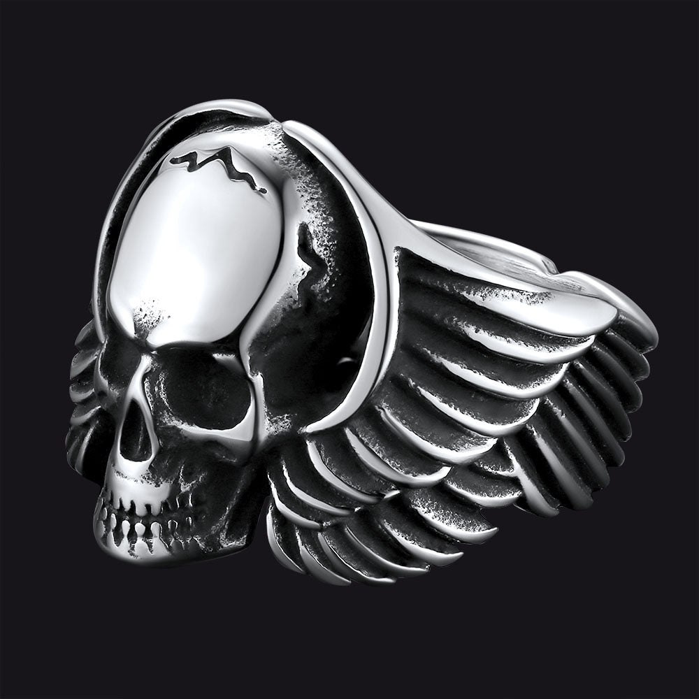 Punk skull wings ring can incredibly boost your confidence and greatly show your personality holding its own in any situation.The gothic skull ring is made of hypoallergenic stainless steel. Gift for boyfriend, fathers and friends with our Gothic skull head jewelry on Christmas, Halloween, Valentine Day, Thanksgiving Day etc.