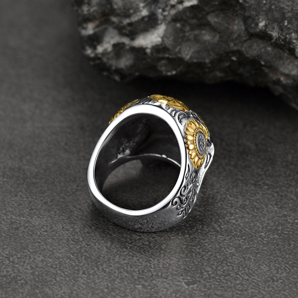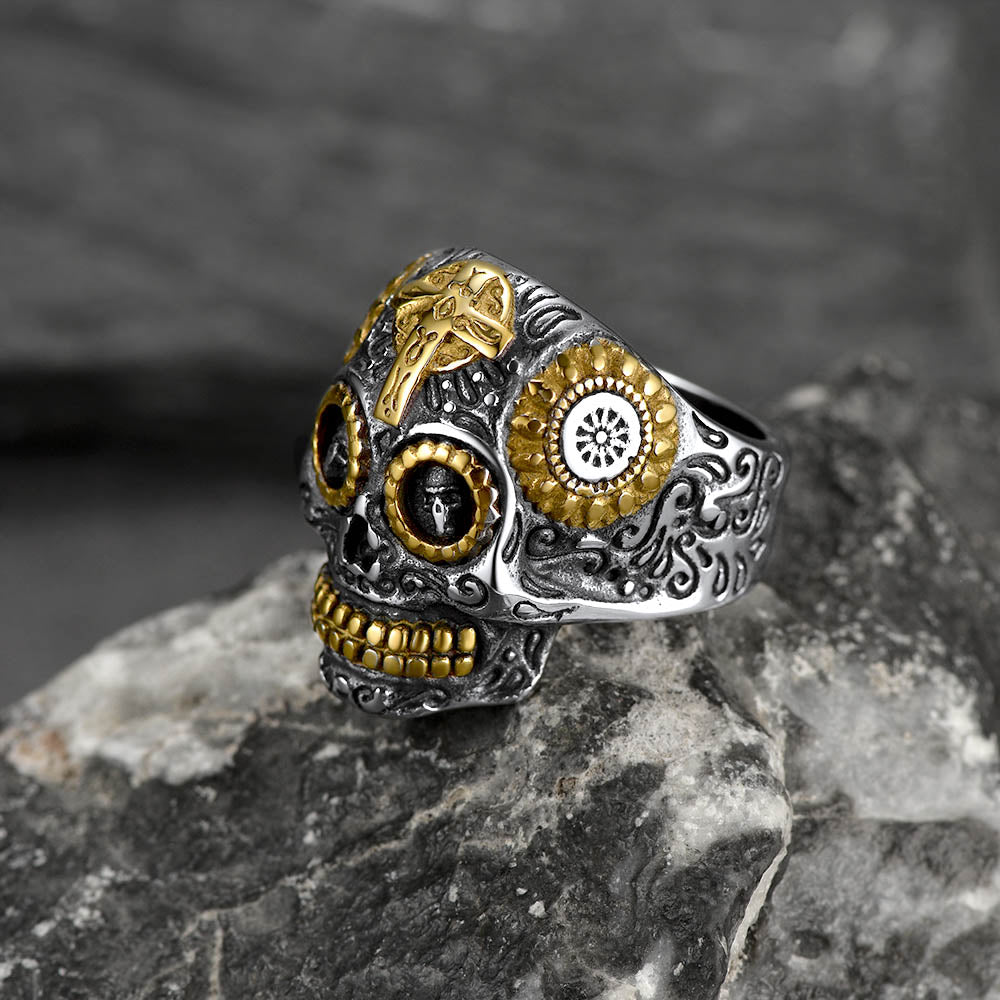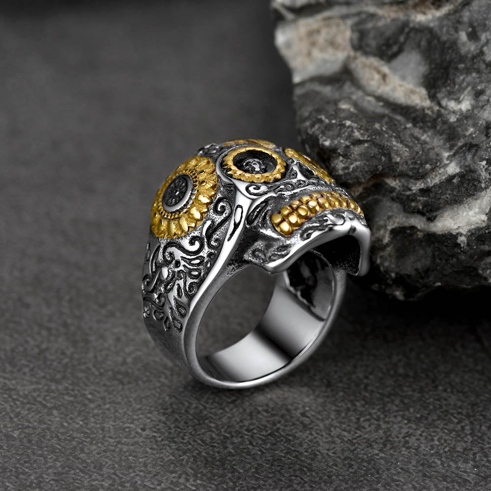 The sugar skull ring is an absolute eye-catcher. It can match punk, biker, rock and roll, gothic, and hip-hop-style clothing. This is a statement ring so be prepared for people to ask. You will get a lot of compliments on this day of the ring.