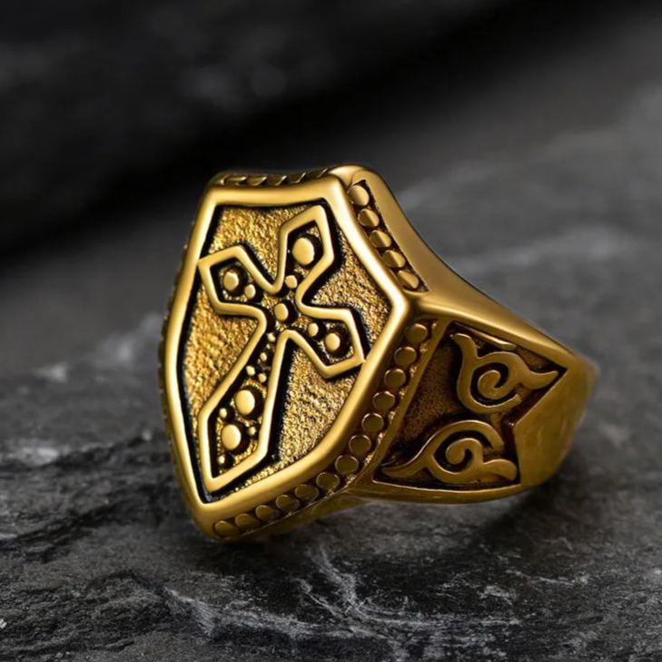 Shield Crusader Templar Cross Stainless Steel Ring Men