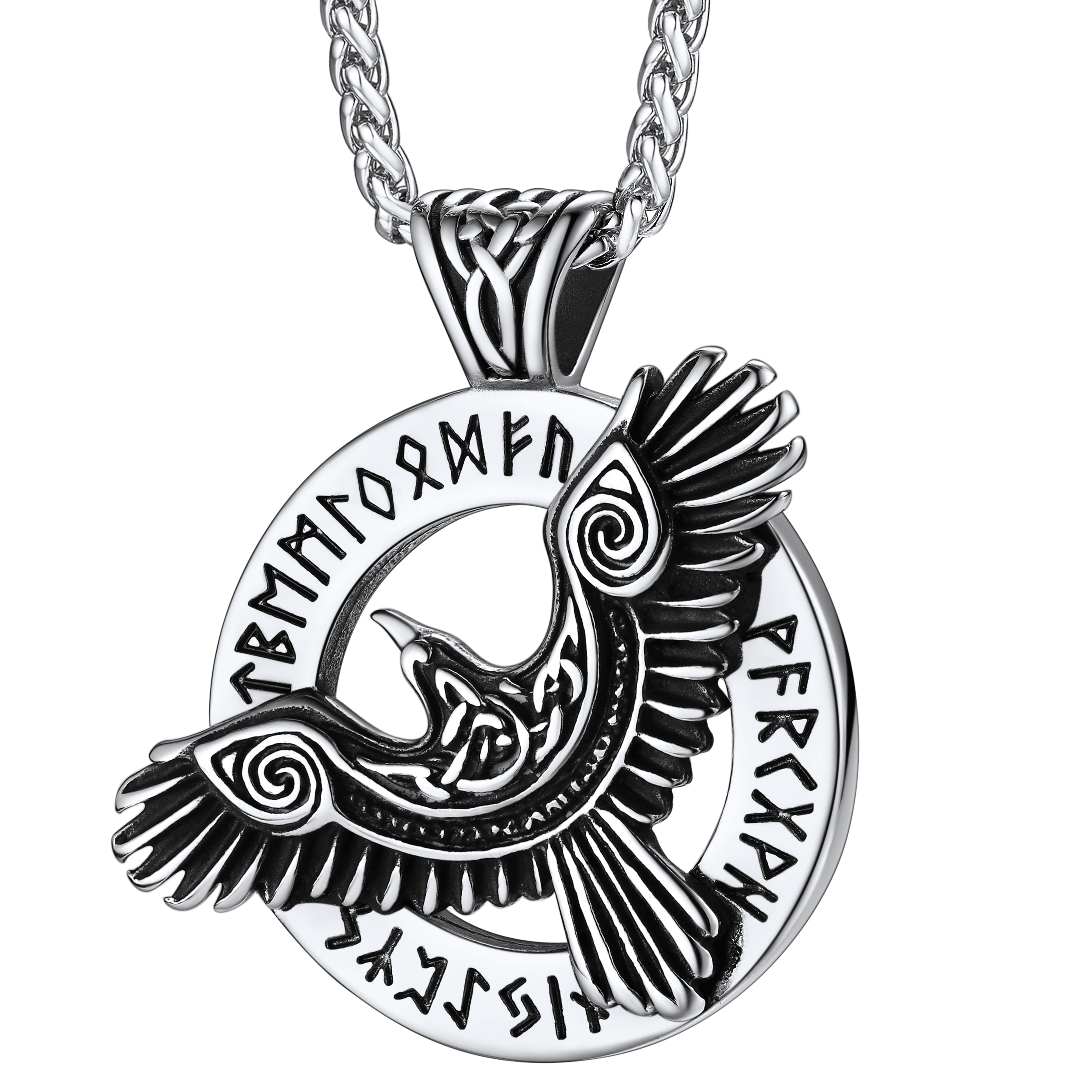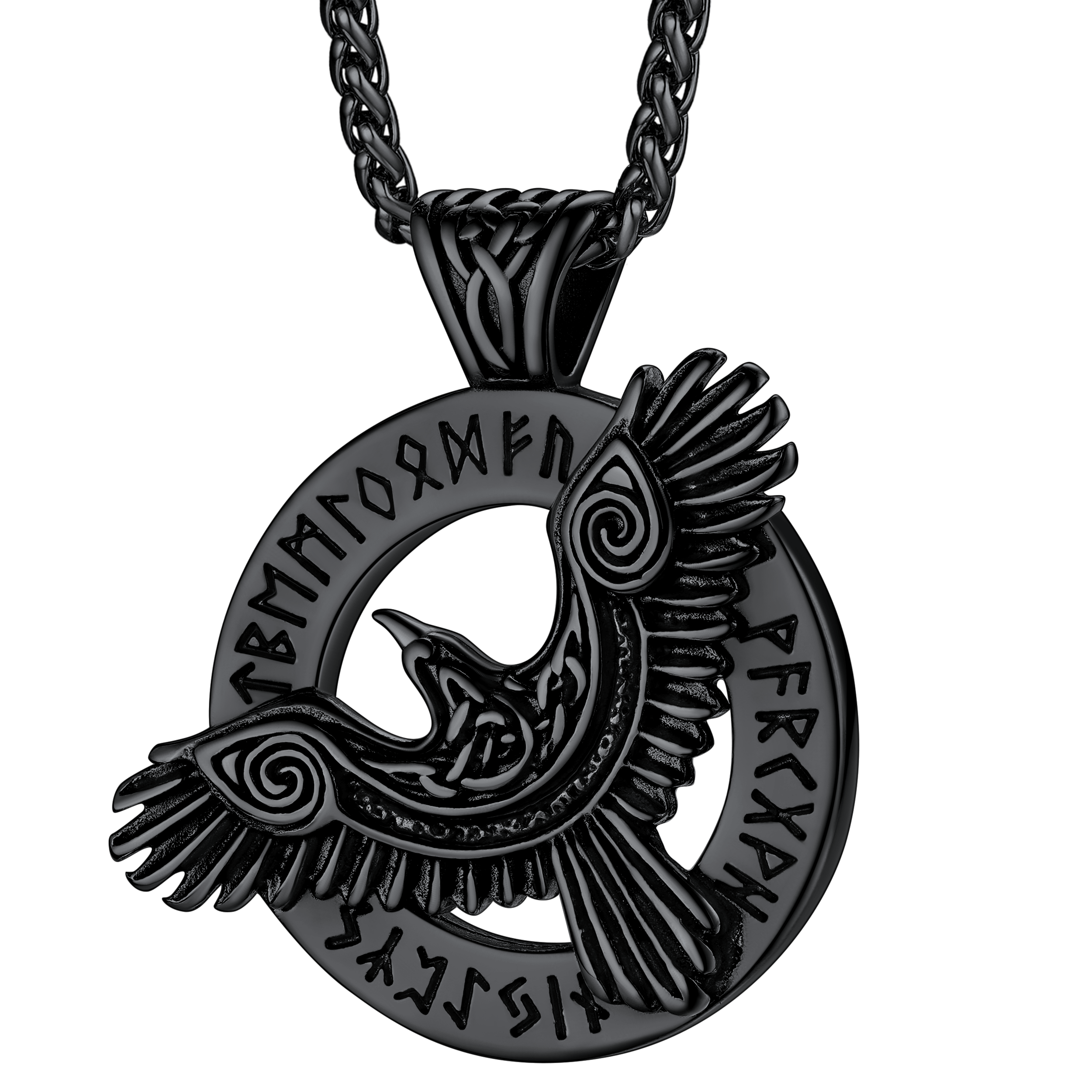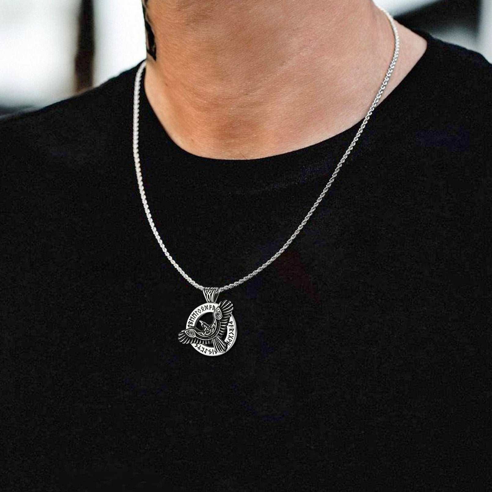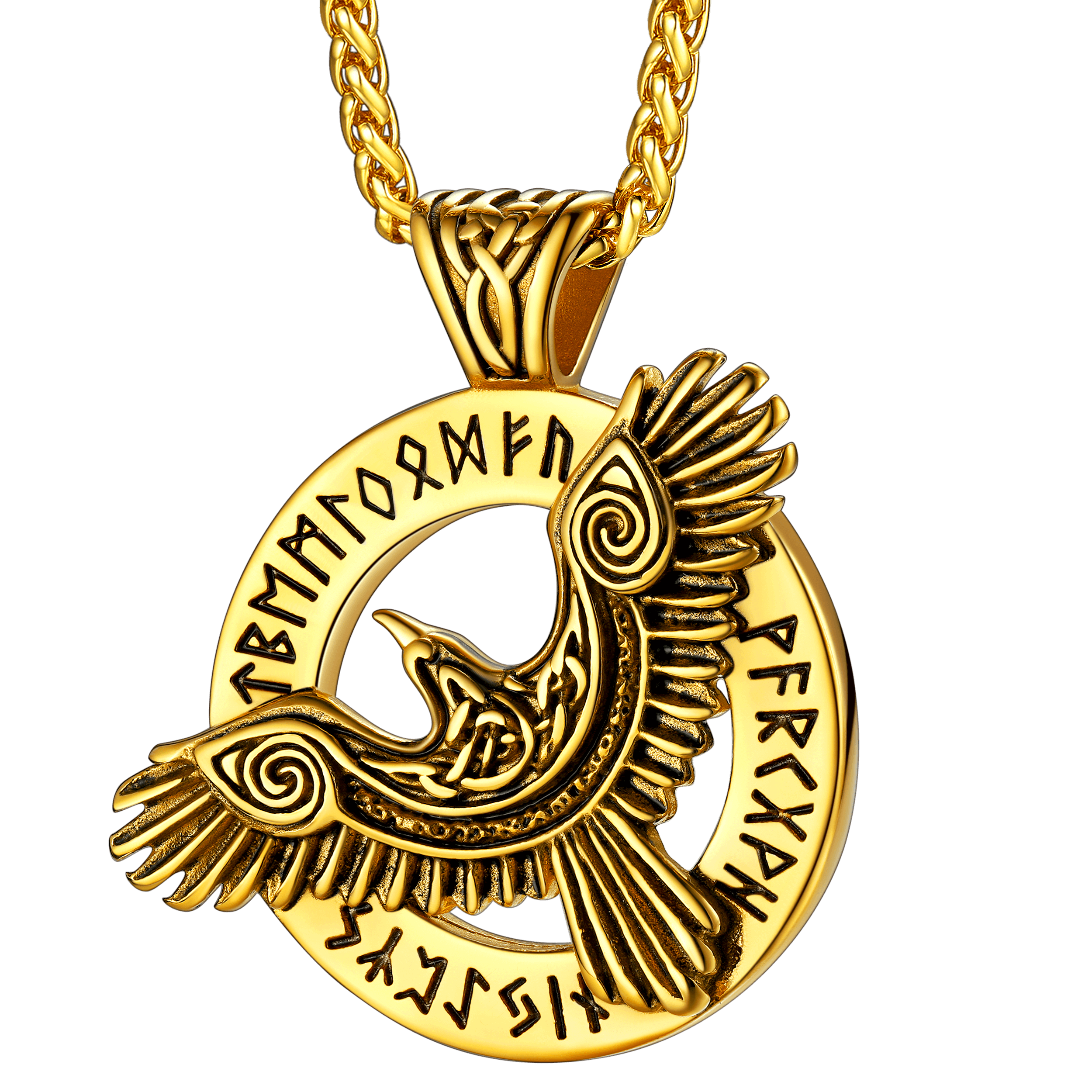 Viking gothic Odin raven runes necklace for men with Celtic knot pattern, protection amulet talisman necklaces, bring good luck and bravery to the wearer. Perfectly suitable for the pursuit of occult enthusiasts. Made of 316L stainless steel, 18K gold, black plated, hypoallergenic.