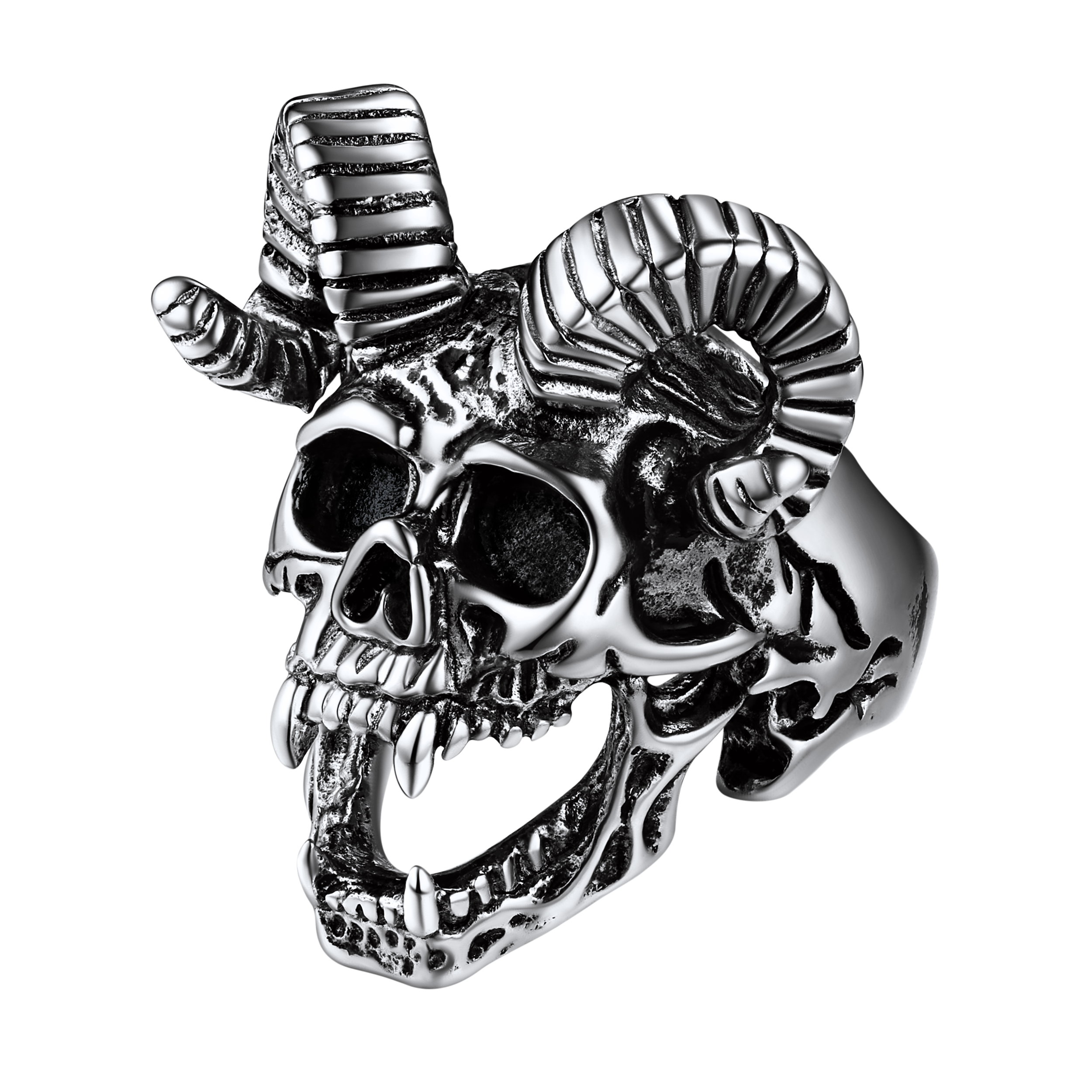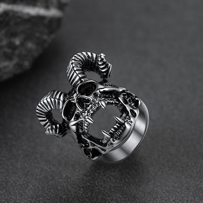 SATANIC BAPHOMET GOAT RING: This symbol is widely used by Satanists, however, its original meaning has nothing to do with demons. The Baphomet's goat horns are finely carved and polished.