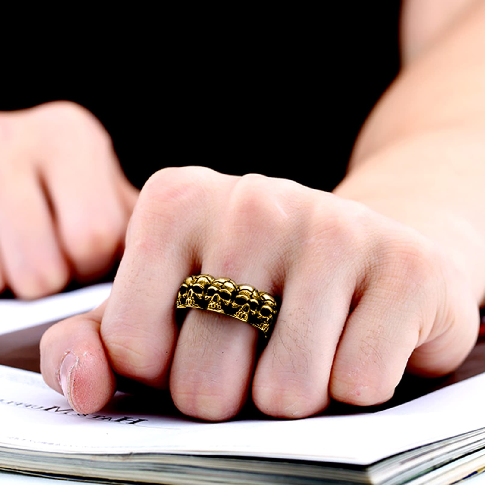 Gothic punk men's skull ring, retro style, suits for biker, hip hop, rock and gothic fans, it can be the highlight of the outfit overall. Made of 316L stainless steel, hypoallergenic, perfect gift for him, your lover, boyfriend, husband, boys, or friends.