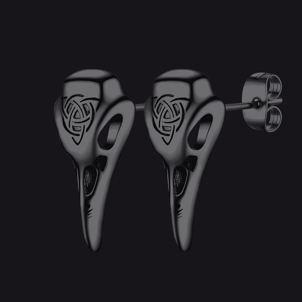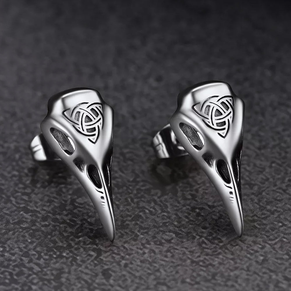 Viking Celtic knot raven skull stud earrings for men, celebrate the stylish design and the Norse vibe together. To the followers of Mithras, the raven is a symbol of initiation into deeper mysteries. A sacred talisman to steady the course and point the way through life's maelstrom.