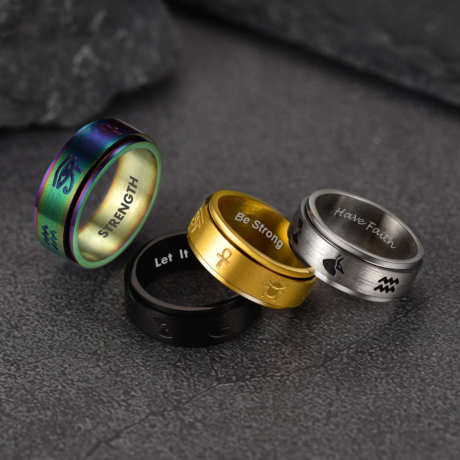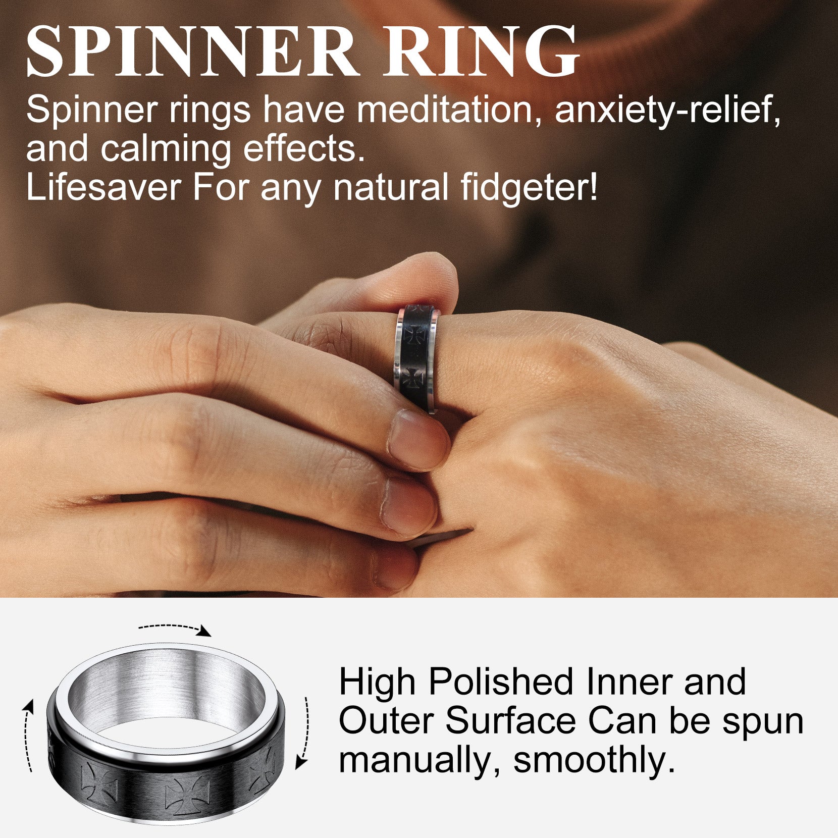 perfect for the moments when you need to relieve stress or social tension at parties or gatherings, rotate the ring a few times, calm down your nerves and slowly relax. his fashion spinner ring is especially recommended to anyone looking for a non-distracting way to redirect bad habits or get out of fidgety energy when you otherwise can't.