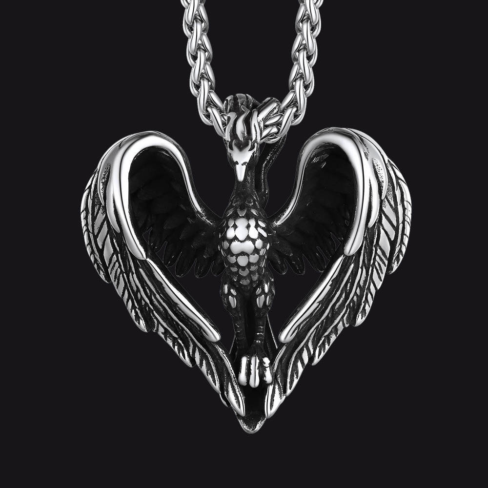 This Phoenix necklace is versatile and can be worn for various occasions. The phoenix, an ancient mythological creature, is the focal point of this gothic-inspired necklace. It symbolizes that the phoenix represents the concept of phoenix nirvana, rising from the ashes and symbolizing eternal love. Crafted with care, this vintage Phoenix pendant necklace is made from high-quality materials to ensure both durability and safety.