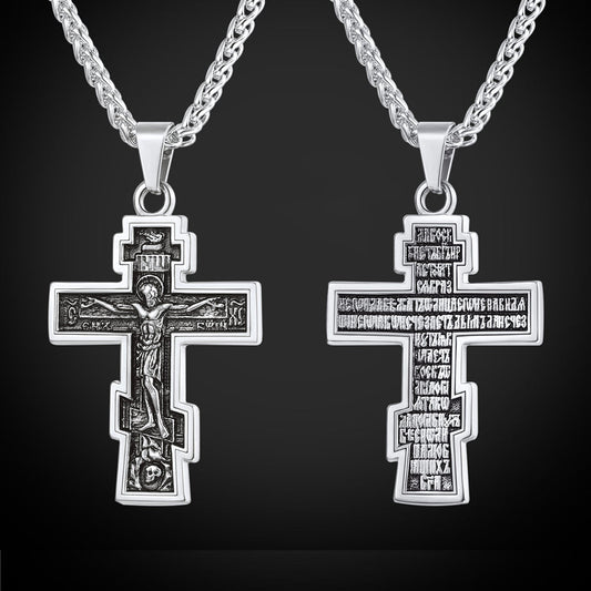 Colar com pingente de cruz ortodoxa russa com Jesus cristão para homens, com belos detalhes na frente e atrás, borda lisa, clássico e retrô. Feito de aço inoxidável genuíno, sem manchas, sem ferrugem, sem alergias, sem chumbo e níquel. Presente perfeito para protestantes, cristãos,...- $27.99