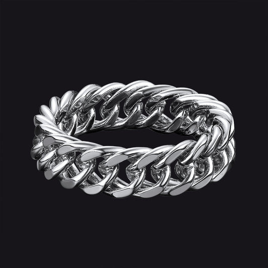 Anel de aço inoxidável com corrente cubana da moda para homens