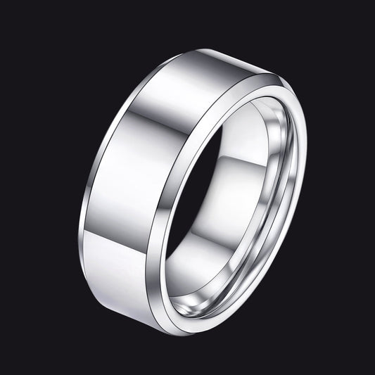 Design de anel de carboneto de tungstênio moderno para homens, com superfície simples e altamente polida e borda chanfrada. Este anel de aliança básico com borda chanfrada é uma peça atemporal que nunca sai de moda. FaithHeart? Aliança básica masculina, ideal para aniversário, compromisso...- $35.99