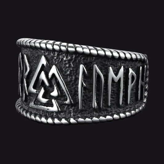 Anel de Runas Nórdicas de Prata de Lei com Ônix Preto
