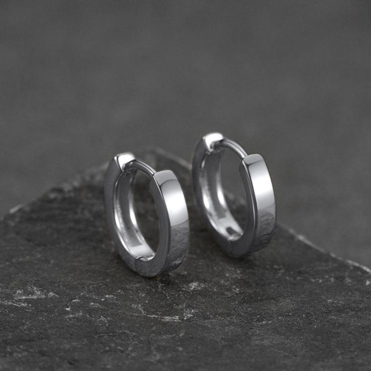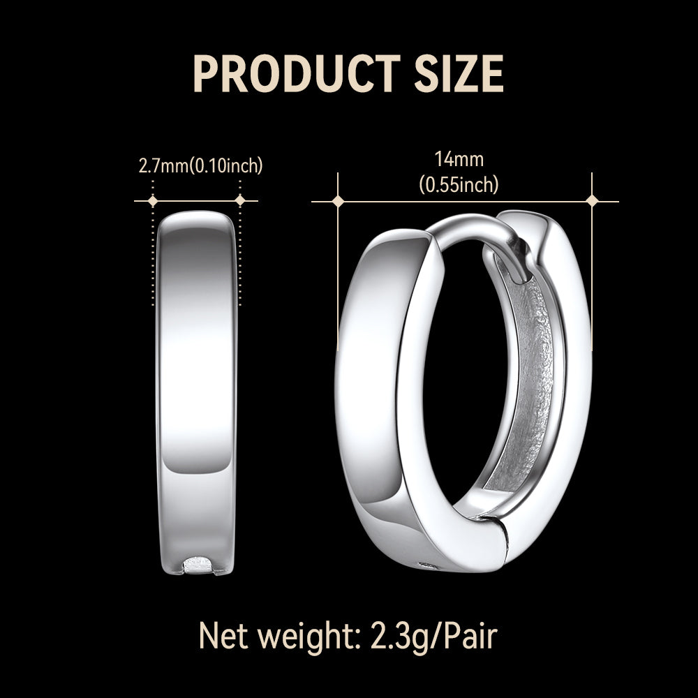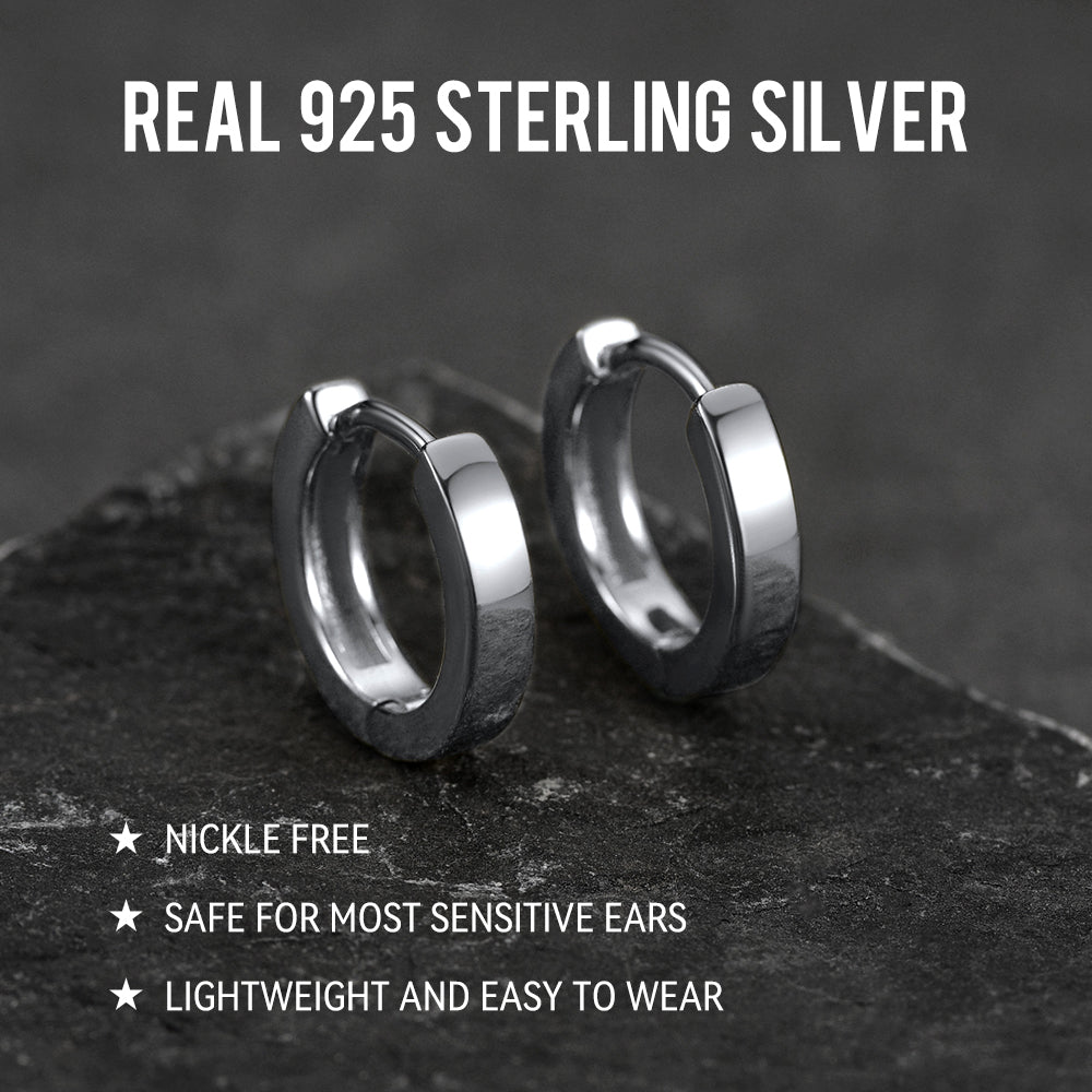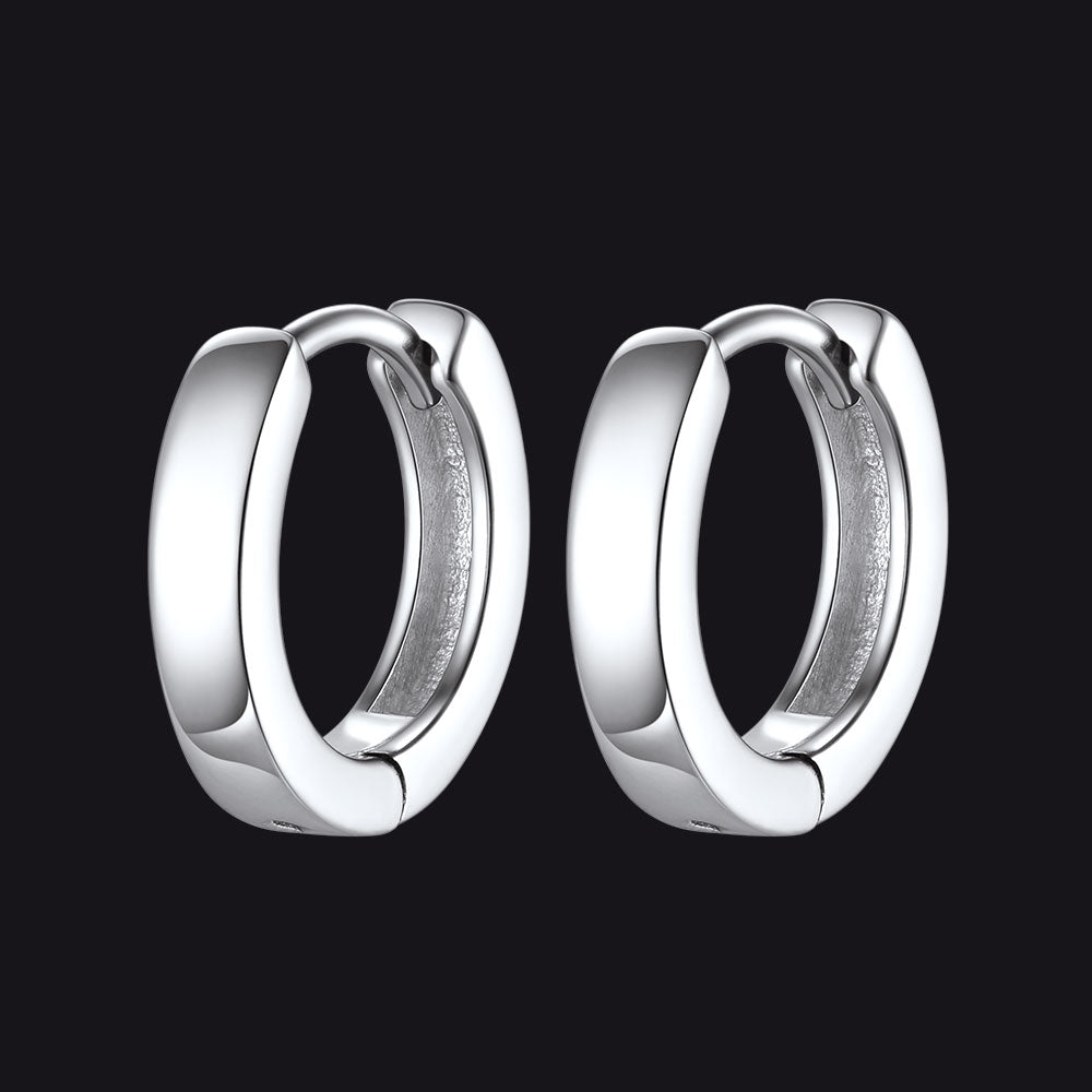Brincos Huggie Hoop Clássicos de Prata Esterlina para Homens e Mulheres