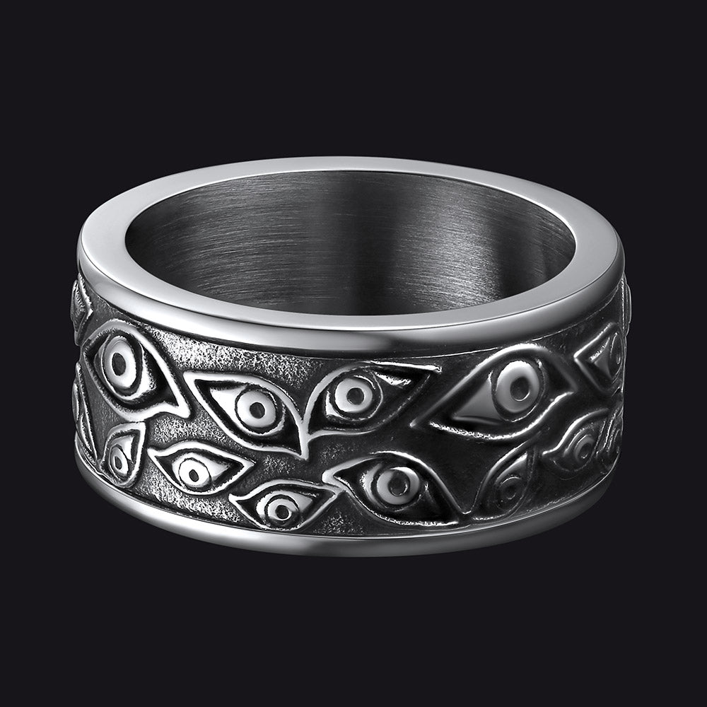 • Anel anti-mau-olhado para ansiedade e inquietação, com padrão de vários olhos, mantém o design da pulseira, adicionando um estilo moderno e vintage. O anel anti-mau-olhado é feito de aço inoxidável de alta qualidade, antiferrugem e seguro para peles sensíveis. O anel anti-mau-olhado combina com qualquer ocasião, seja em casa ou no escritório.