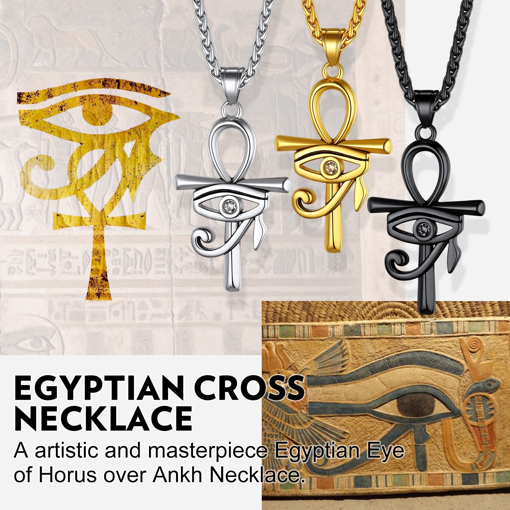 O Olho de Hórus é um conceito e símbolo da religião egípcia antiga que representa bem-estar, cura e proteção. O Ankh é um símbolo de vida eterna no Egito Antigo. Hoje, o Ankh é usado como um amuleto de boa sorte, promovendo boa saúde e vida longa.