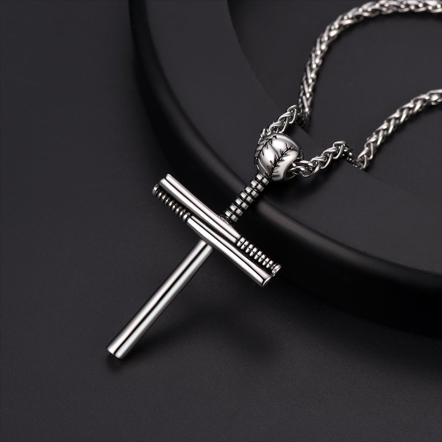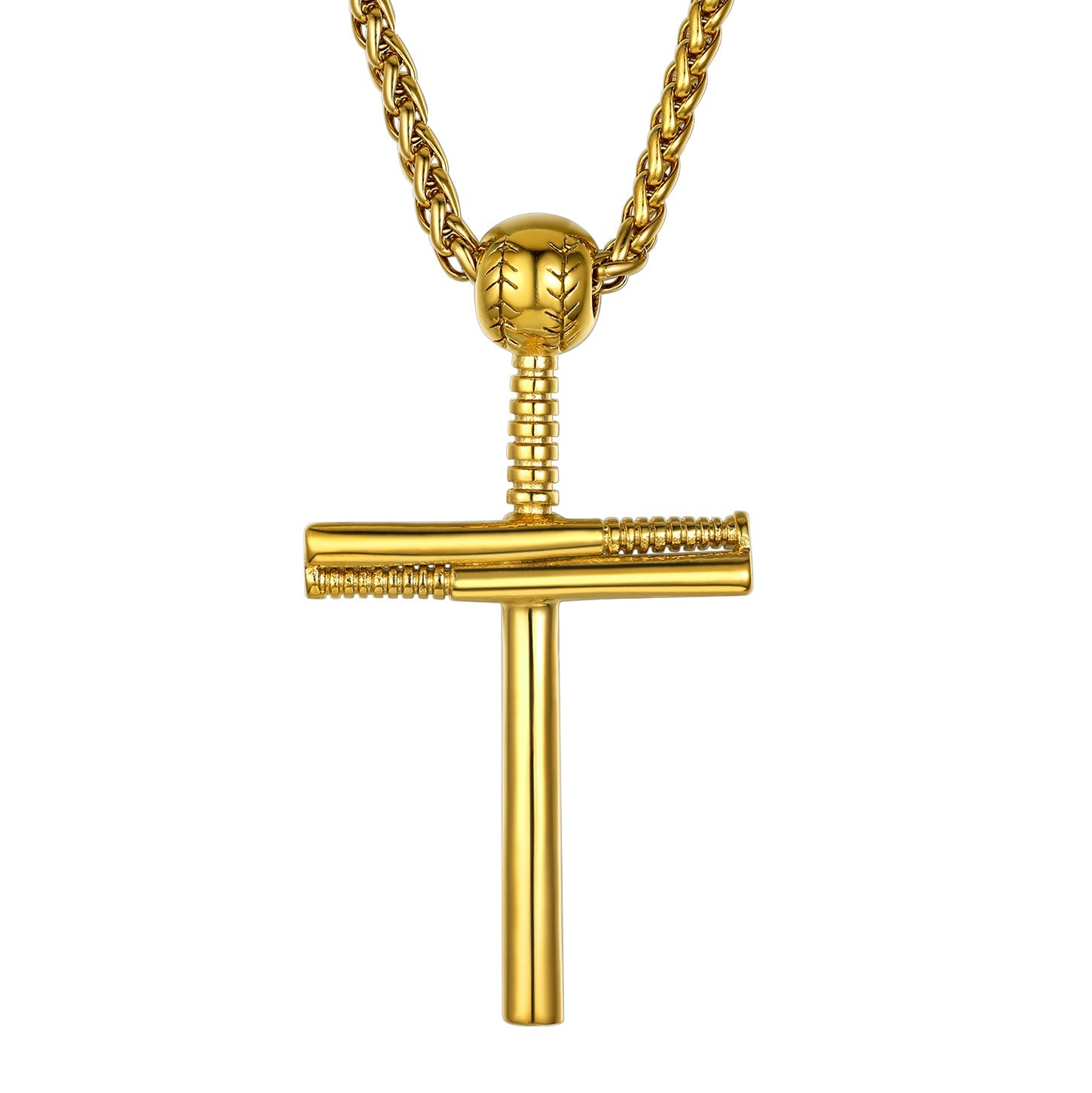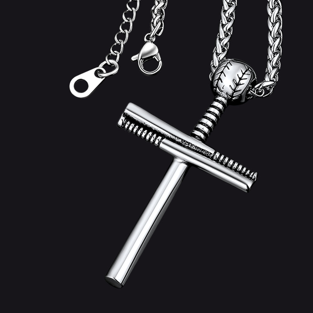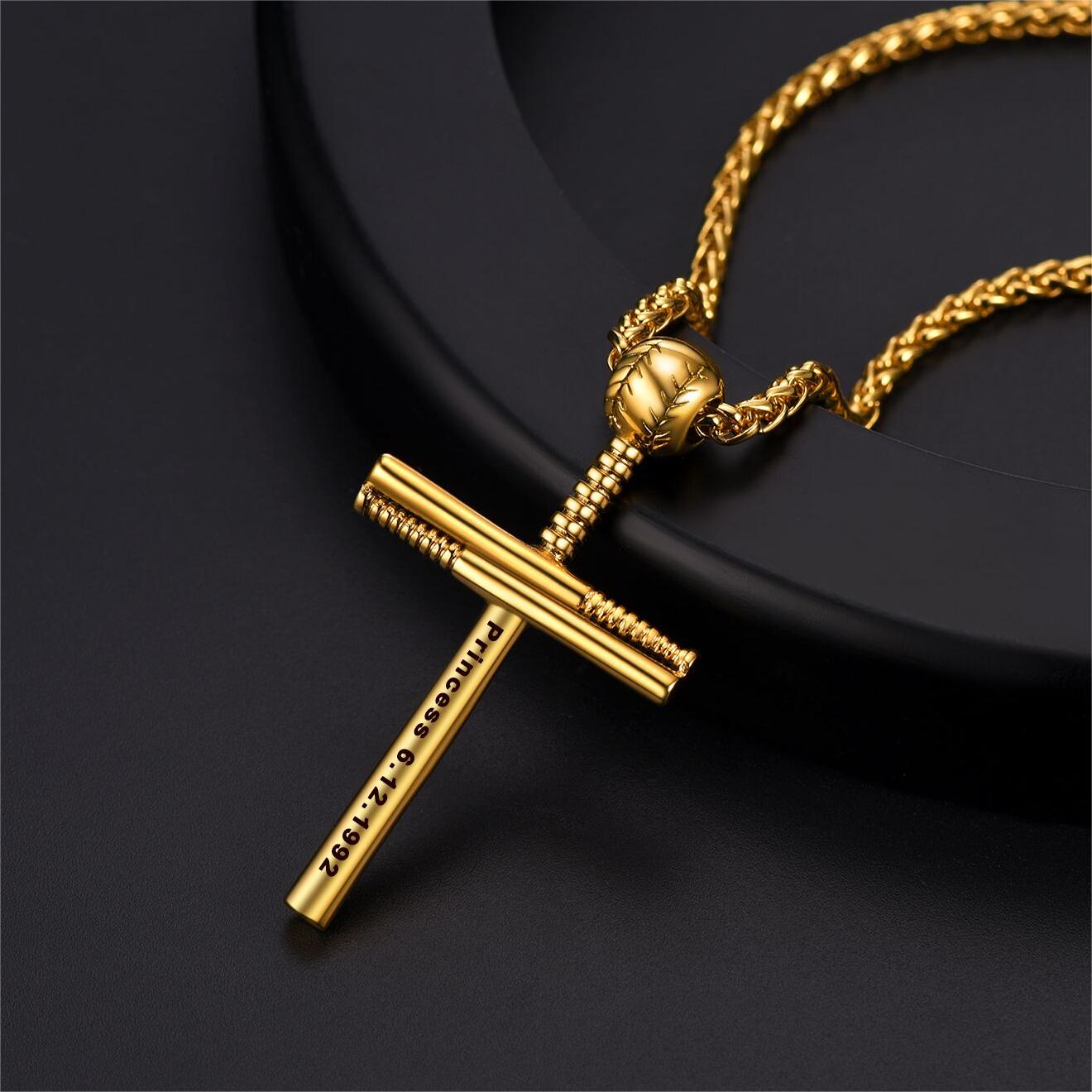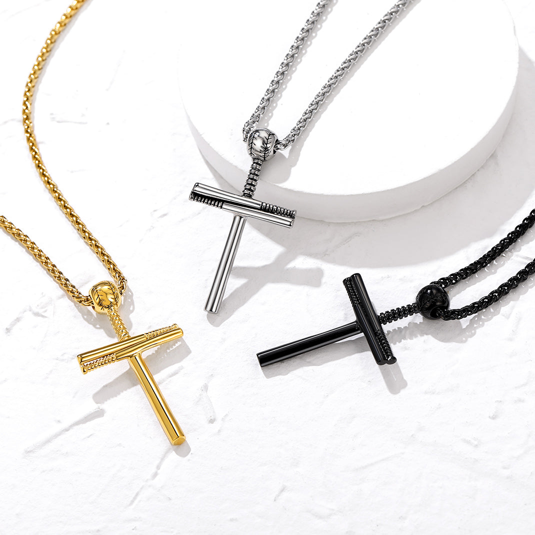 O colar geralmente tem um formato de cruz simples, generoso e clássico! Este colar com cruz e taco de beisebol é hipoalergênico e seguro para peles sensíveis.