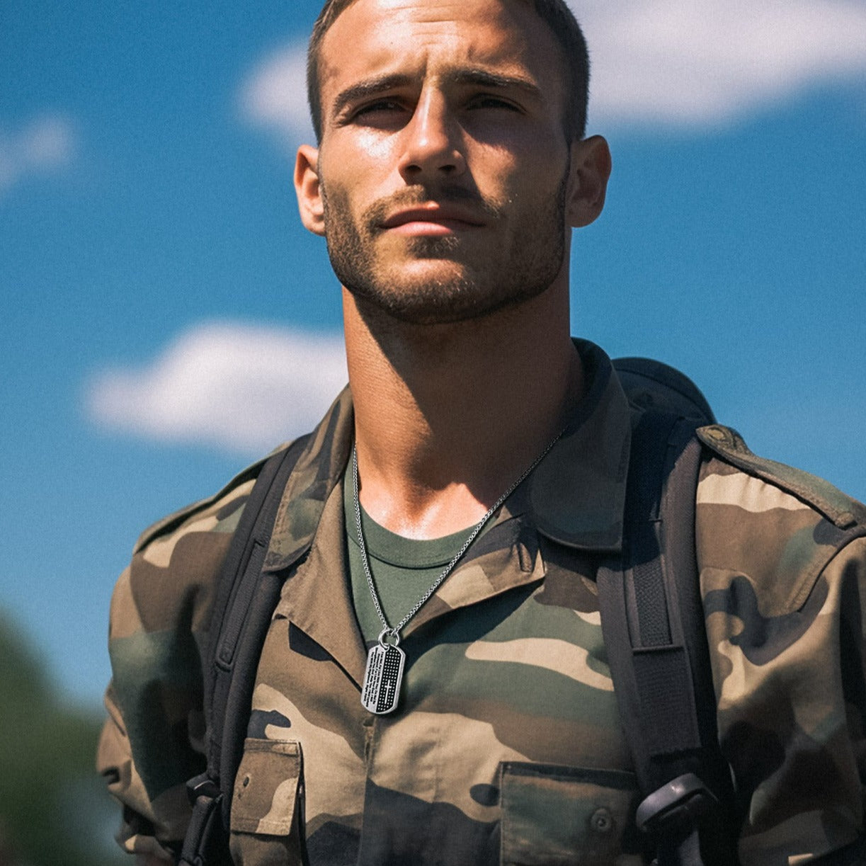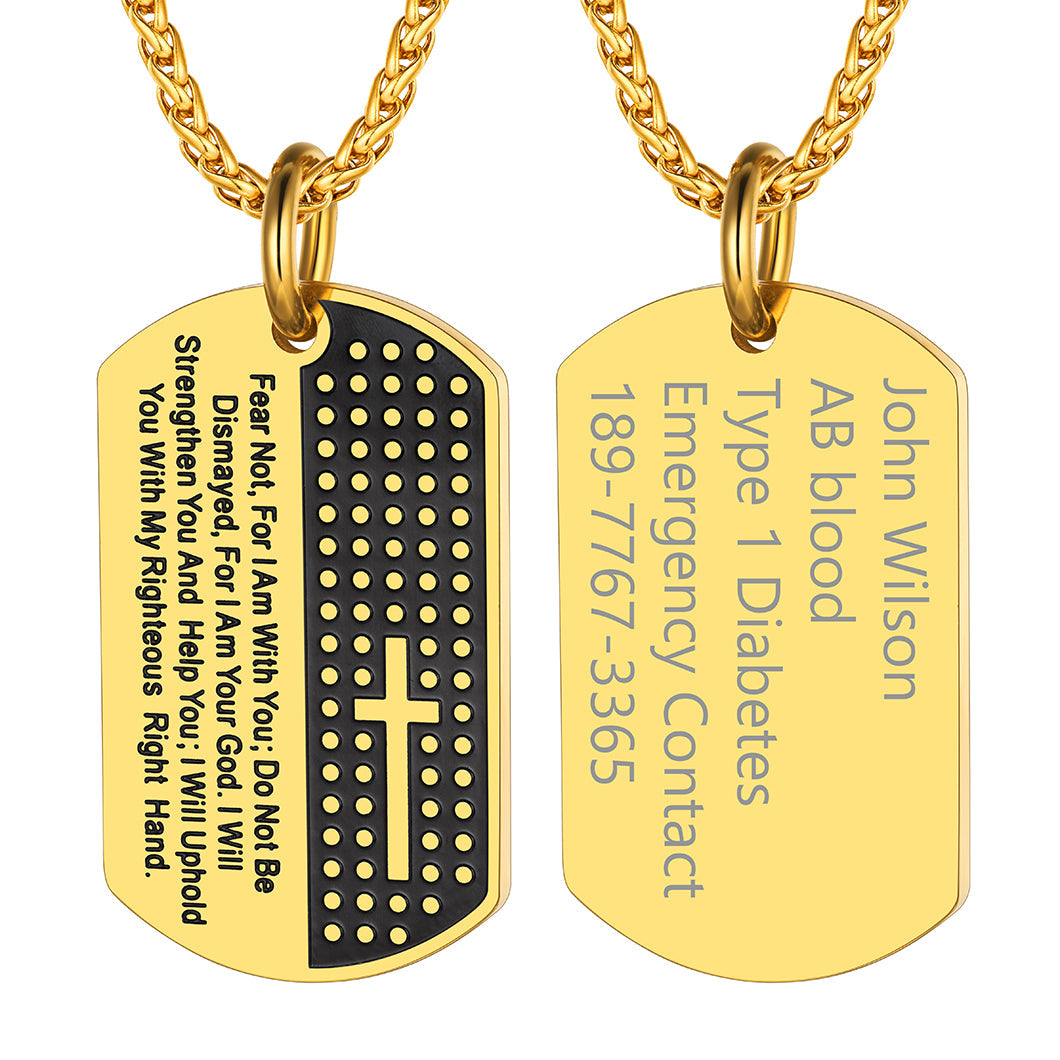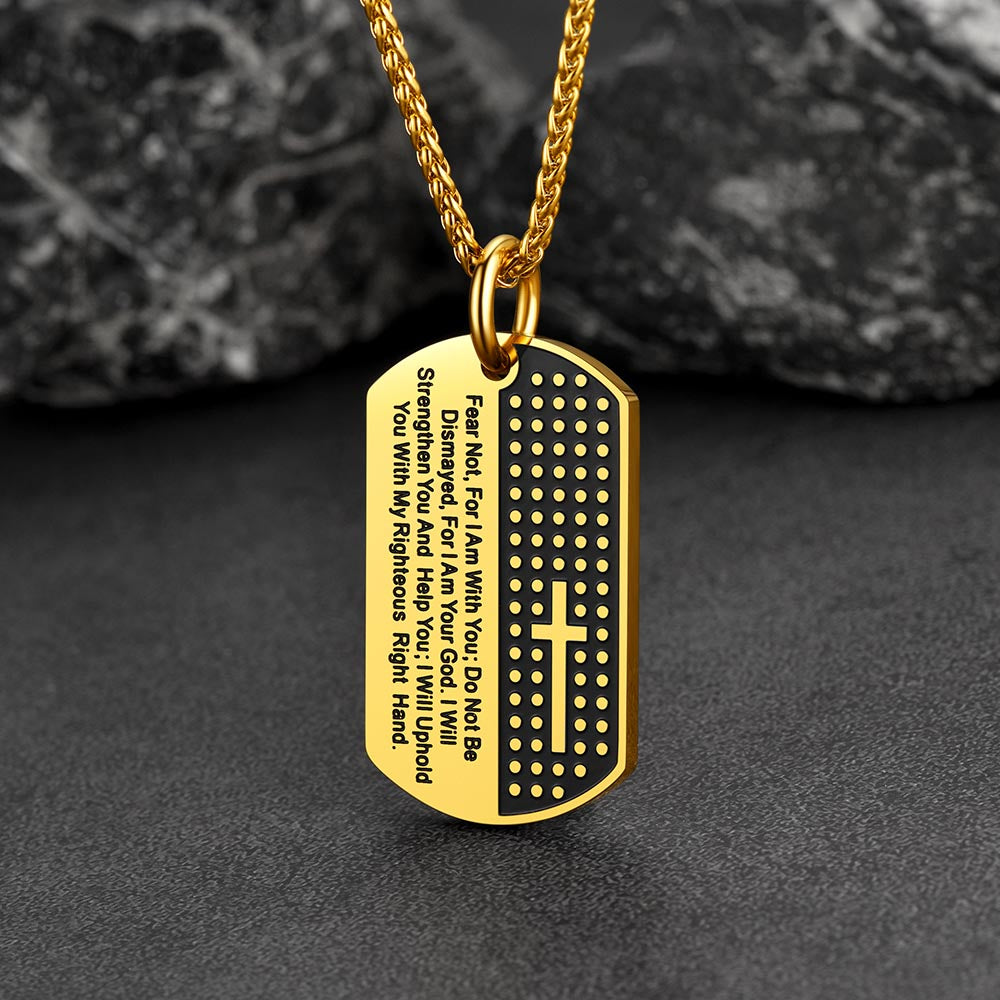 Colar com pingente de dog tag com versículo bíblico vintage, oração bíblica gravada e símbolo da cruz, colar religioso militar masculino com corrente de trigo redimensionável, hipoalergênico e confortável de usar. Vem em uma caixa de presente pronta para presentear, com uma bolsa preta. Presente perfeito para pai, irmão, namorado ou alguém importante para você em qualquer festival.