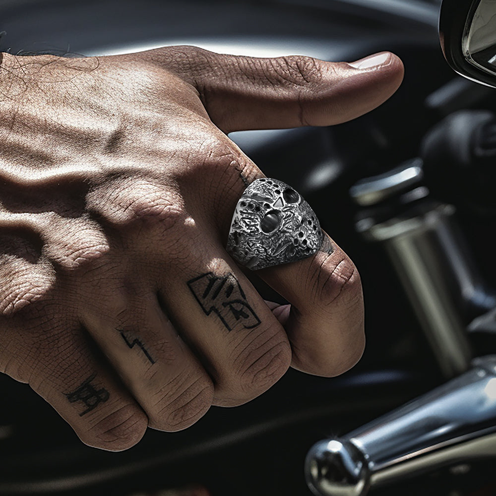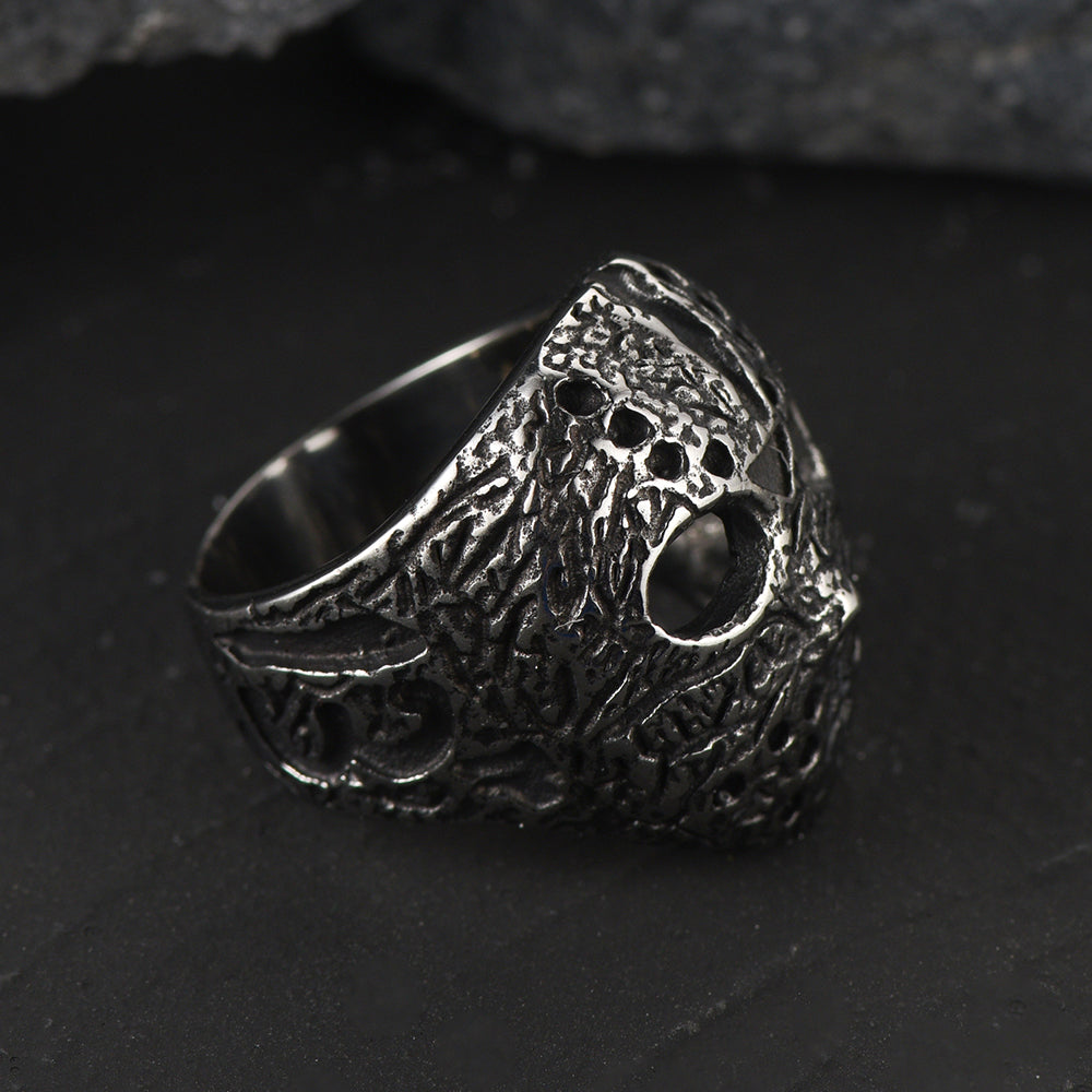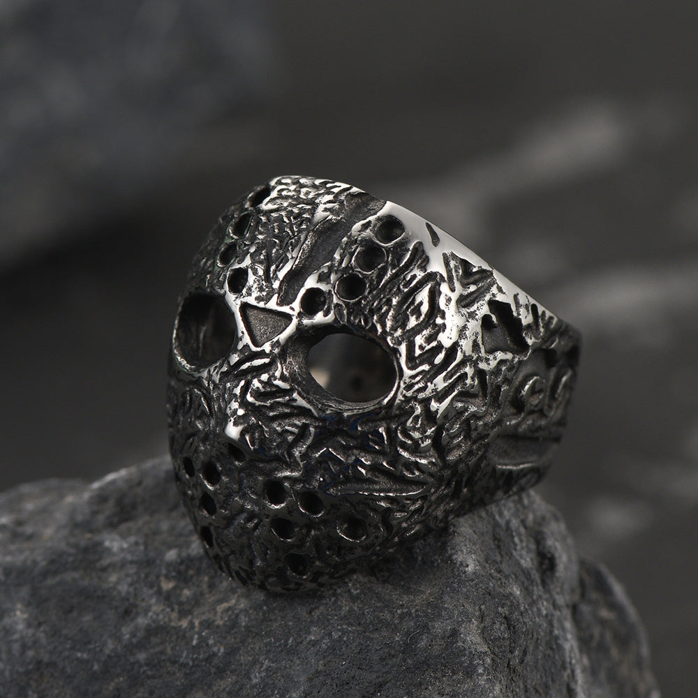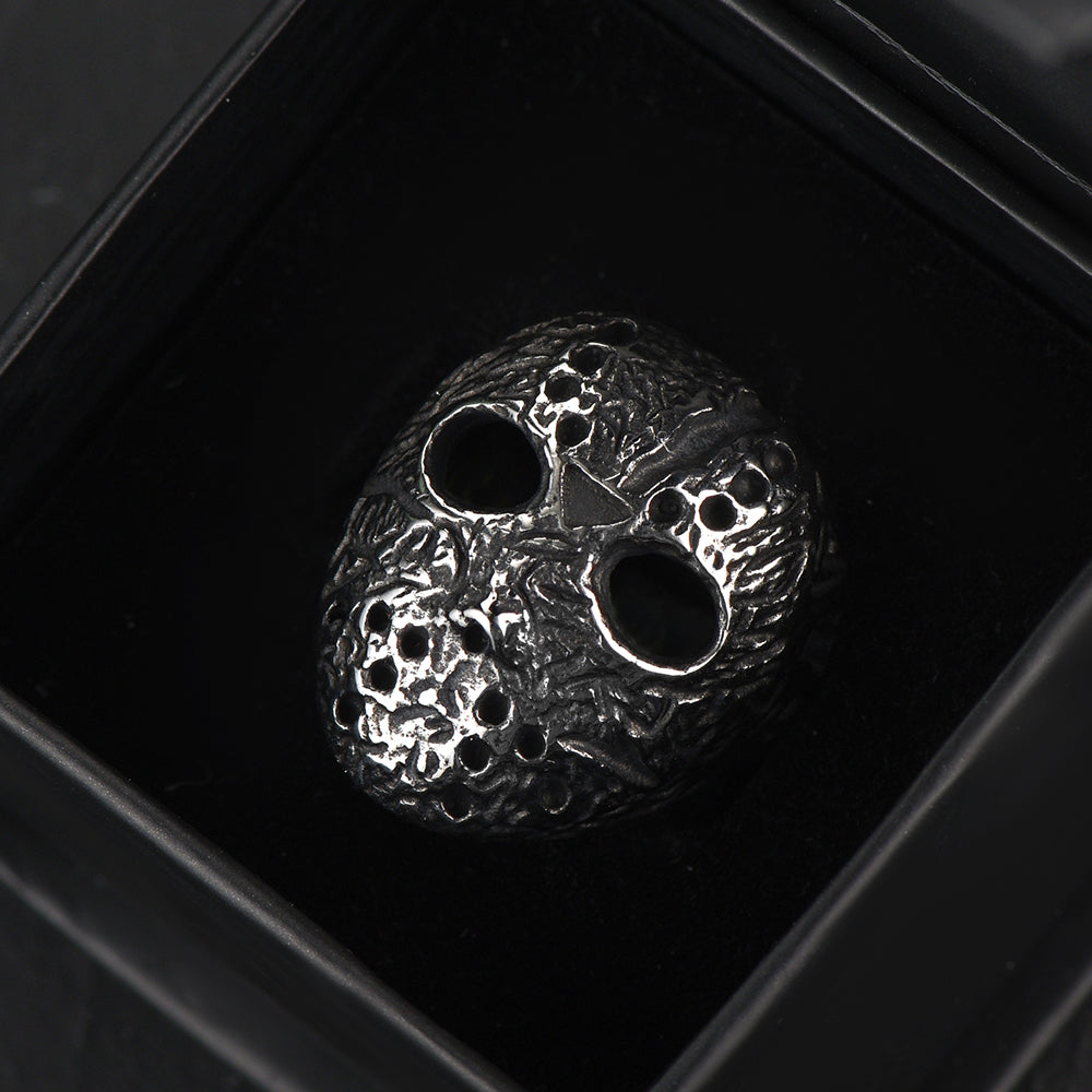 , um acessório ousado inspirado na icônica máscara slasher. Feito em aço inoxidável durável, este anel combina um toque gótico com um design ousado, simbolizando mistério e rebelião. Perfeito para o Halloween, festas temáticas ou para dar um toque marcante aos looks do dia a dia, é um item essencial para fãs de joias com inspiração gótica e de terror.