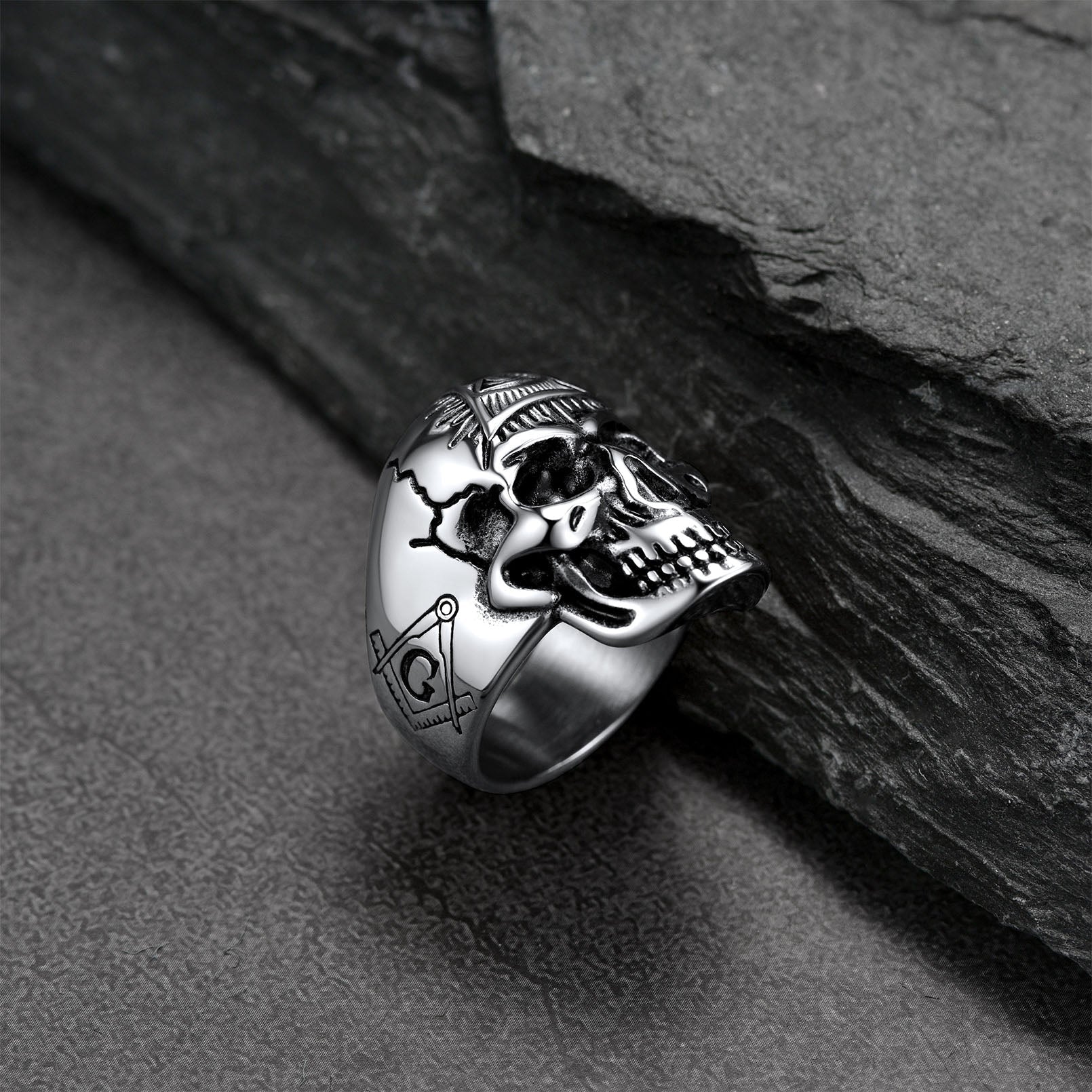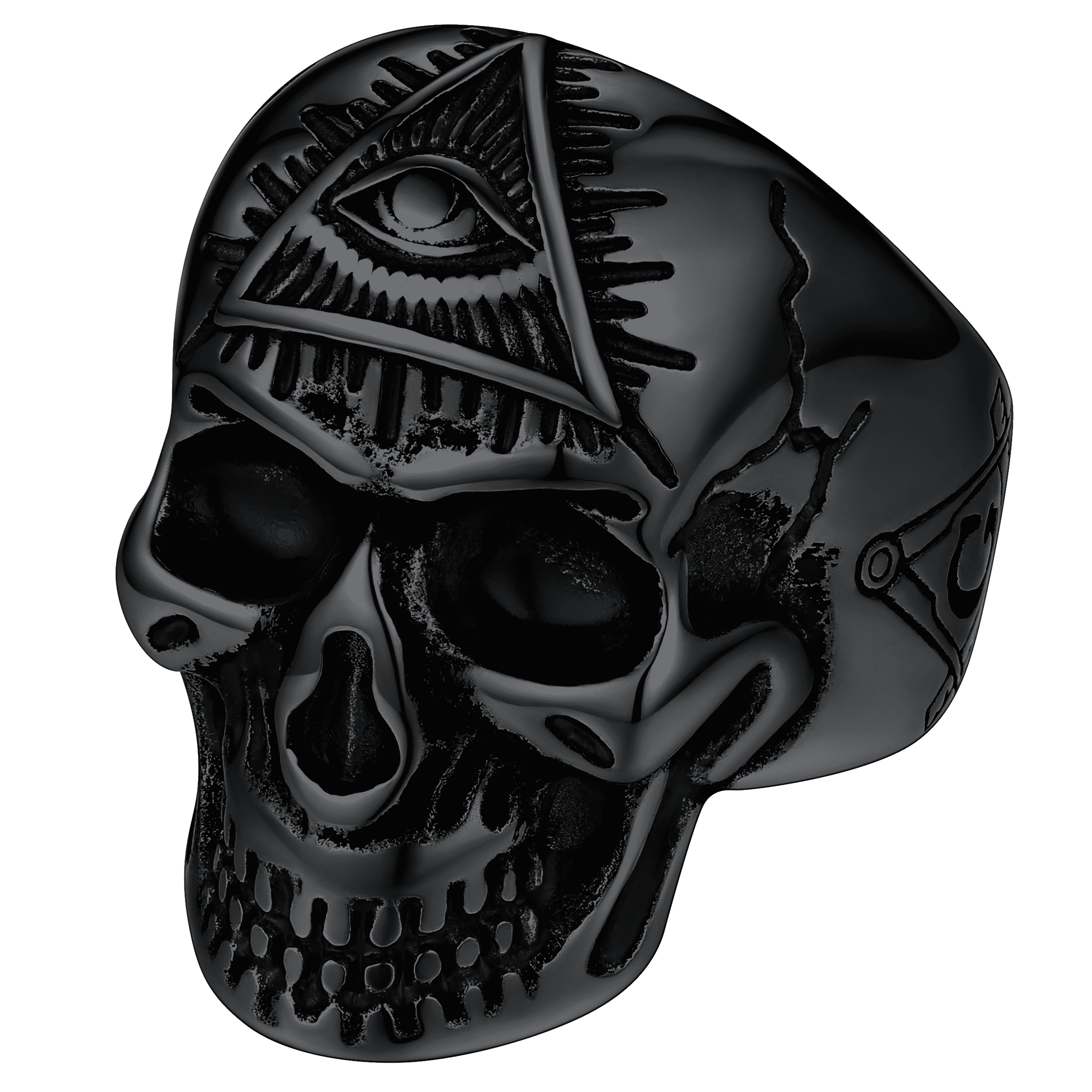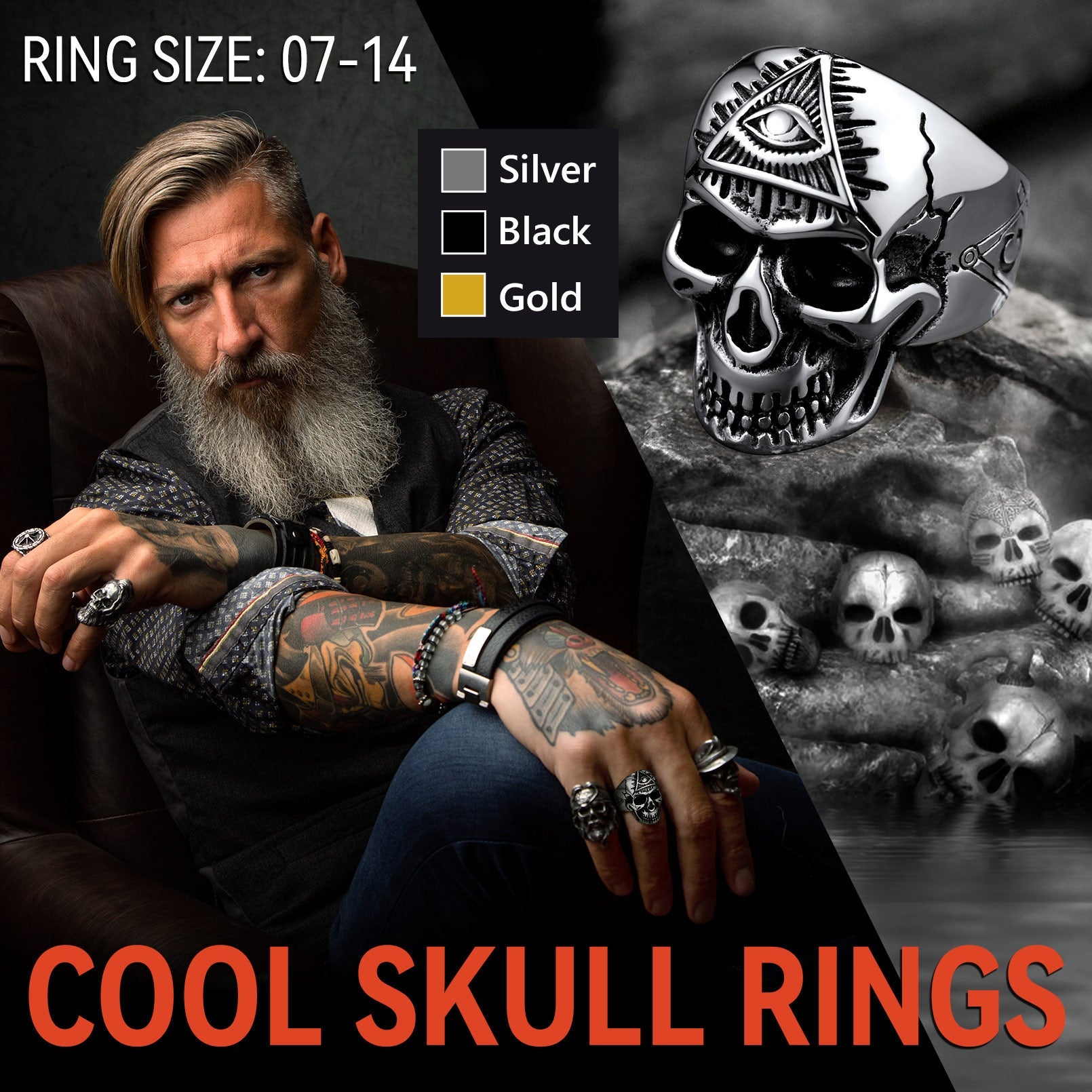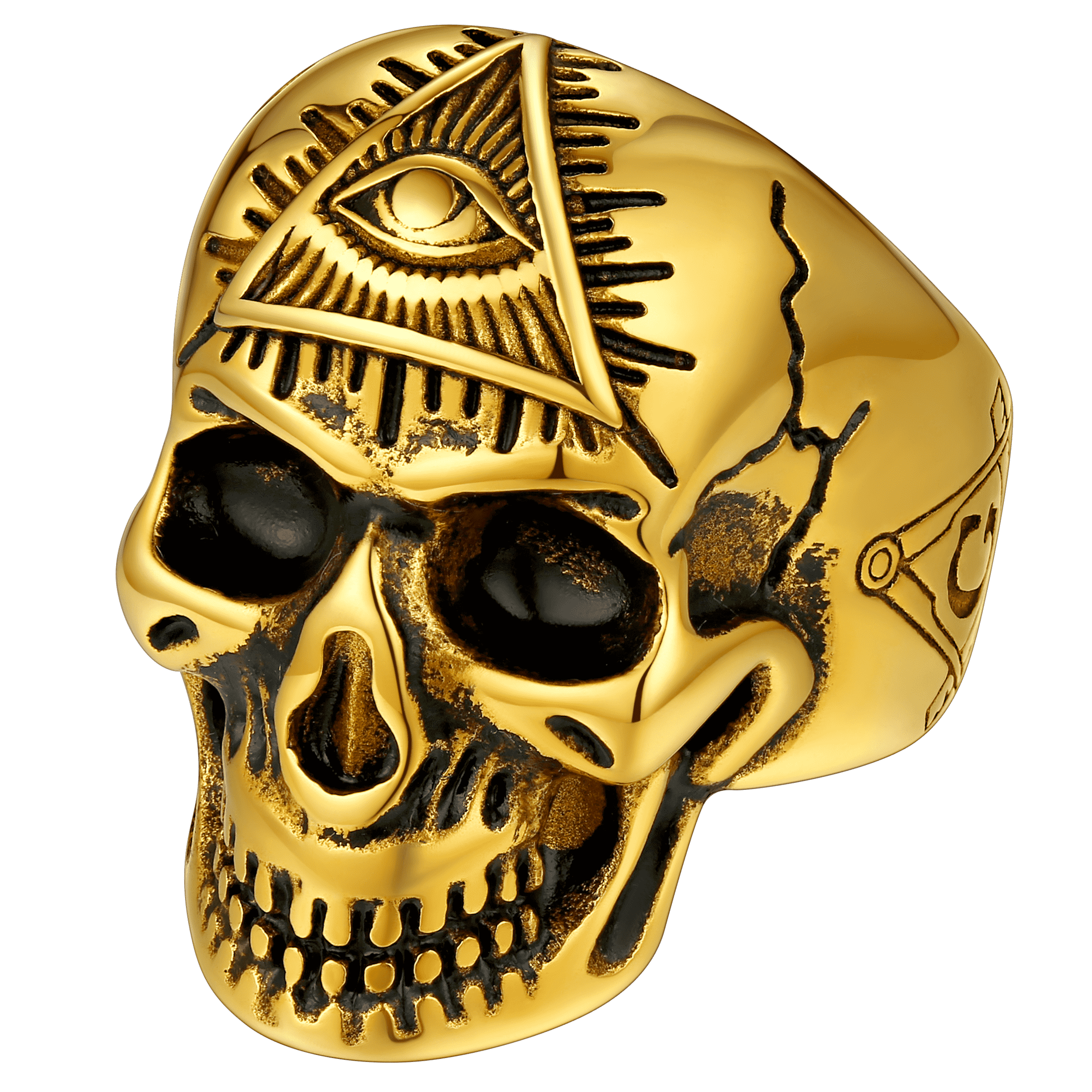 Anel de caveira com o Olho da Providência para homens, demonstre sua fé. O Olho da Providência, ou o Olho Que Tudo Vê de Deus, é um símbolo que representa o olhar de Deus zelando pela humanidade. Este anel de olho de esqueleto pode ser um presente perfeito para quem você ama.