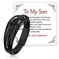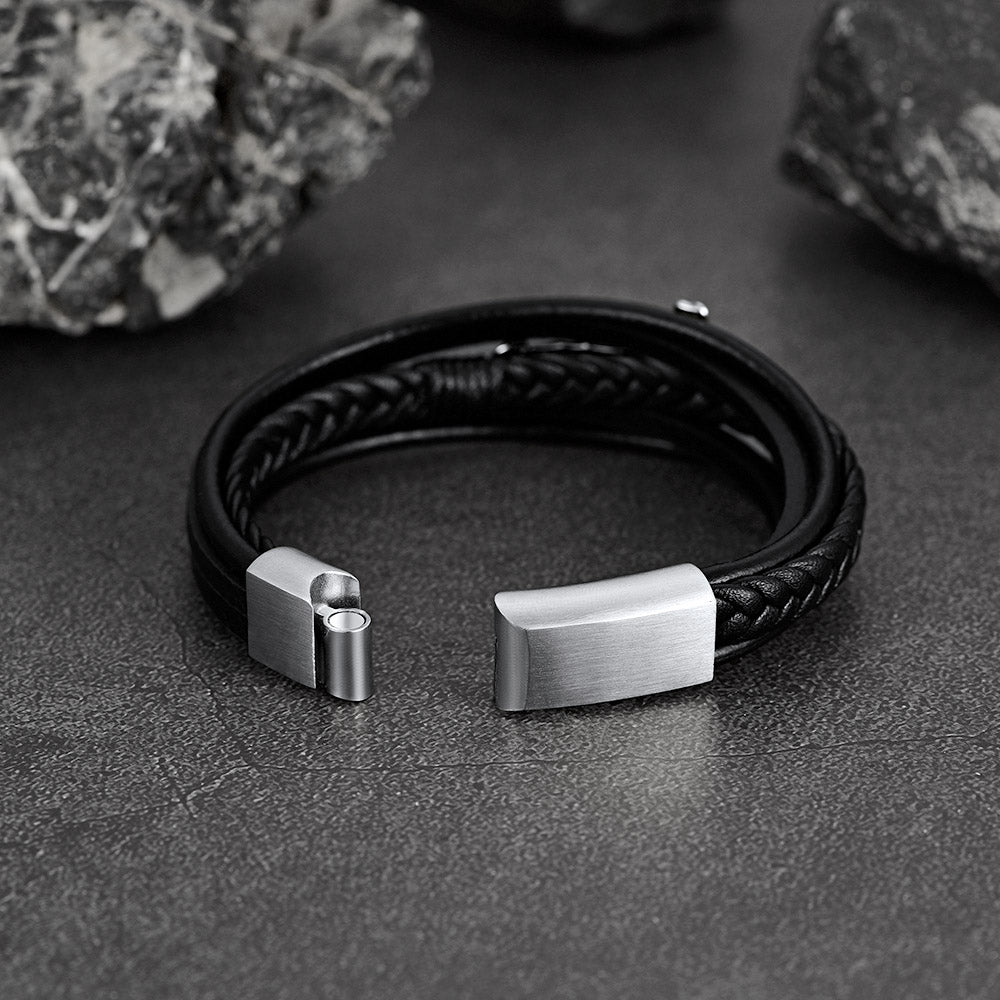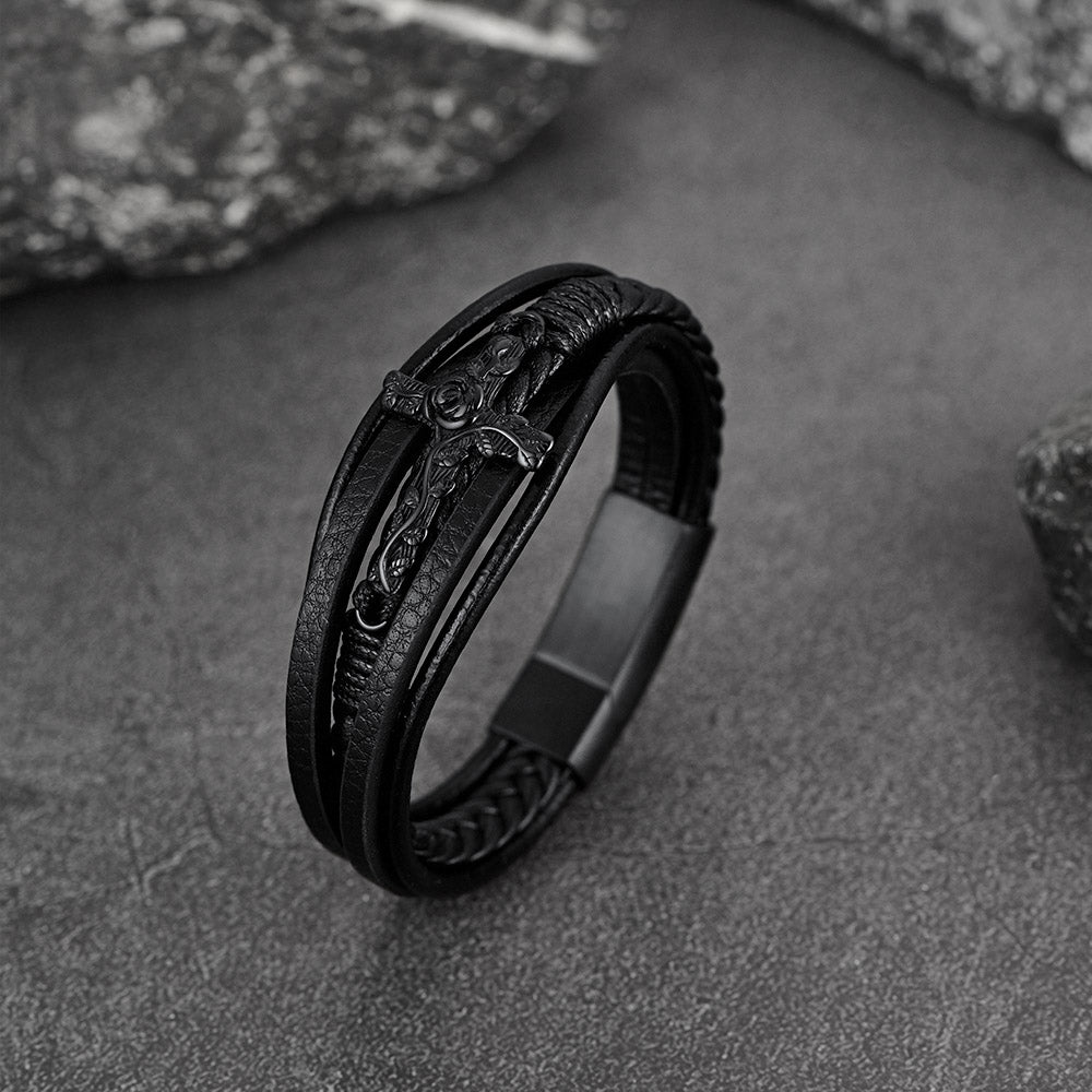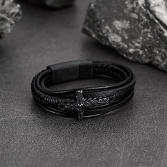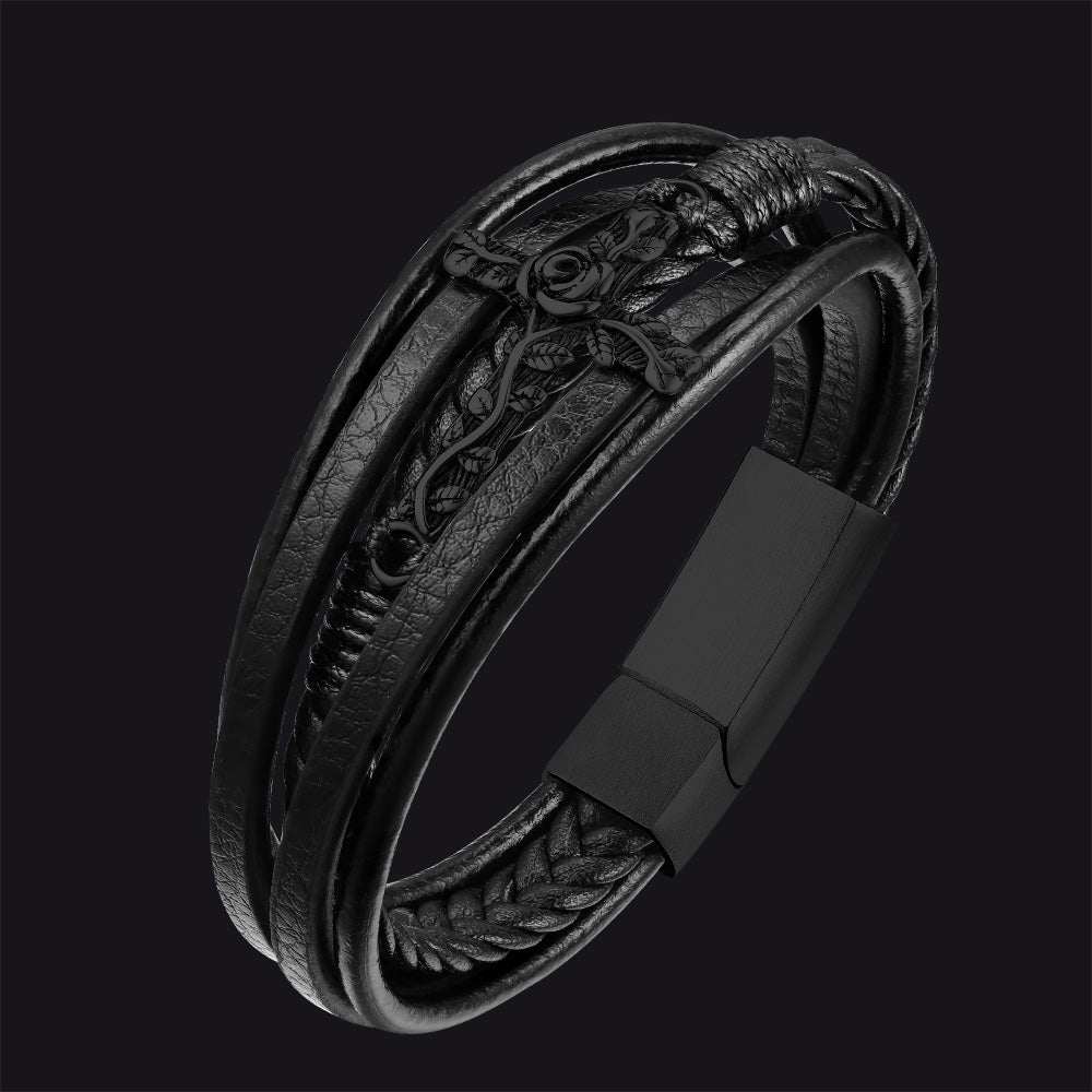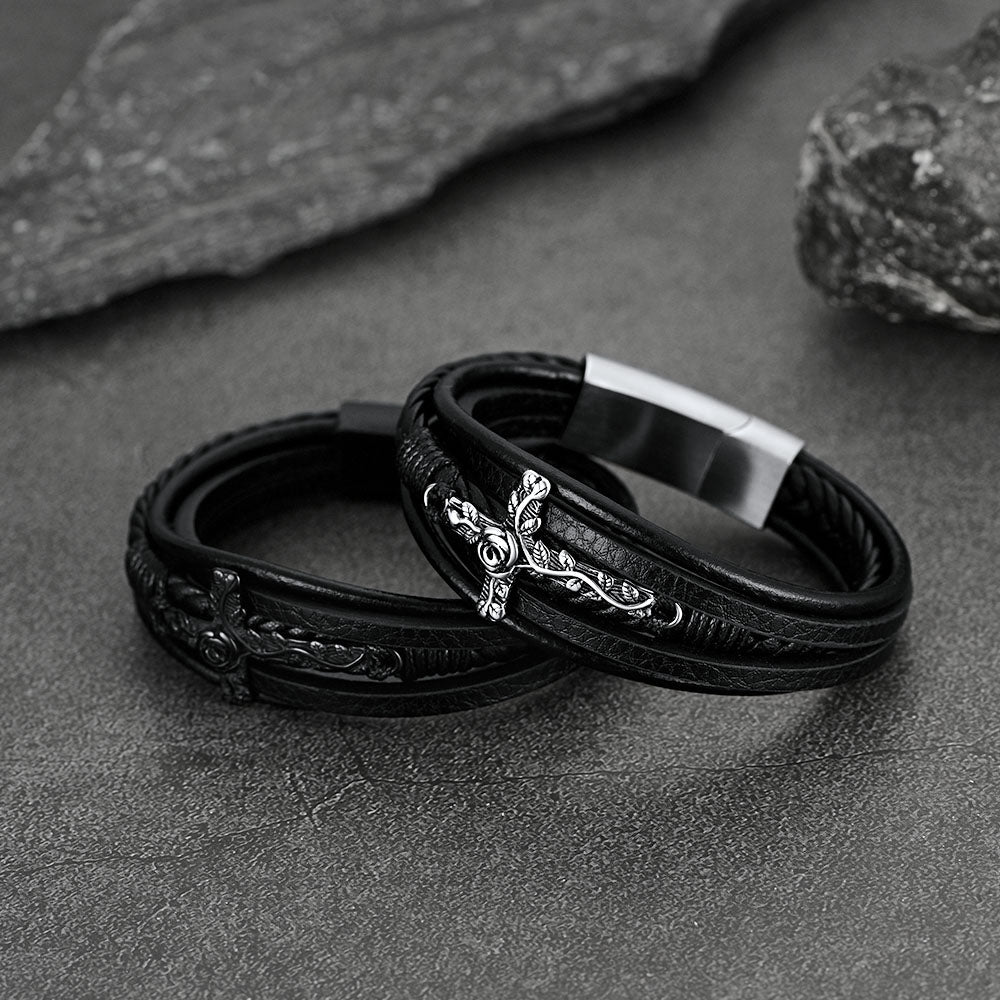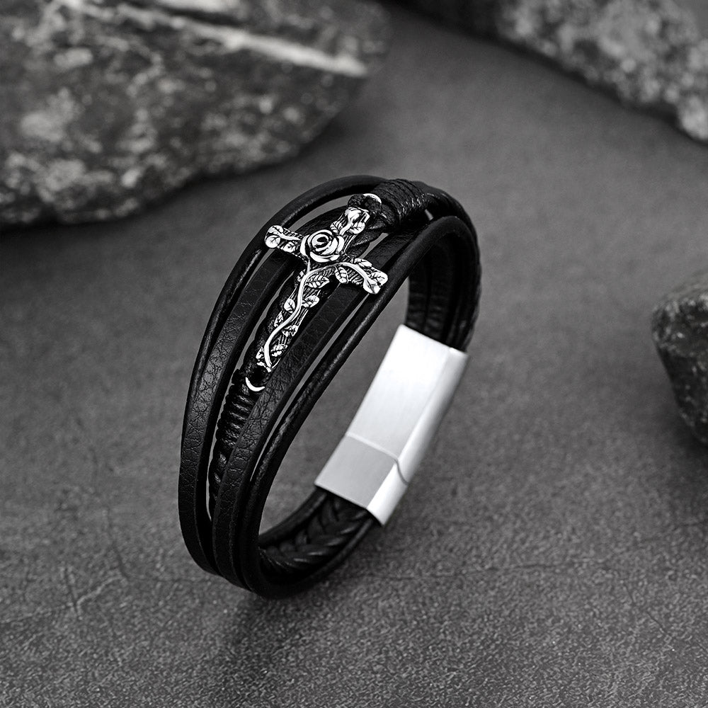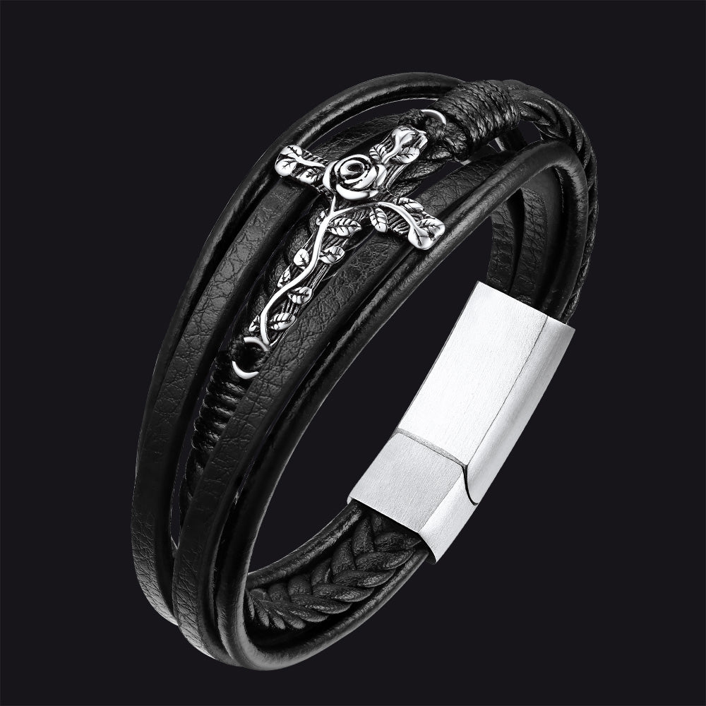 Esta pulseira de couro trançado com cruz de rosas é projetada com um fecho de aço inoxidável, fácil de colocar e tirar. É confortável no pulso e um acessório fantástico para homens. O couro masculino?