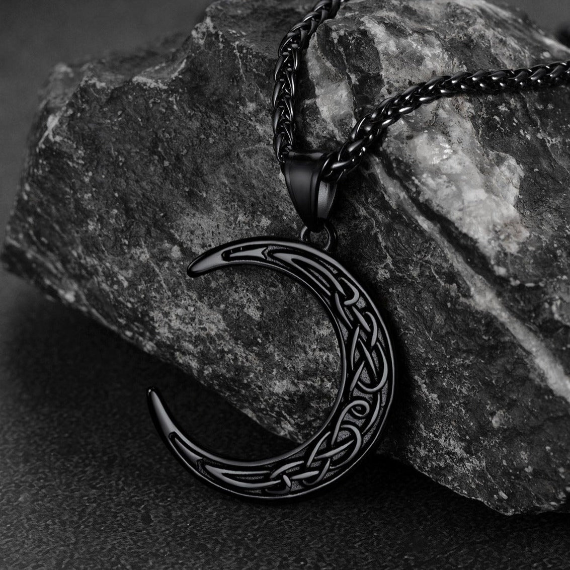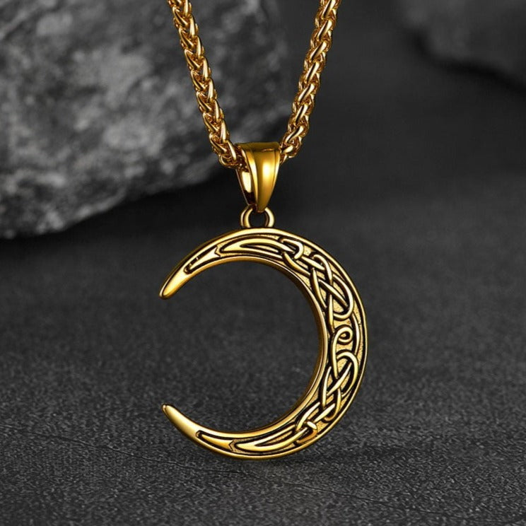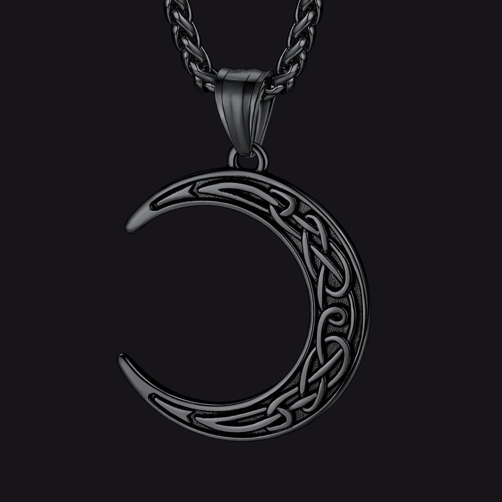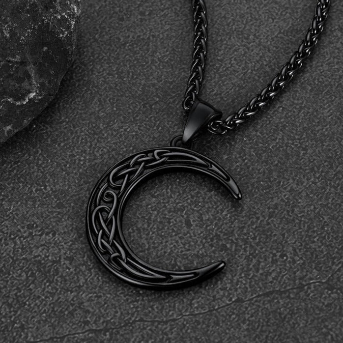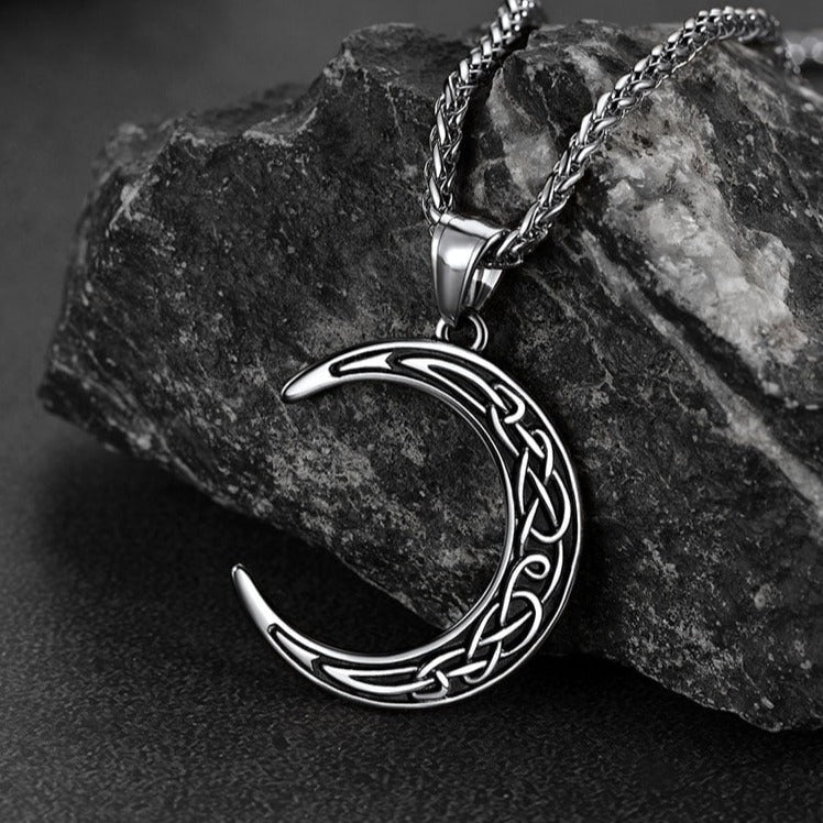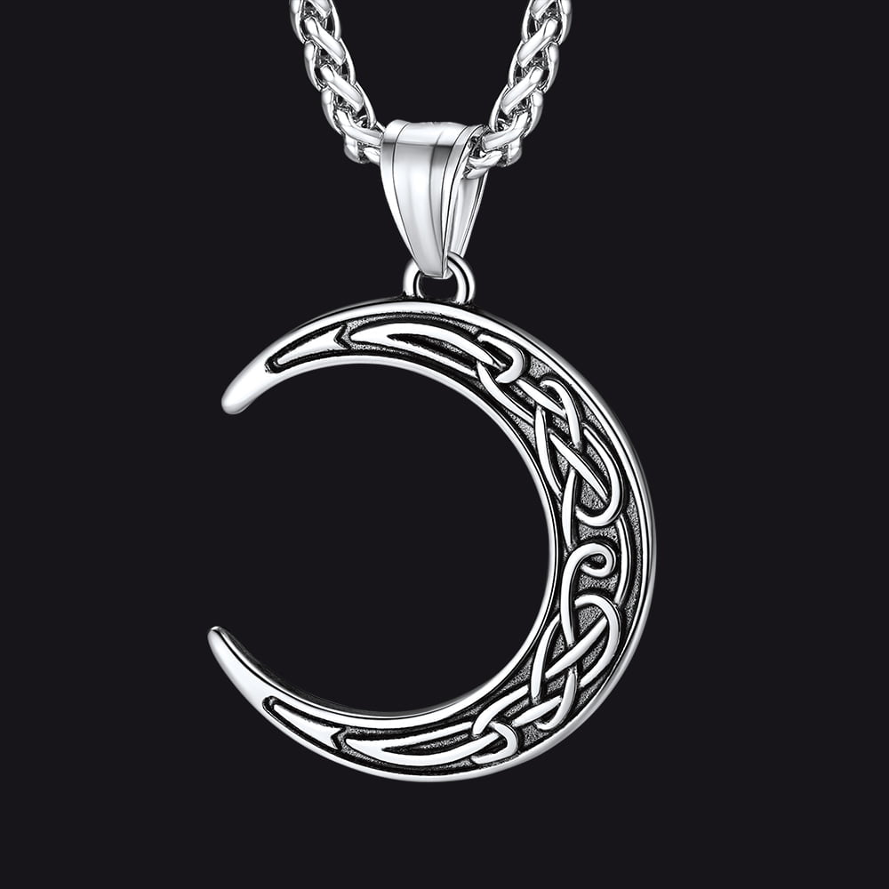 Elegante colar celta para homens/mulheres, com pingente de lua crescente, símbolo do ciclo da vida em constante mudança e repetição, com nós celtas decorativos. Design de colar de lua crescente para almas quebradas, ótimo acessório para homens/mulheres. Este colar de lua celta é feito de aço inoxidável 316L, hipoalergênico.