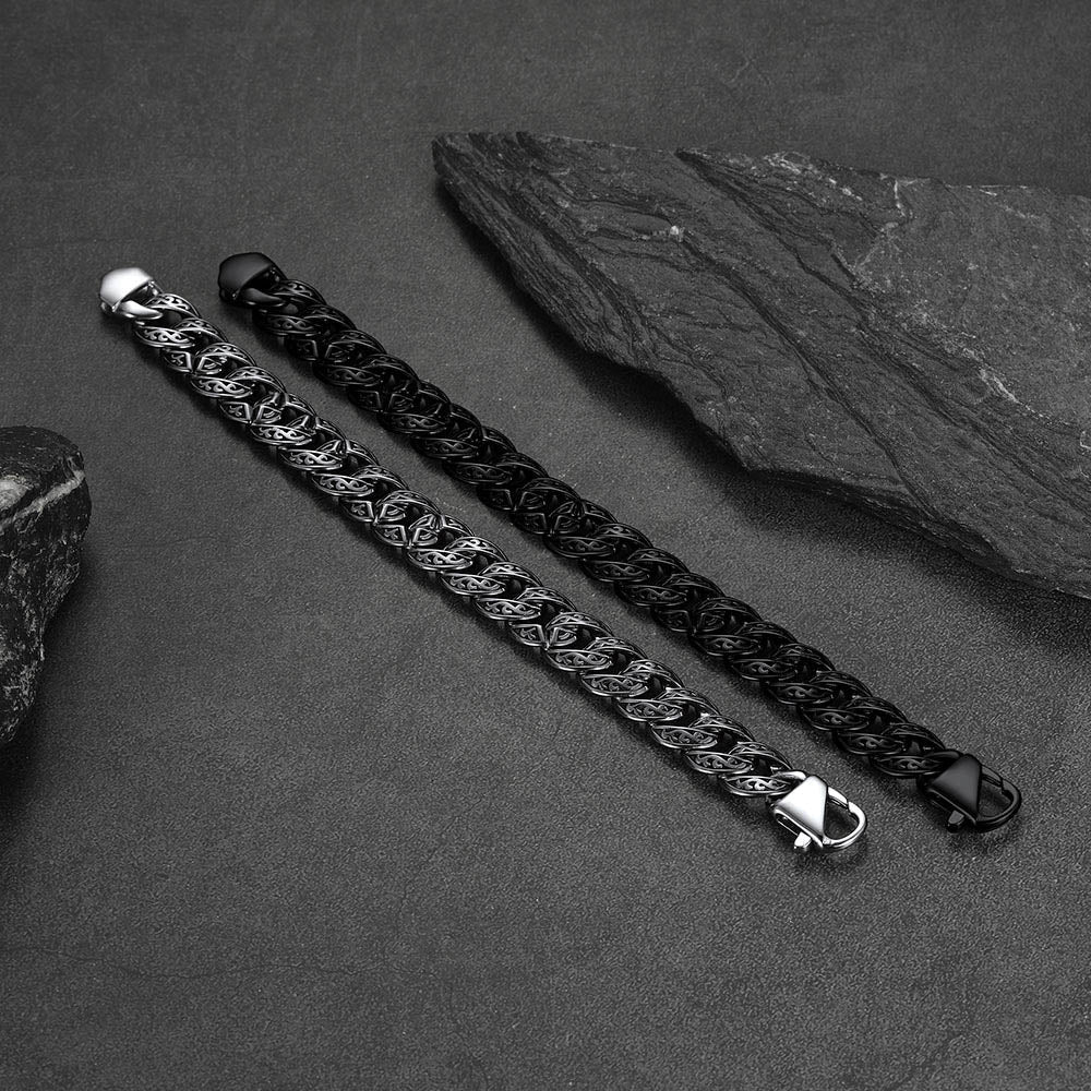 Pulseira de aço inoxidável para homens é inspirada na rica tapeçaria da história viking e no espírito indomável da cultura motociclista, com corrente cubana cheia de nós celtas e fecho de lagosta, em um estilo retrô estiloso, definitivamente atraente no pulso.