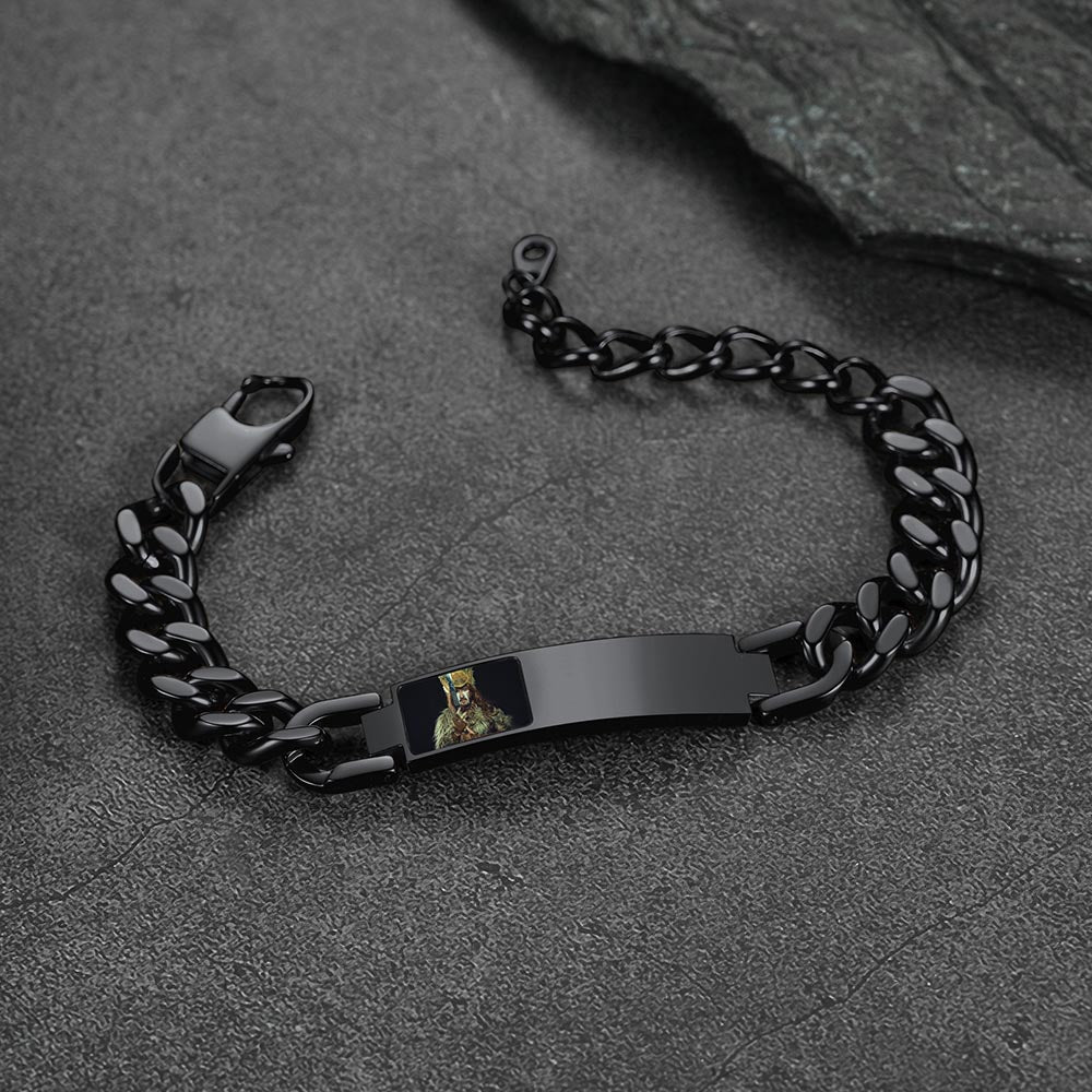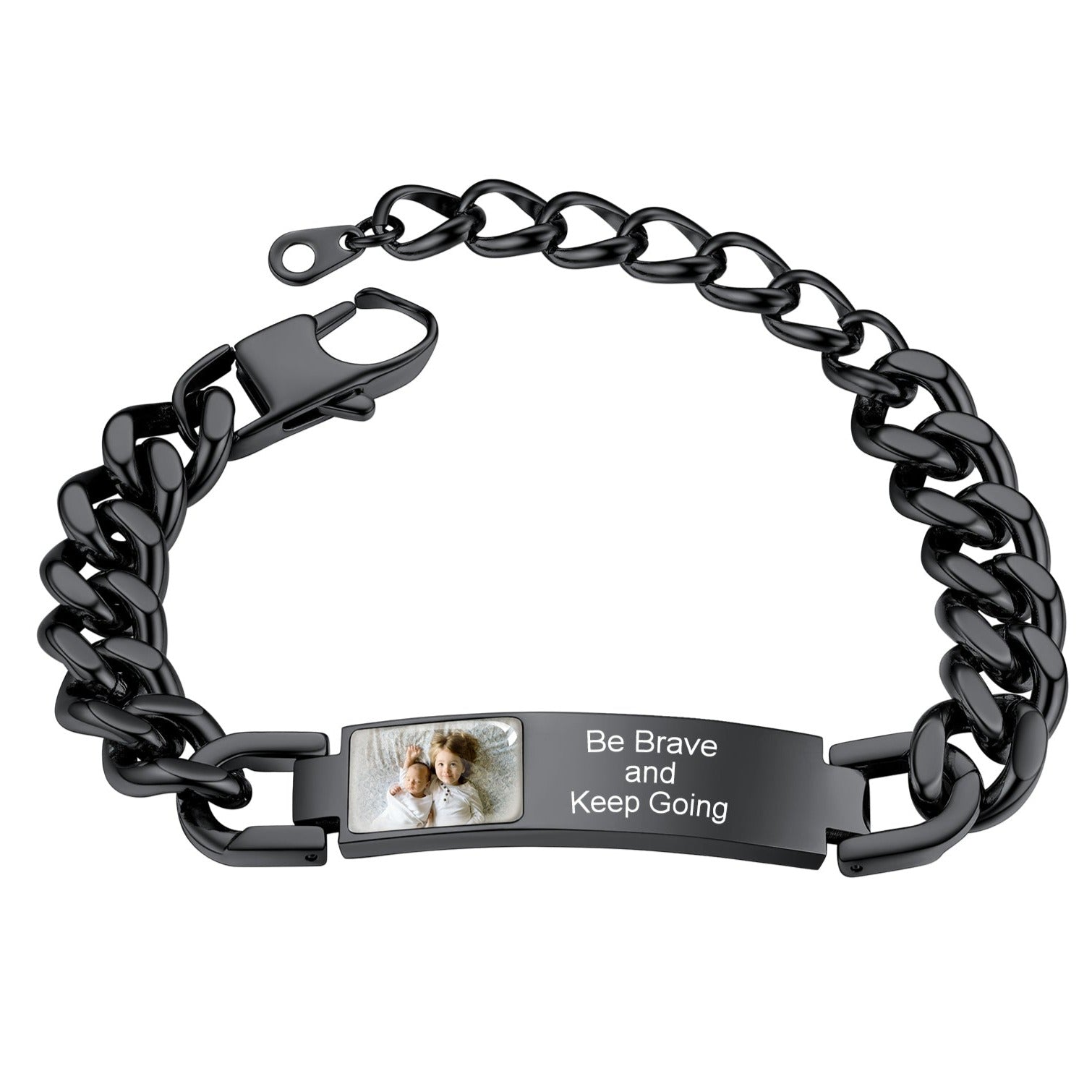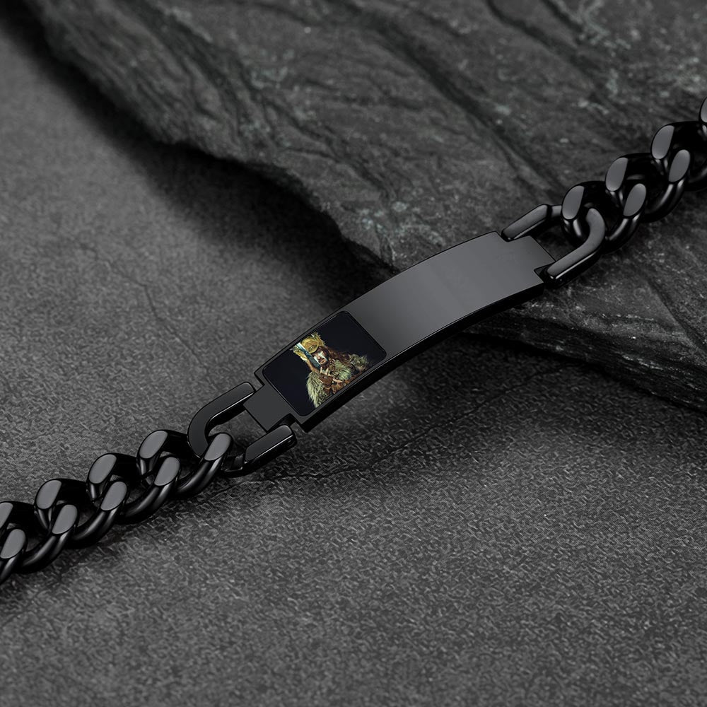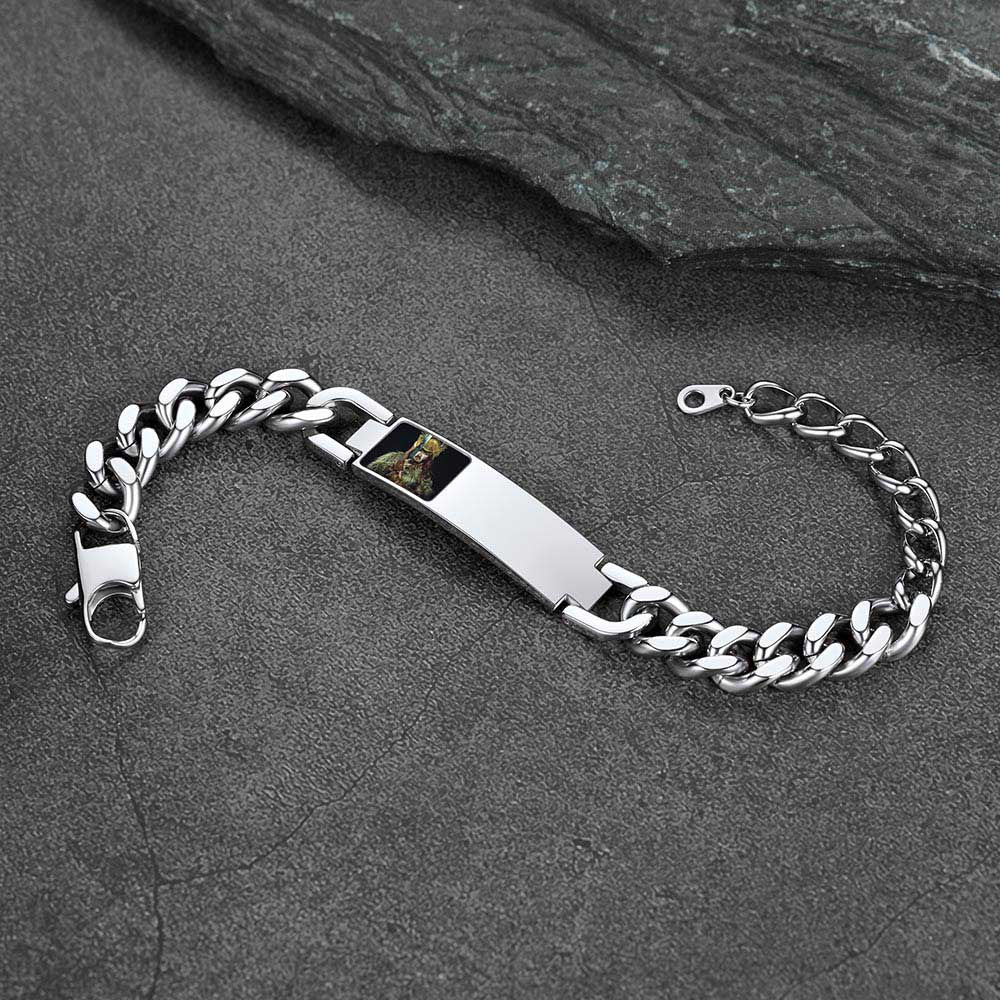 Pulseira de corrente cubana com foto e elos, ideal para presentes em diversas ocasiões. Grave palavras e imagens. Nossa gravação precisa à máquina garante que sua mensagem seja exibida com perfeição.