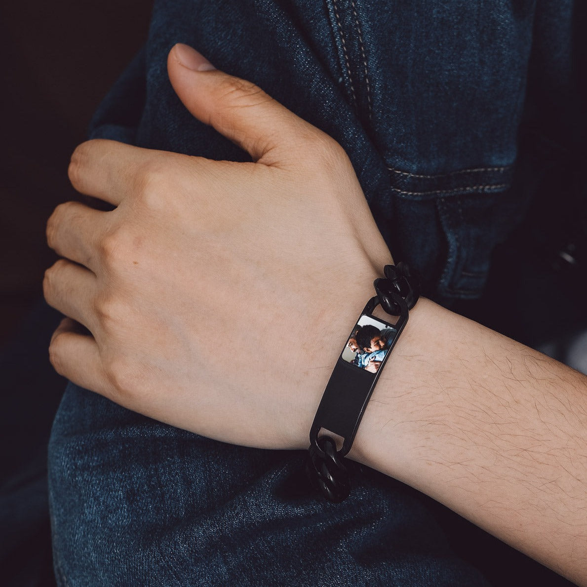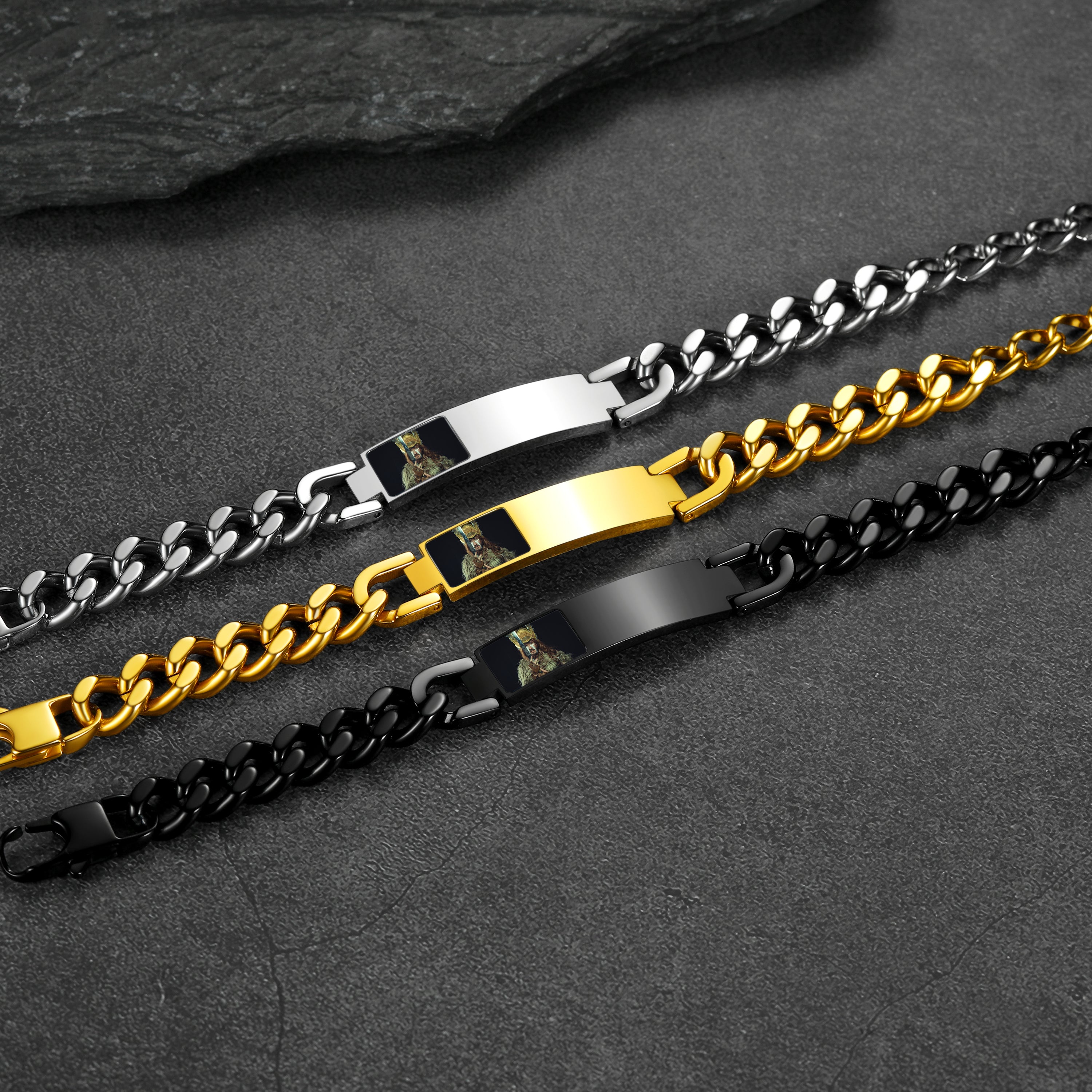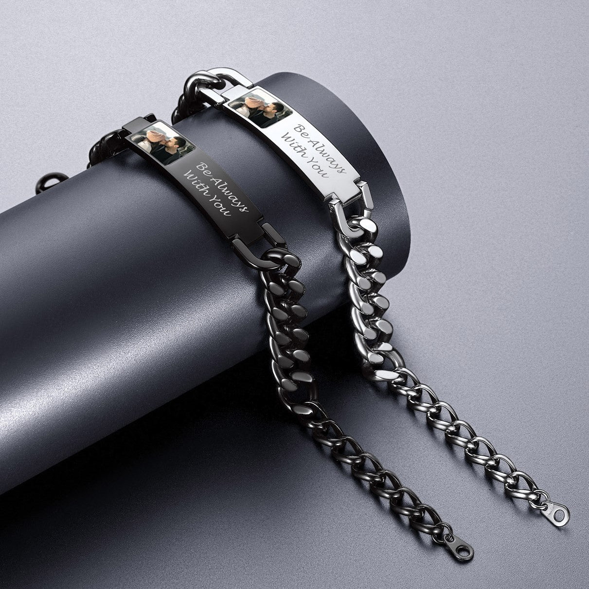 Pulseira de corrente cubana com foto e elos, ideal para presentes em diversas ocasiões. Grave palavras e imagens. Nossa gravação precisa à máquina garante que sua mensagem seja exibida com perfeição.