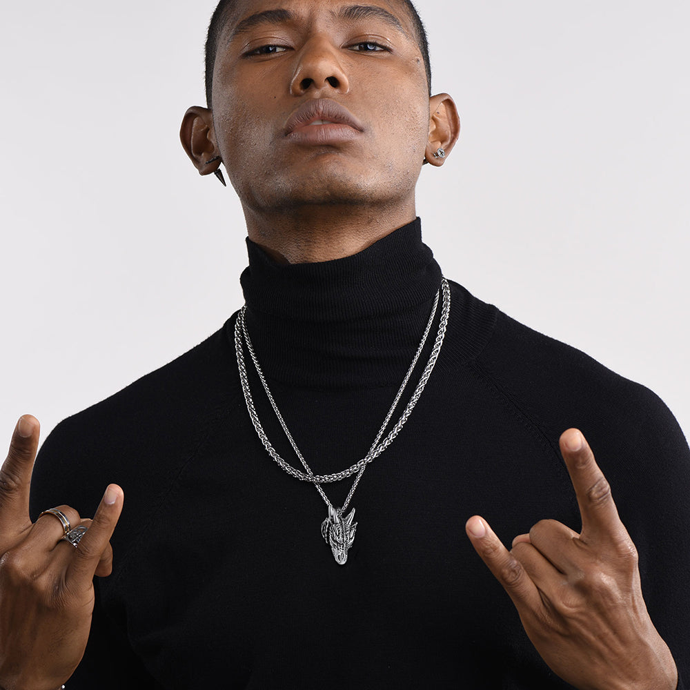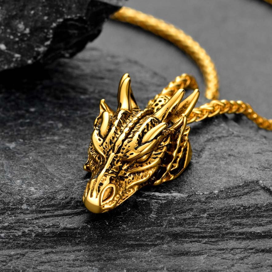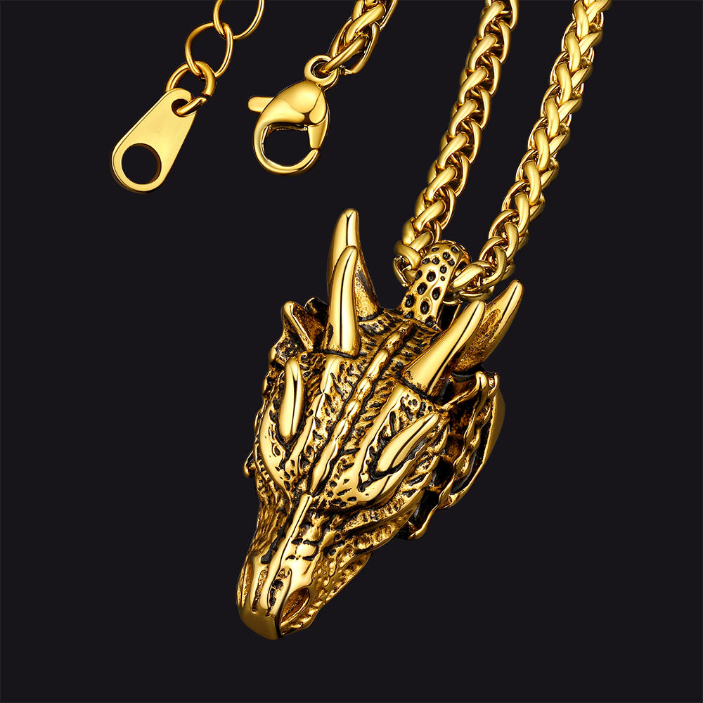 Nosso deslumbrante colar de dragão exibirá seu estilo onde quer que você vá e certamente fará você se destacar da multidão da melhor maneira possível. Adquira esta encantadora joia com cabeça de dragão para você ou para quem você ama como um presente único de Dia dos Namorados, Natal, aniversário ou data comemorativa.