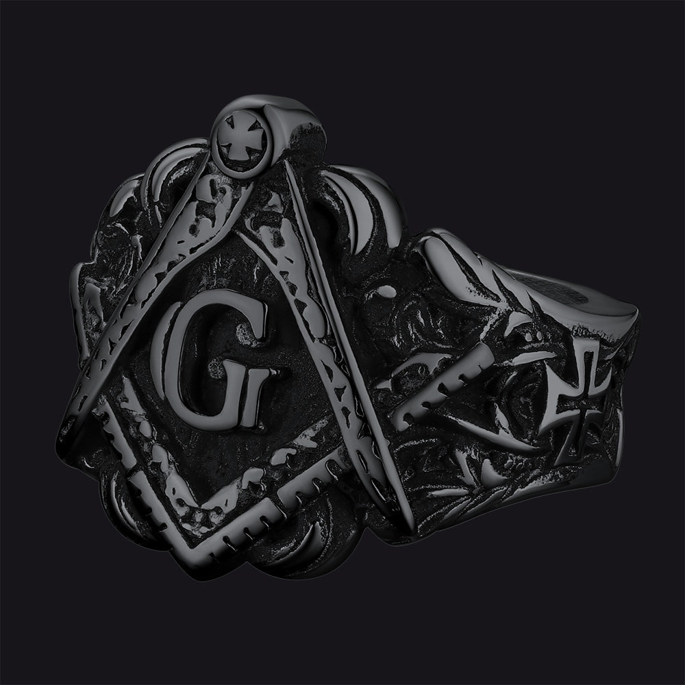 Este anel é um símbolo da misteriosa e antiga organização da Maçonaria, incluindo a bússola, a regra e o código. Representa a busca pelo conhecimento, pela sabedoria e pelo estabelecimento de um governo unificado.