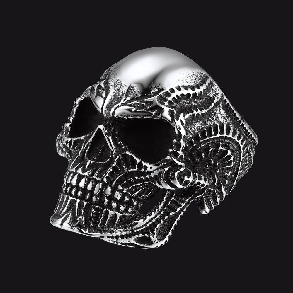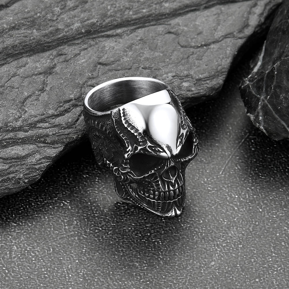 O design do anel de caveira gótica incorpora um espírito ousado e rebelde, tornando-o perfeito para quem adota um estilo motociclista ou alternativo. A caveira é visualmente marcante e carrega conotações de mortalidade, força e individualidade.