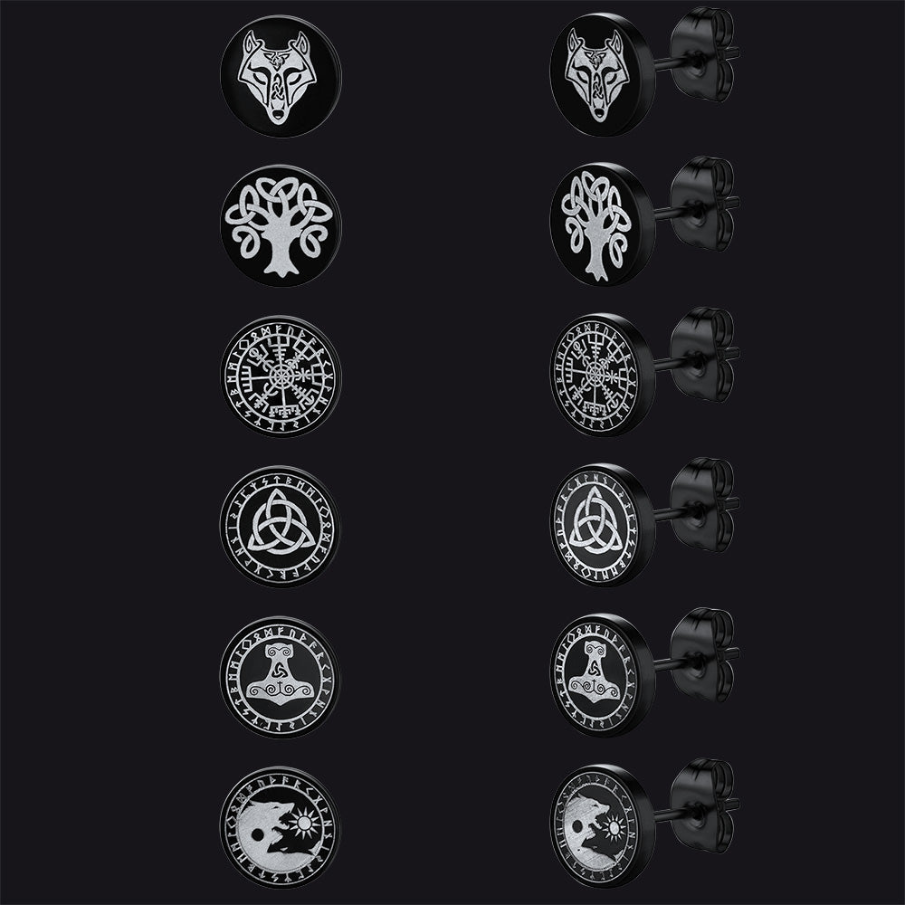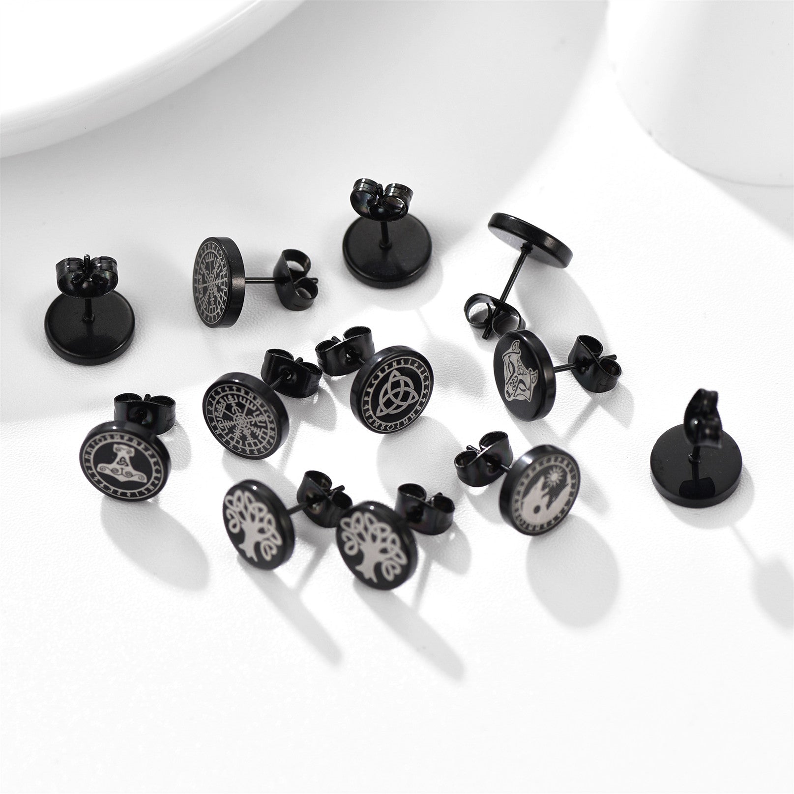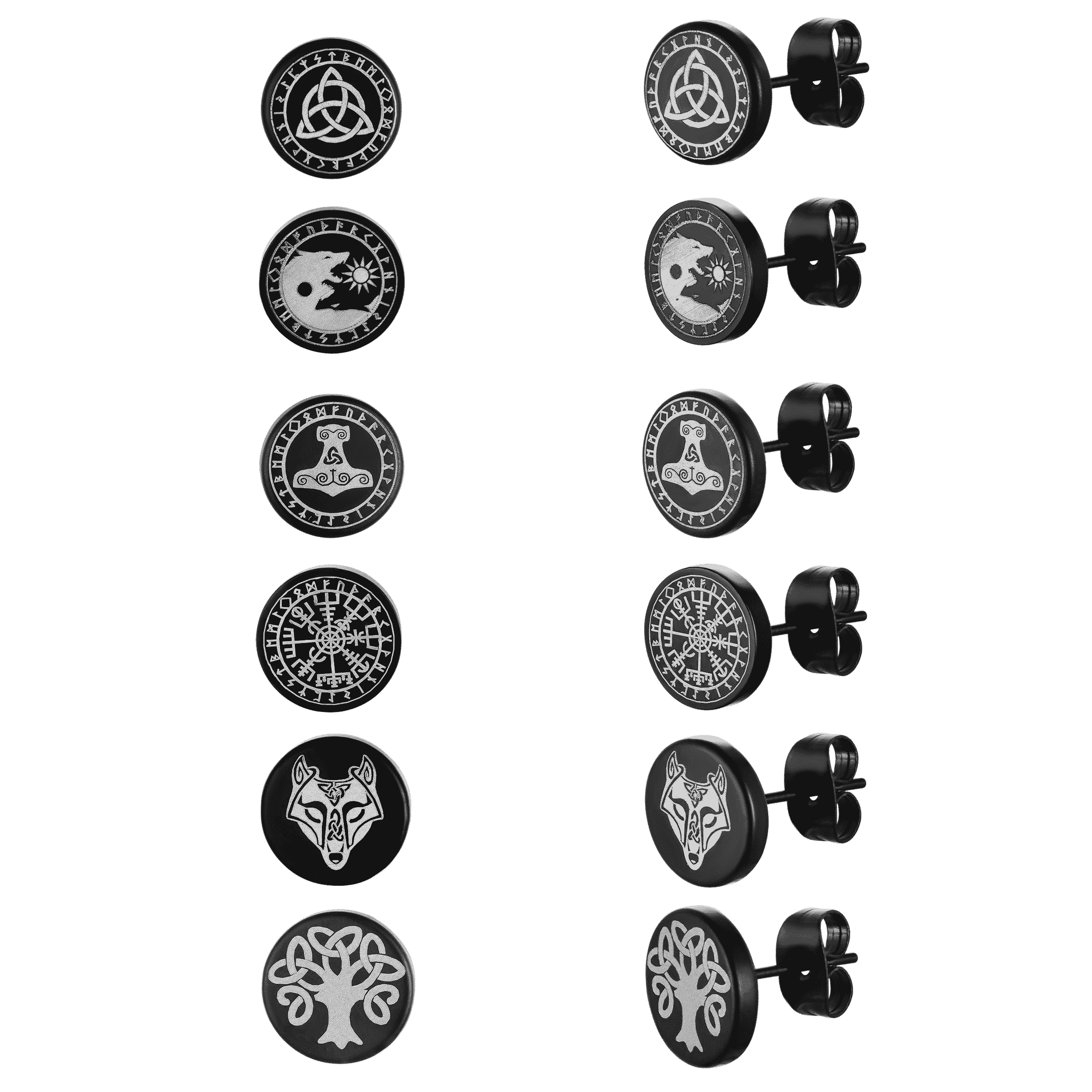 Conjunto de brincos Viking Rune Viking pretos para homens, 6 pares