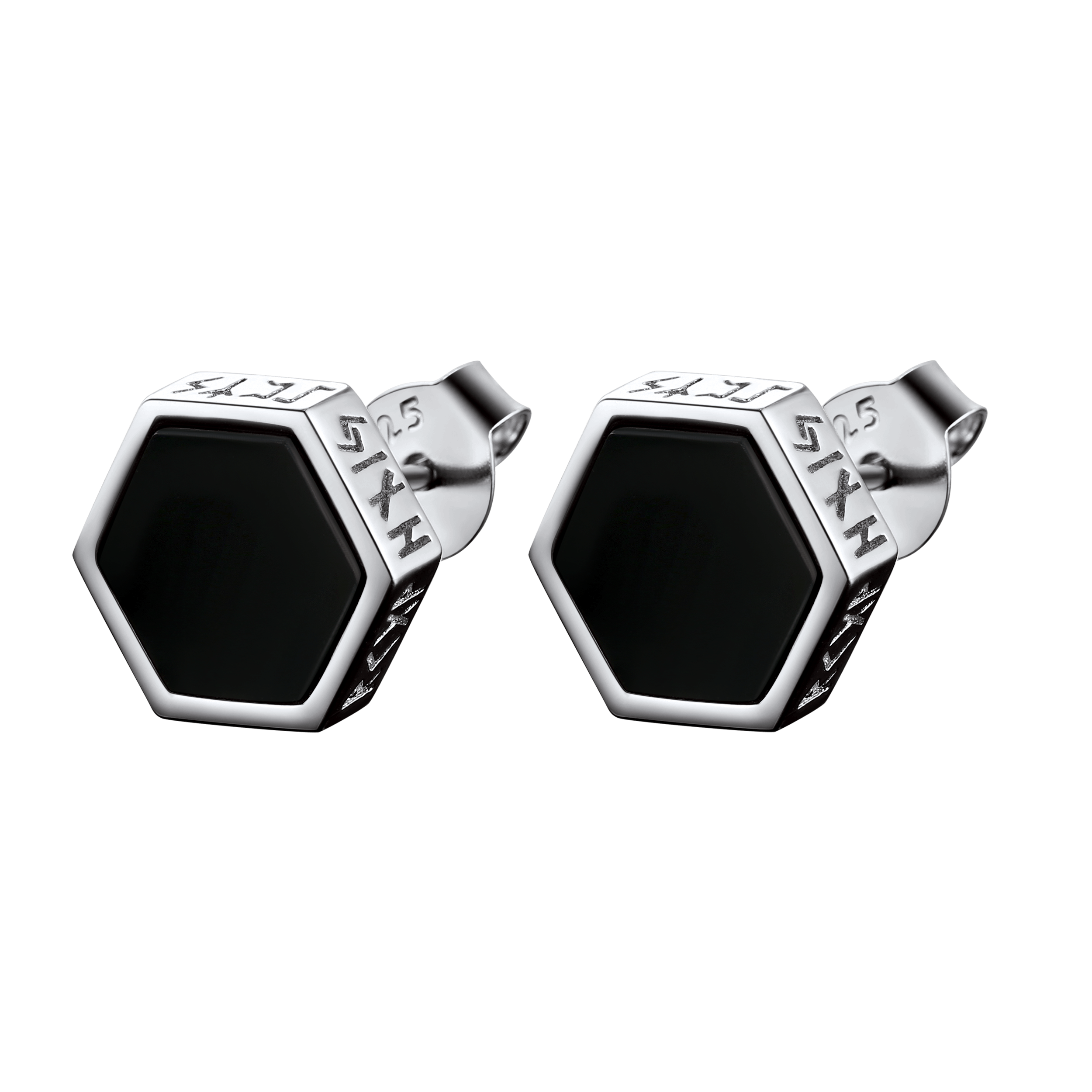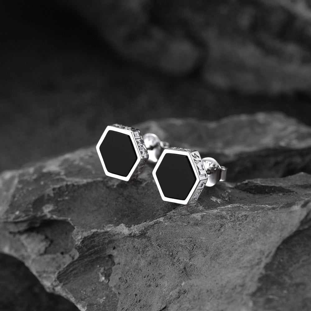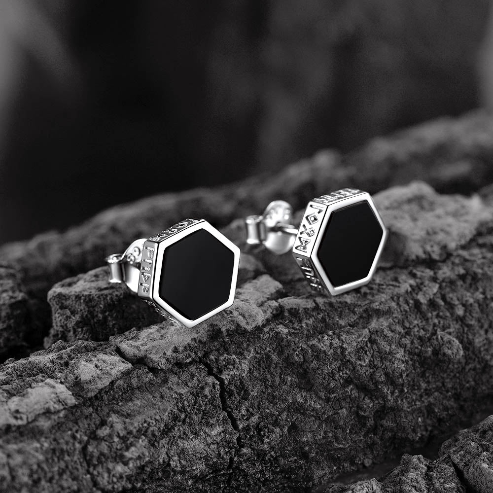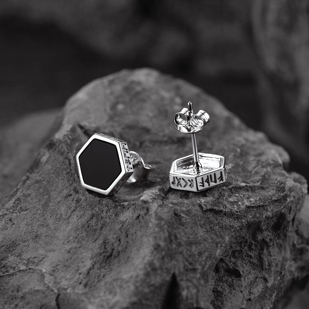 Brincos de pino Viking Rune Hexagon Black Onyx para homens