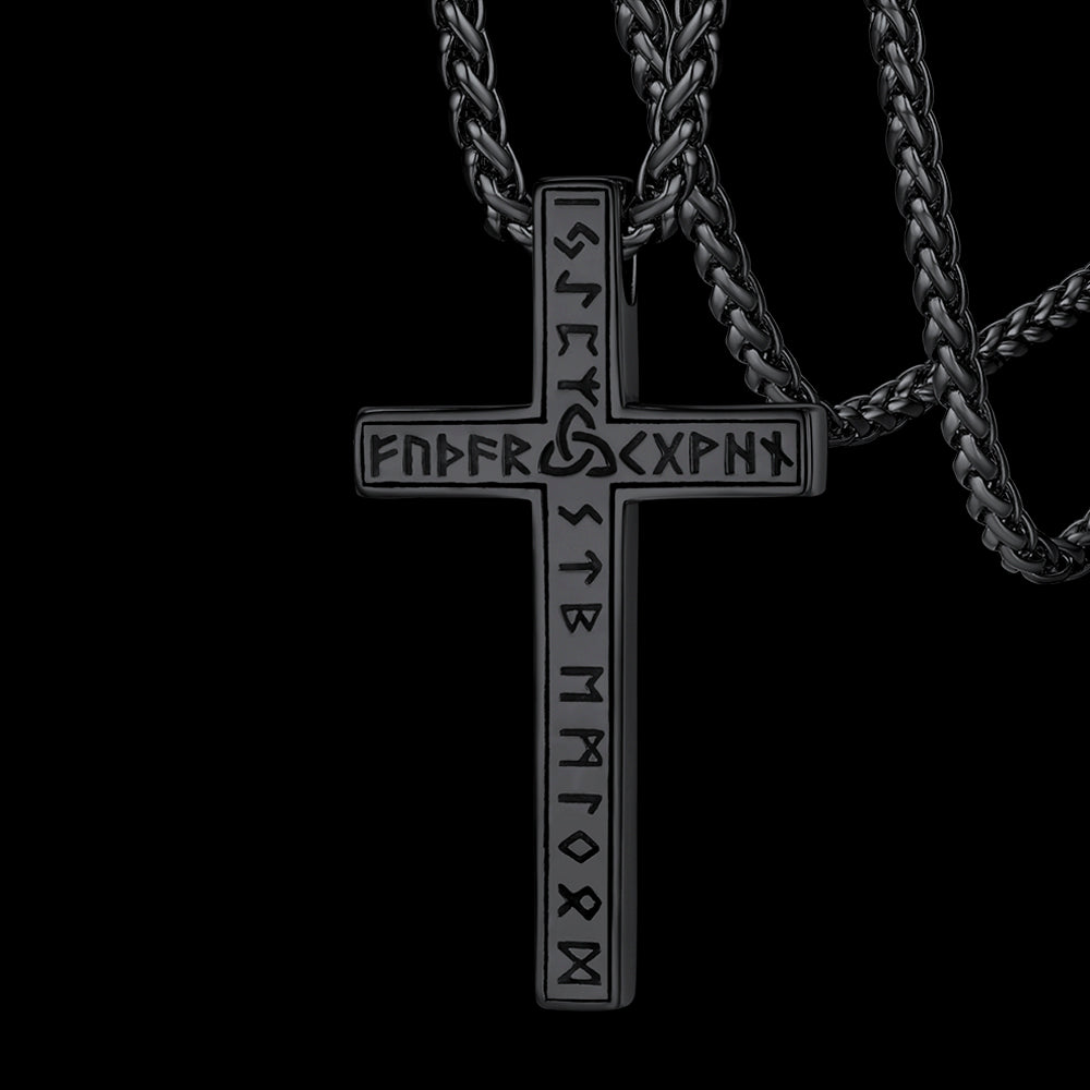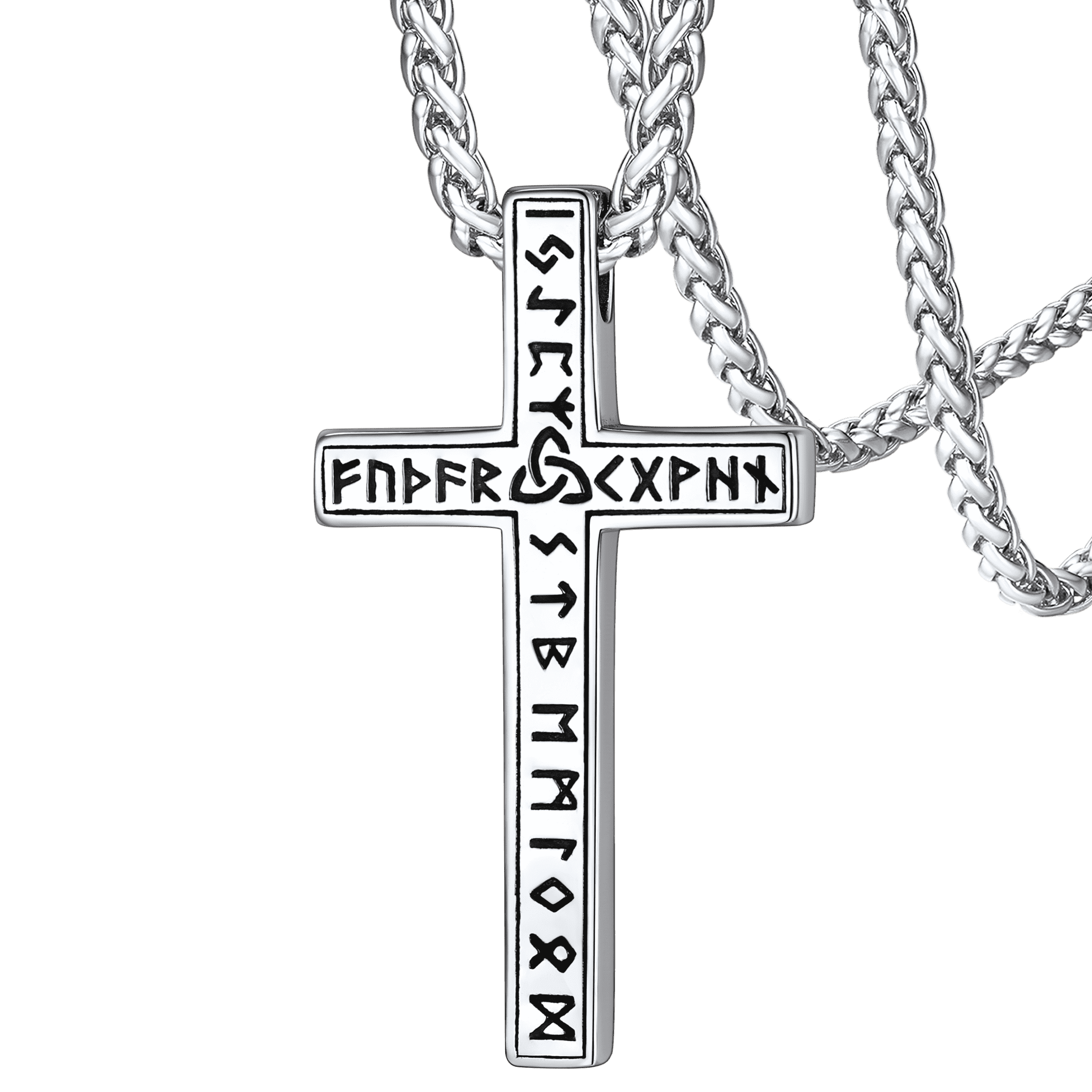 Colar com pingente de cruz com runas vikings FaithHeart, para homens ou mulheres, que confere força e proteção a quem as usa. As runas, como símbolo mágico, eram usadas pelos povos primitivos na Europa e na América para orar pelo bem, buscar a boa sorte, evitar o mal e realizar seus desejos.