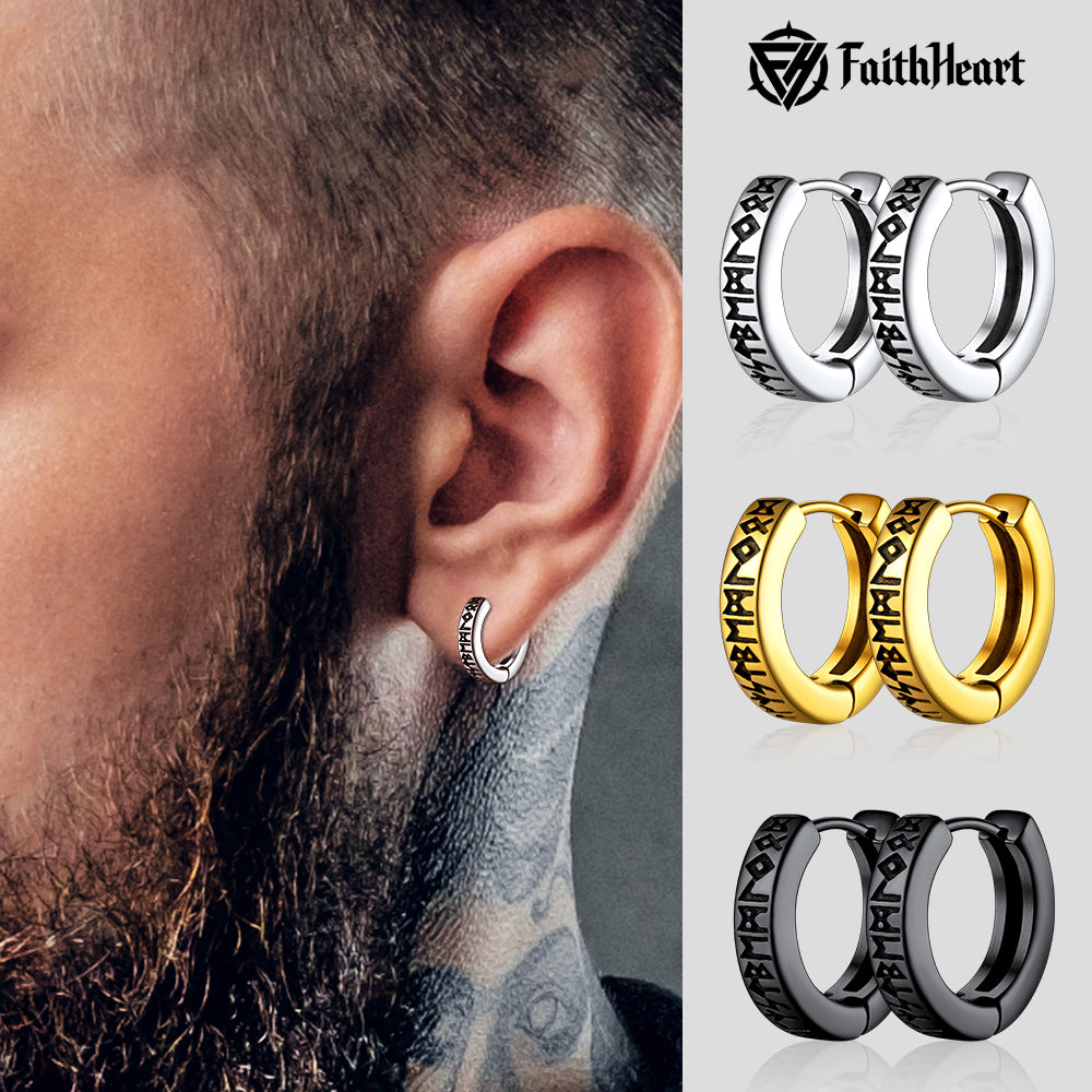 Brincos de argola pendentes com runas vikings nórdicas para homens