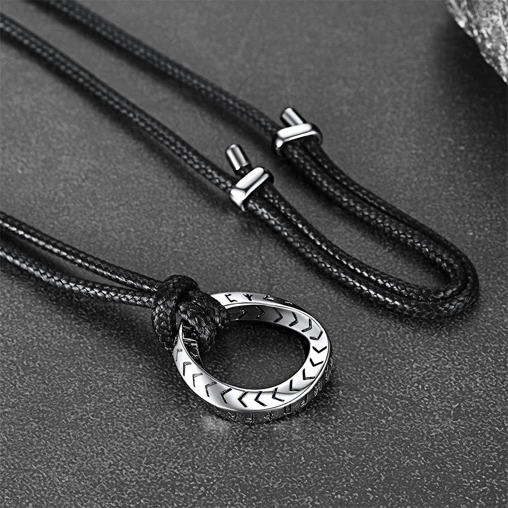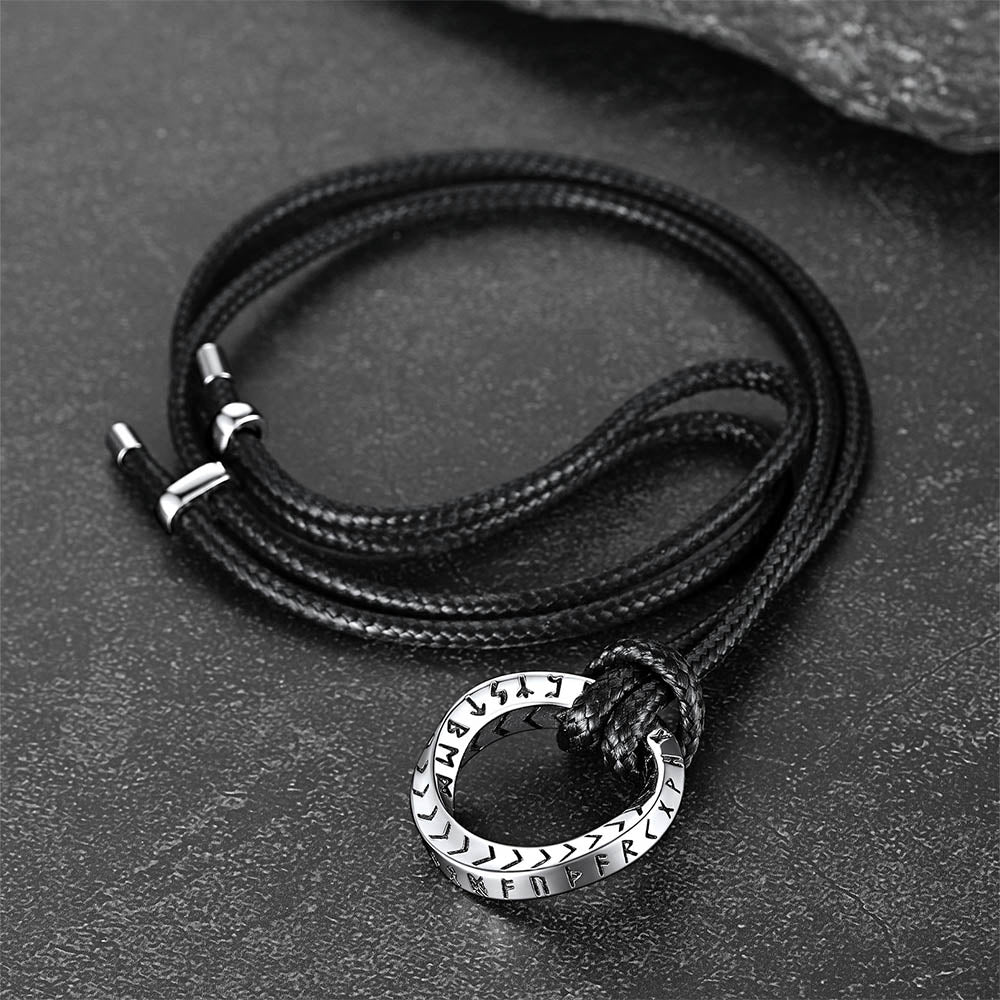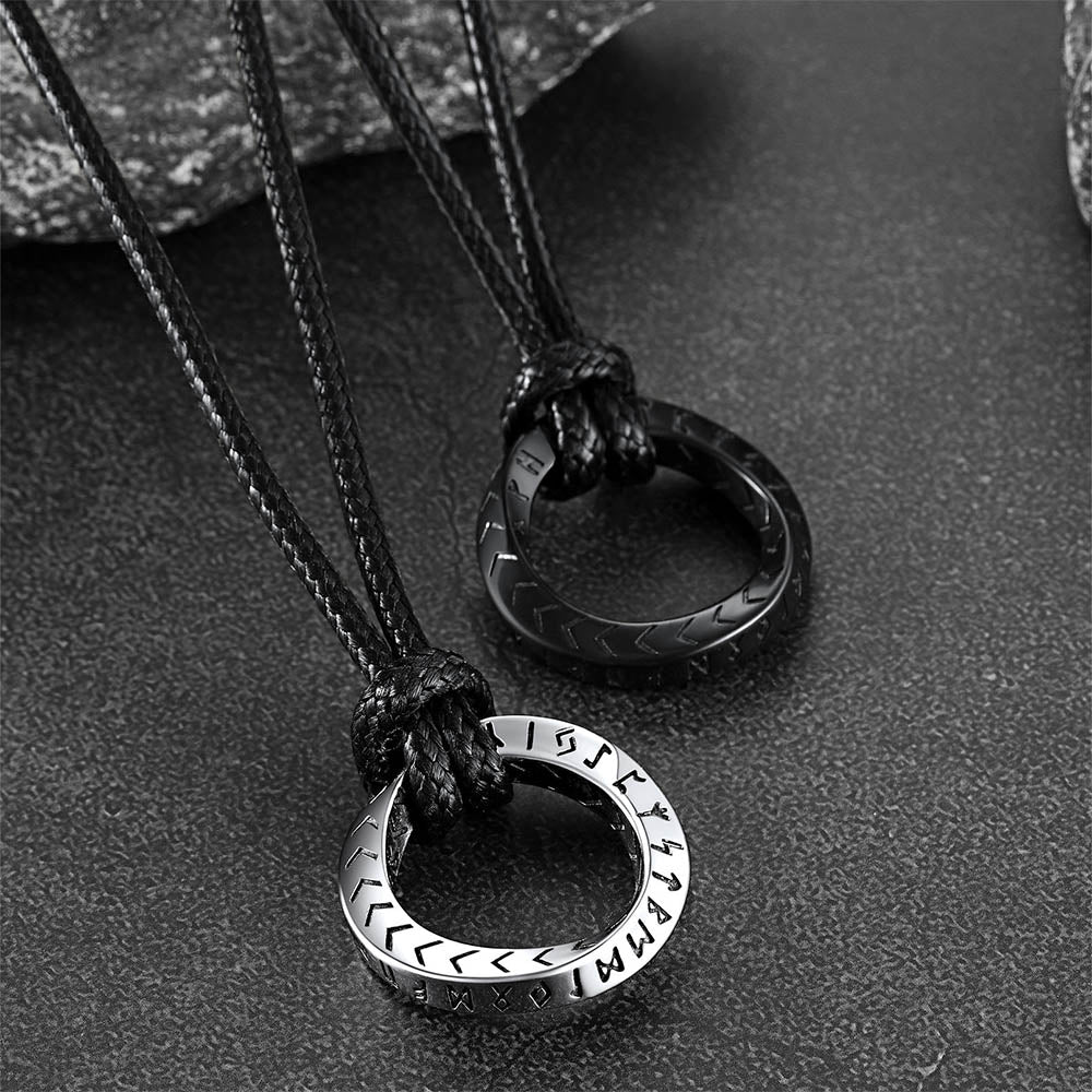 Este colar com a Fita de Möbius é estiloso e personalizado. Talismã de proteção nórdico exclusivo com o círculo rúnico do poder, meticulosamente trabalhado em detalhes. O pingente de runa exibe runas vikings, cada uma simbolizando uma faceta única da vida, força e sabedoria. Usar este colar de runas é como carregar uma tapeçaria de conhecimento e poder nórdicos ancestrais.